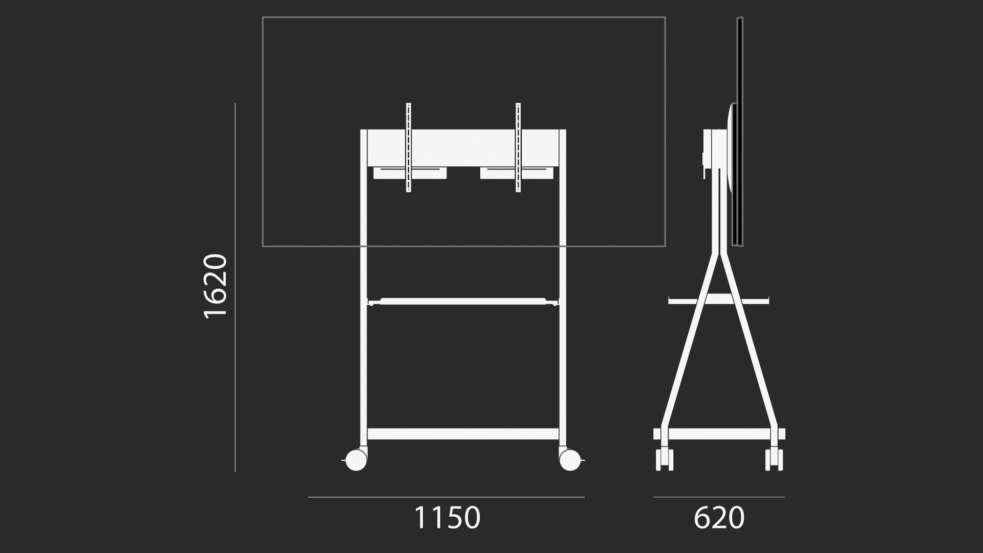 - The high-quality steel construction of the frame and matching screen mount can accommodate screens of up to 85 inches
