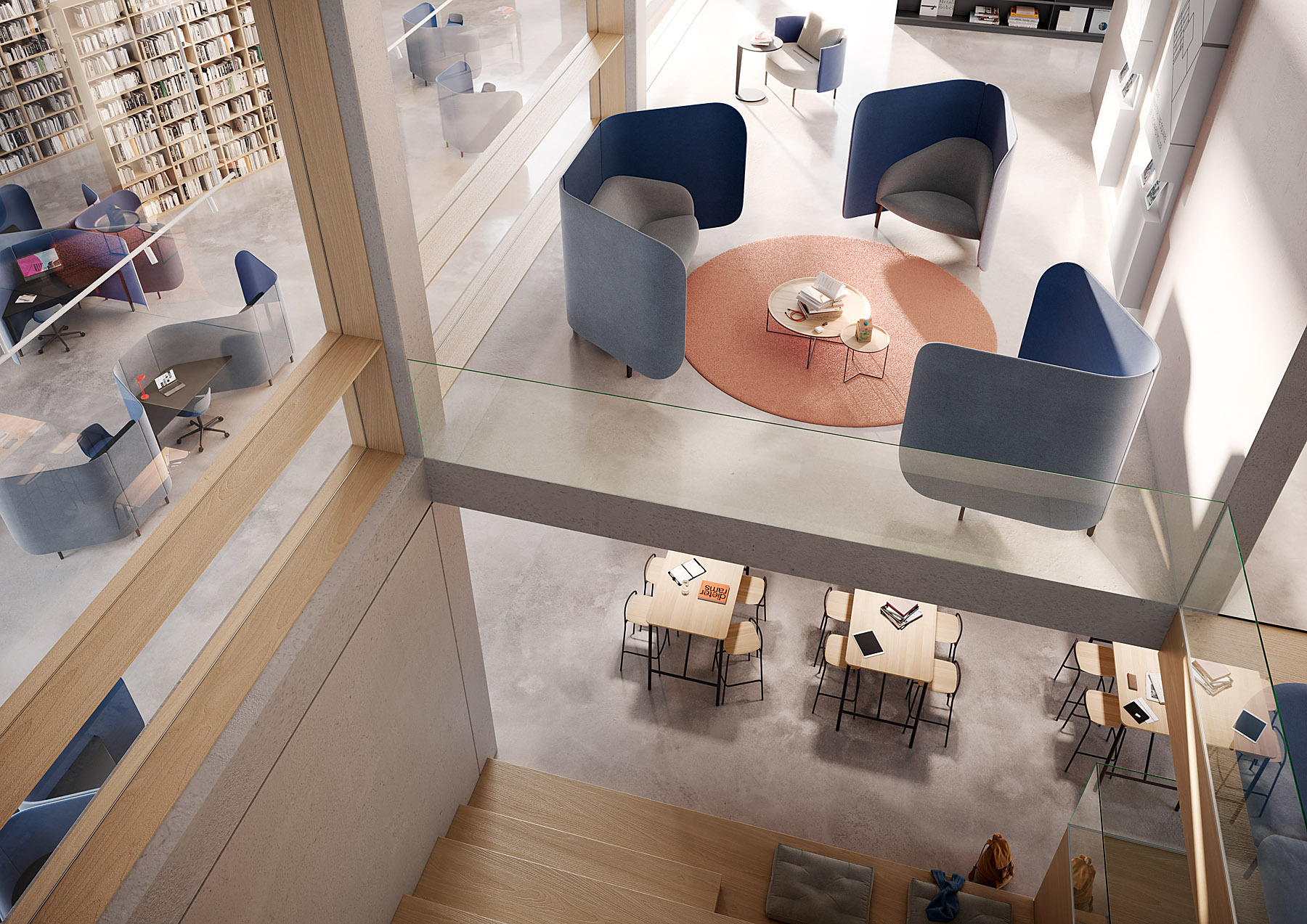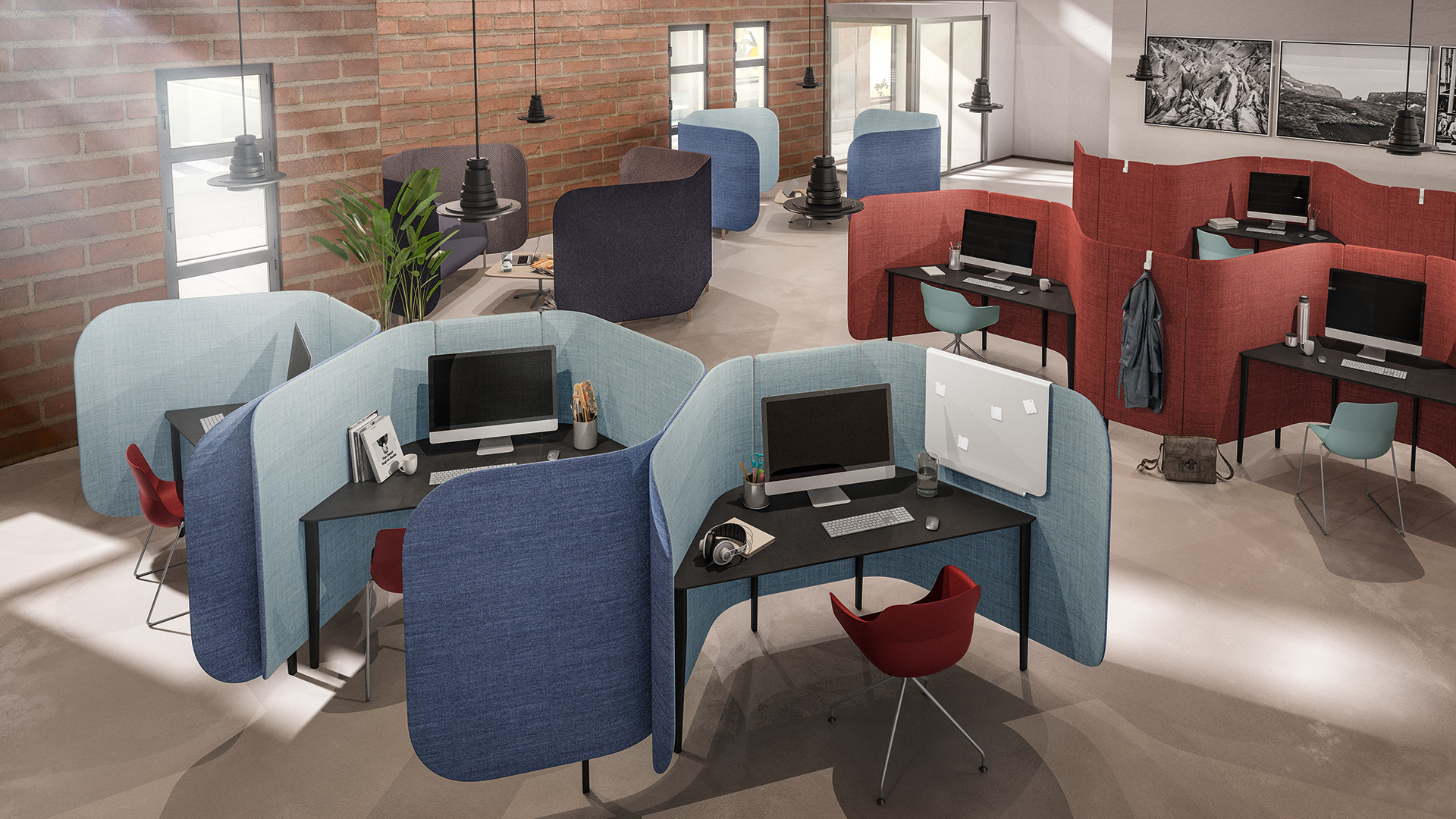 Thanks to its intelligent angled design, the cellular range is just as broad as its spectrum of applications. The cells and sofas can thus be arranged flexibly, creating a suitable working environment for everyone. The design allows for focussed work , co-working or space for relaxation.
