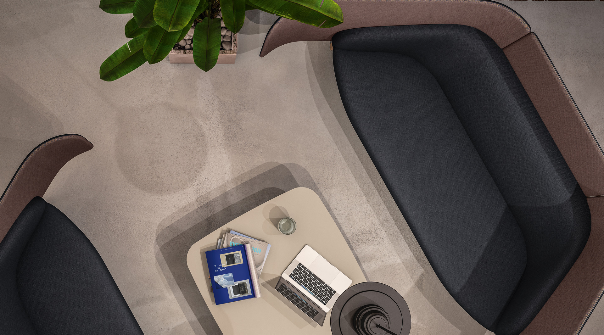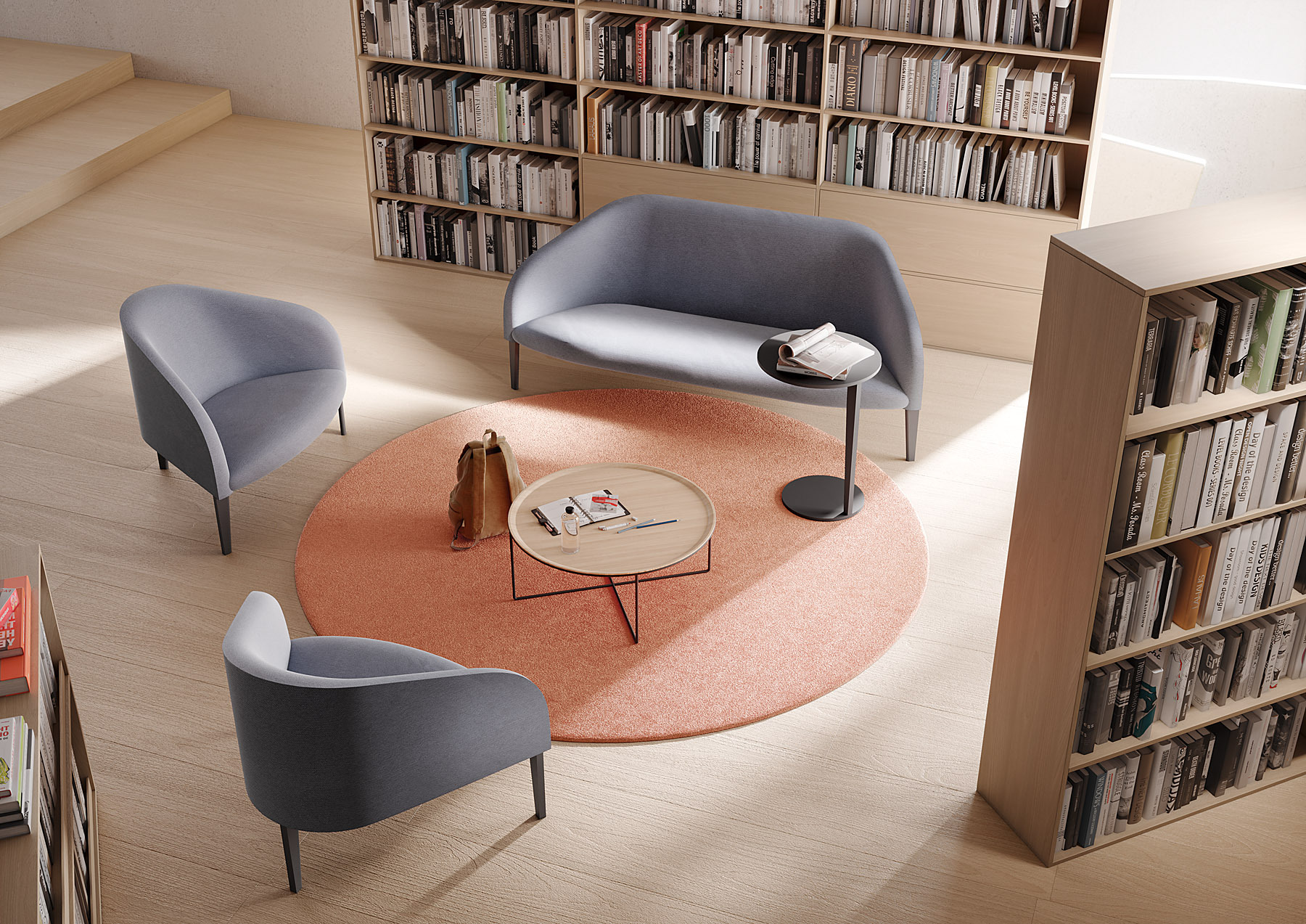 - Sofas create an atmosphere of space in larger scale lounge environments