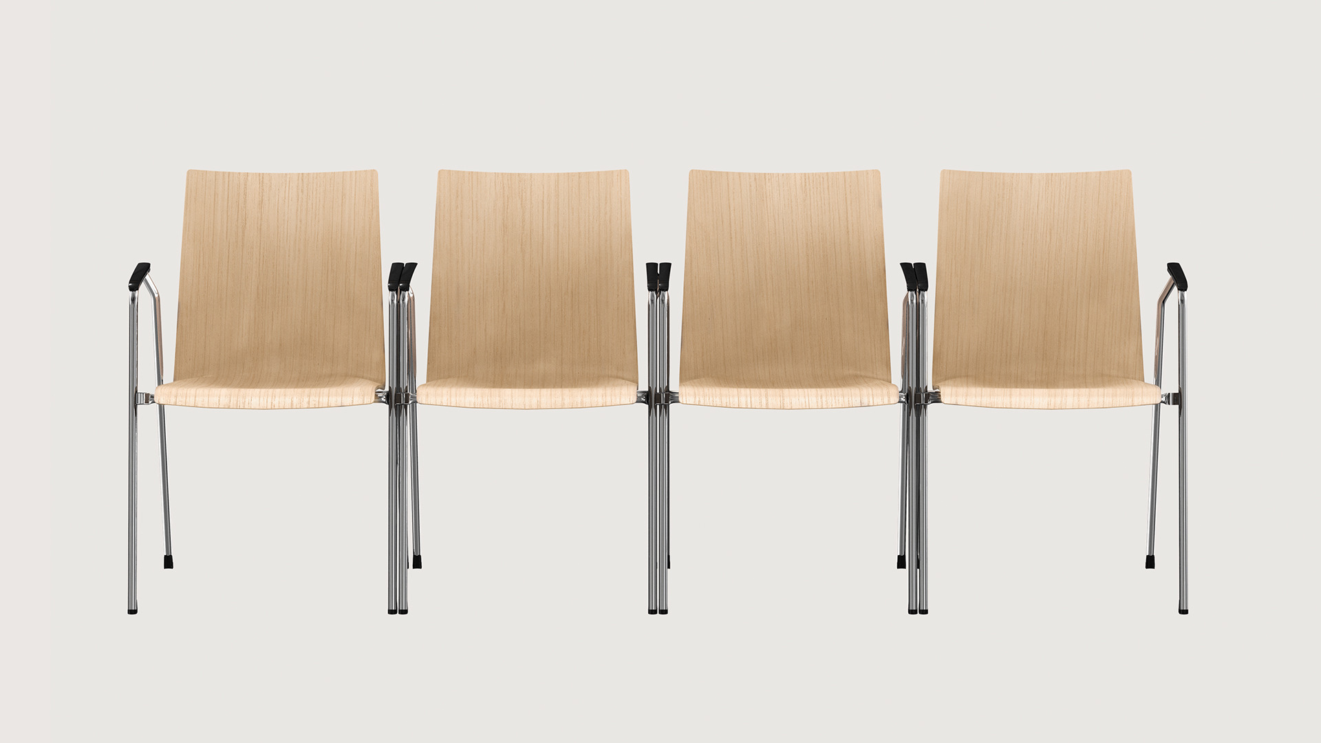 first line | Brunner ❖ This model has armrests, is vertically stackable and available in three upholstery variants. Learn more →