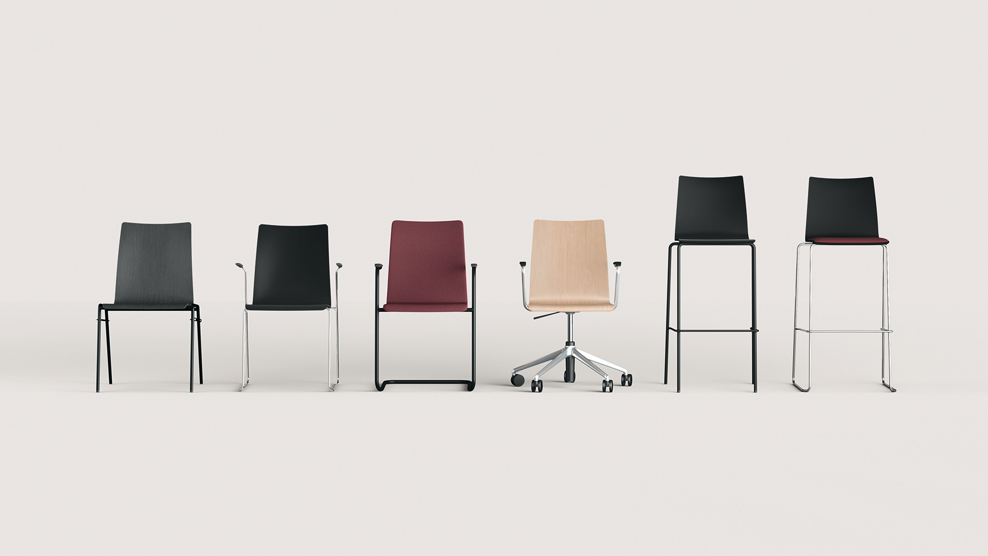 Whether as a stacking chair, cantilever chair, skid chair, swivel chair oder bar stool: As a true transformation artist, it is at home everywhere. Based and developed on the needs of the people who will use it.