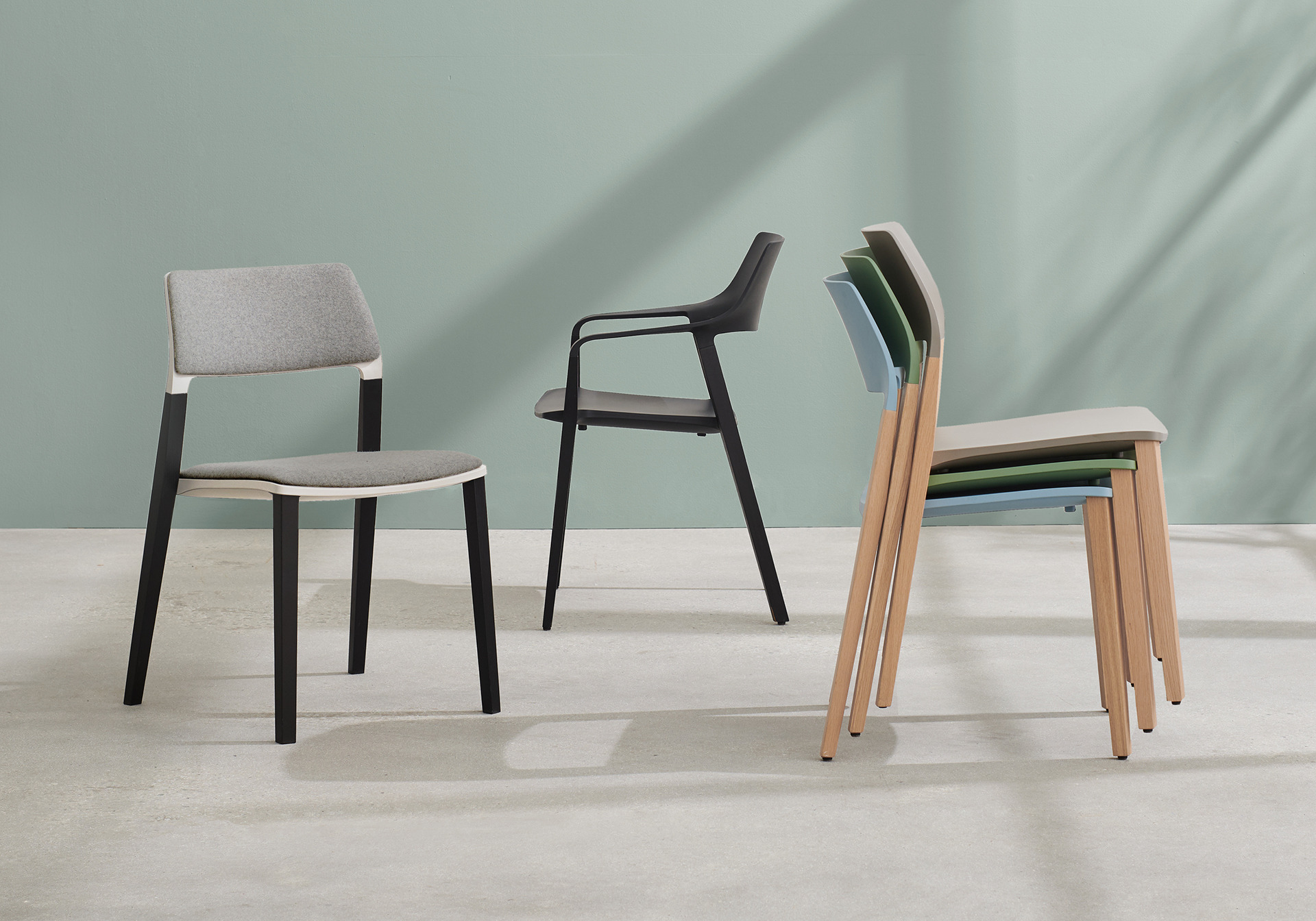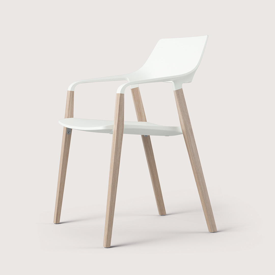 halm | Brunner ❖ This robust and durable chair stands for an extraordinary mix of materials made of solid wood and plastic. Learn more →