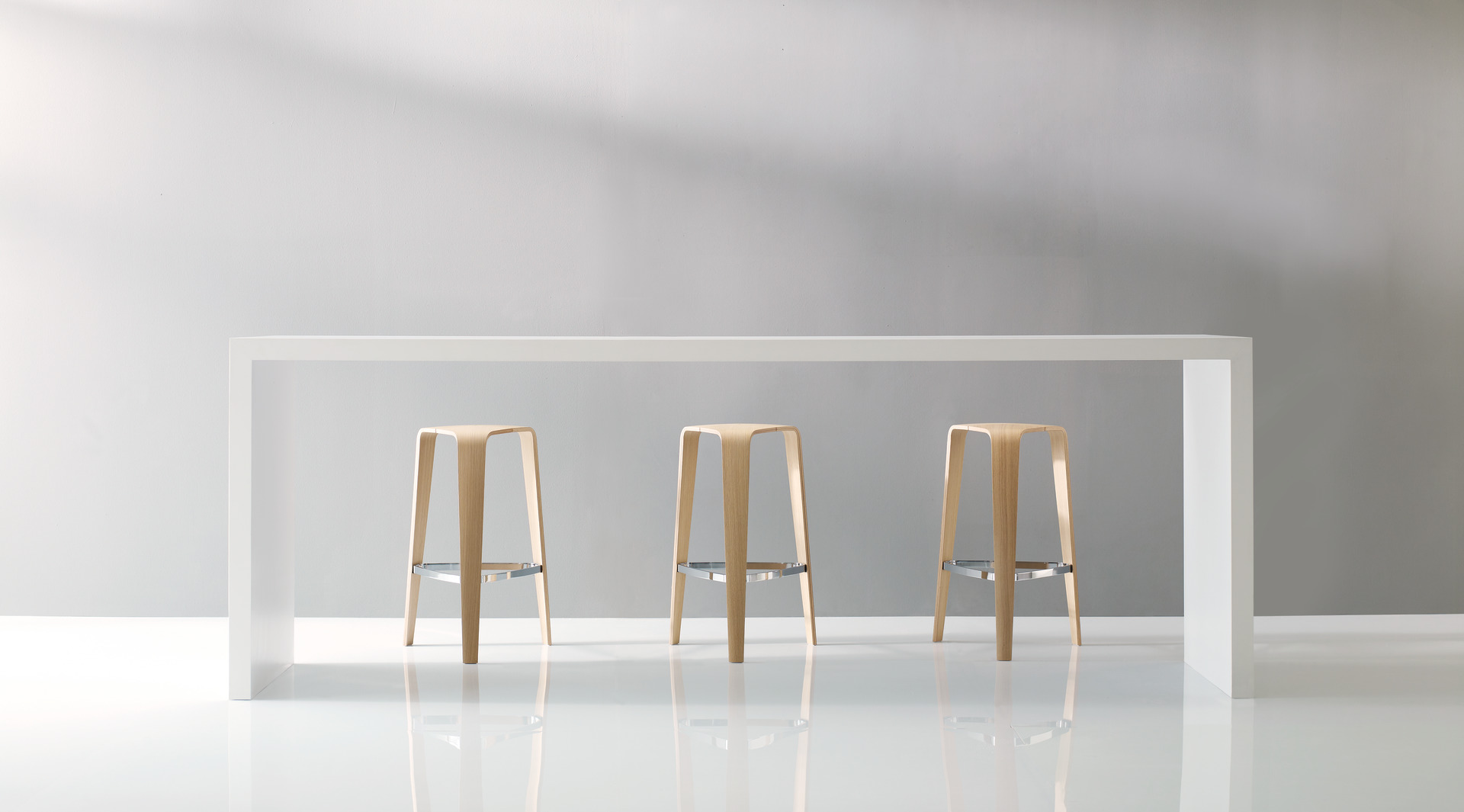 Three identical parts made of shaped wood combine with an elegant sweep to form a seating surface. This is hoc, the modern Interpretation of the archetypal stool. Purity reduced to an absolute minimum. Rather a sculpture than a piece of seating furniture. Its form, open to all sides, allows for flexible seating that strengthens one’s back and encourages relaxed communication. With its high-quality manufacture and finish, hoc fits into every modern ambience.
