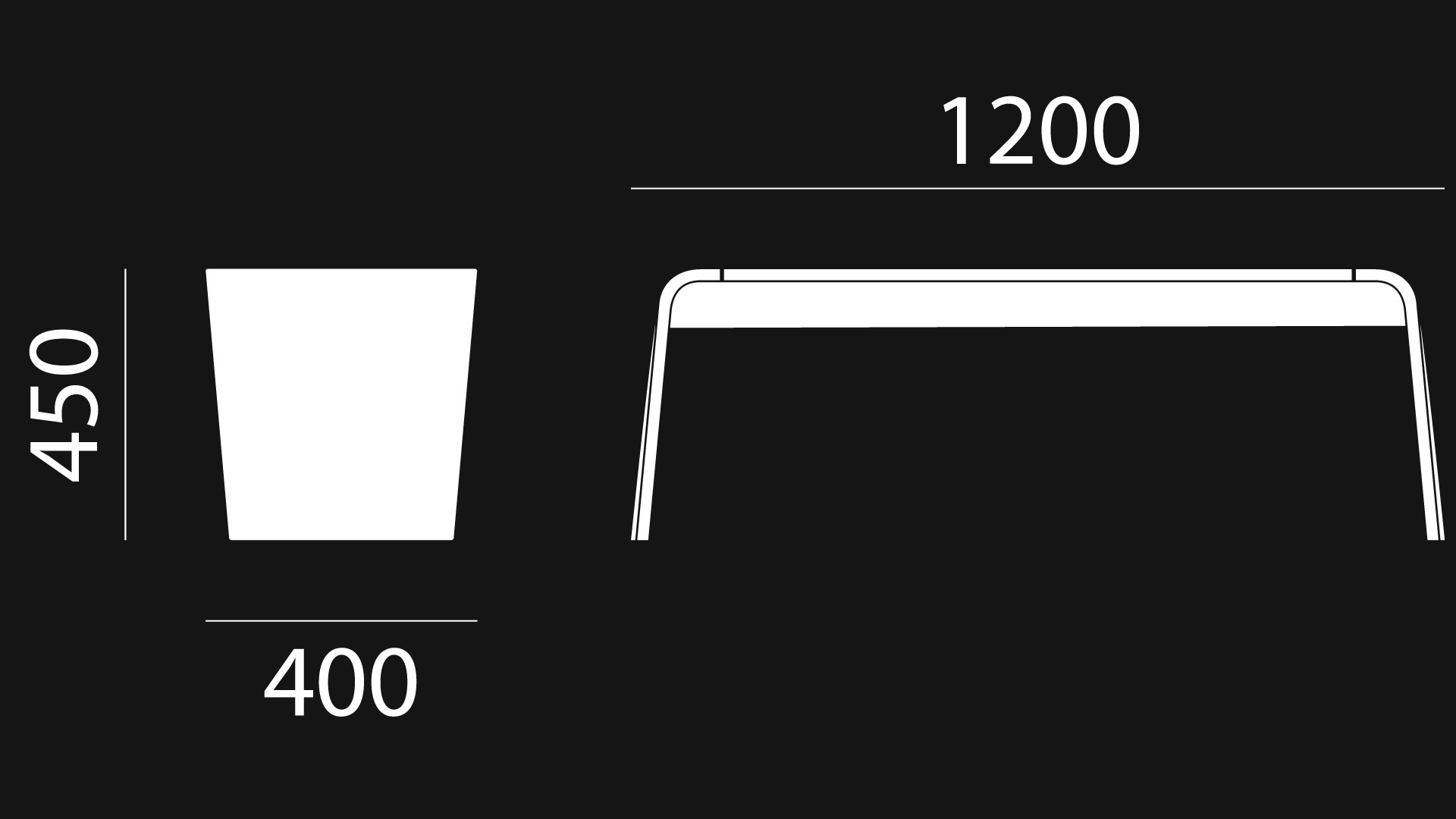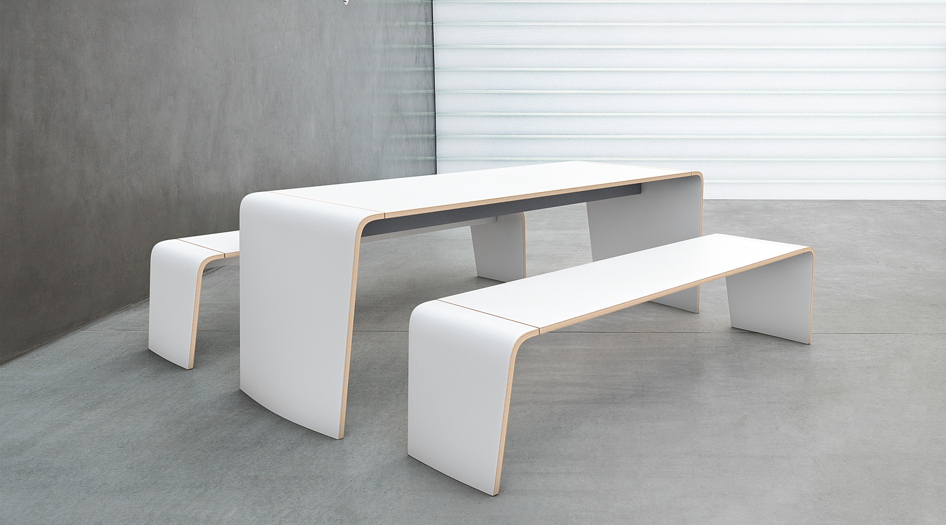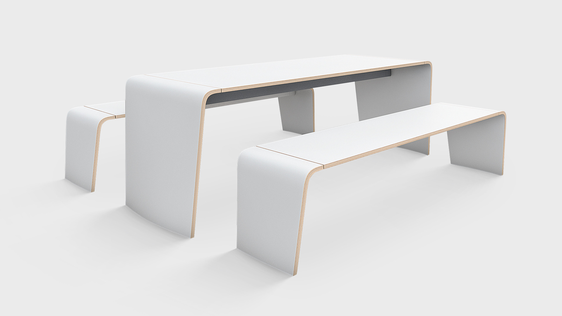 Two-seater / side panel and seating surface in HPL white, not upholstered