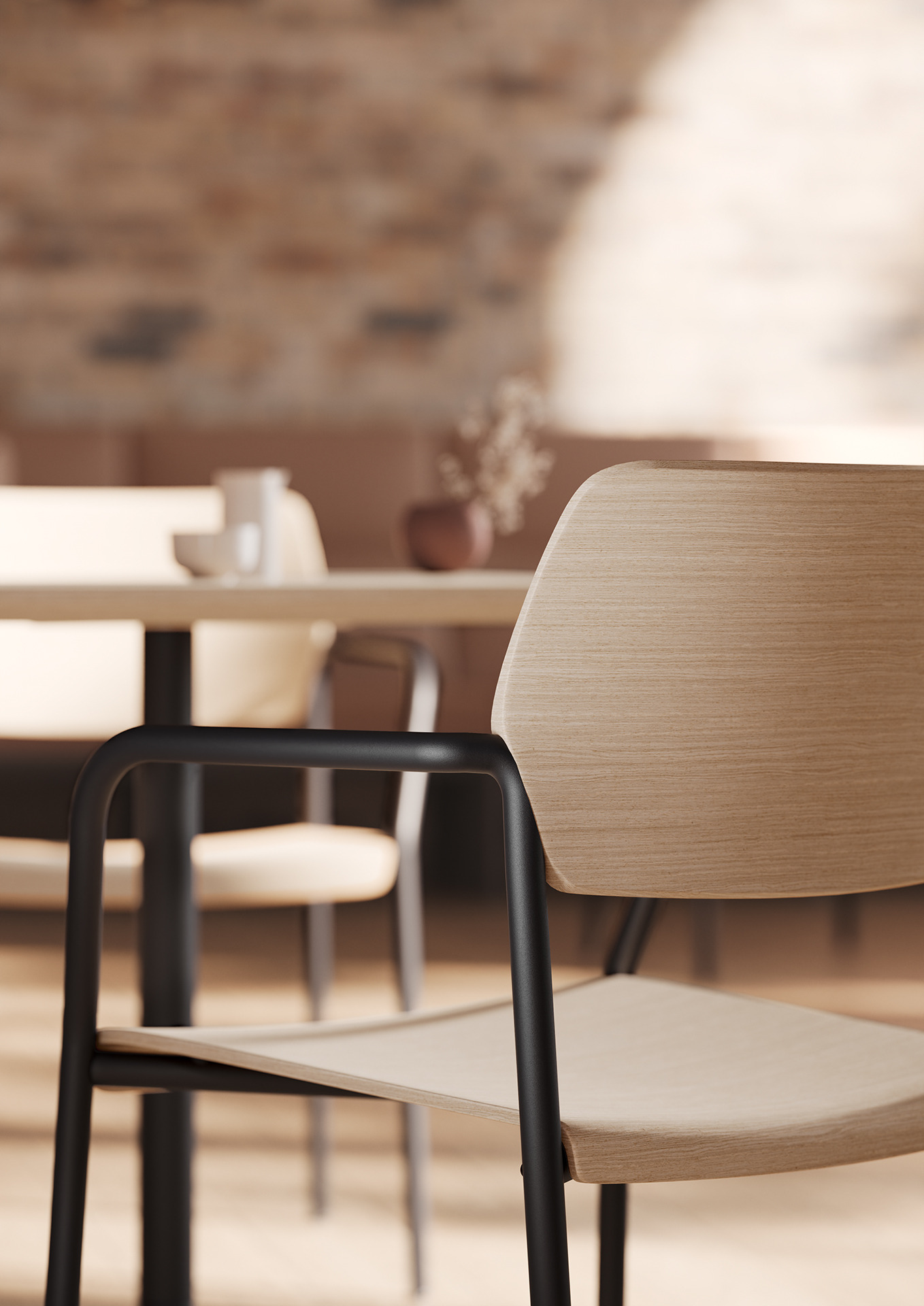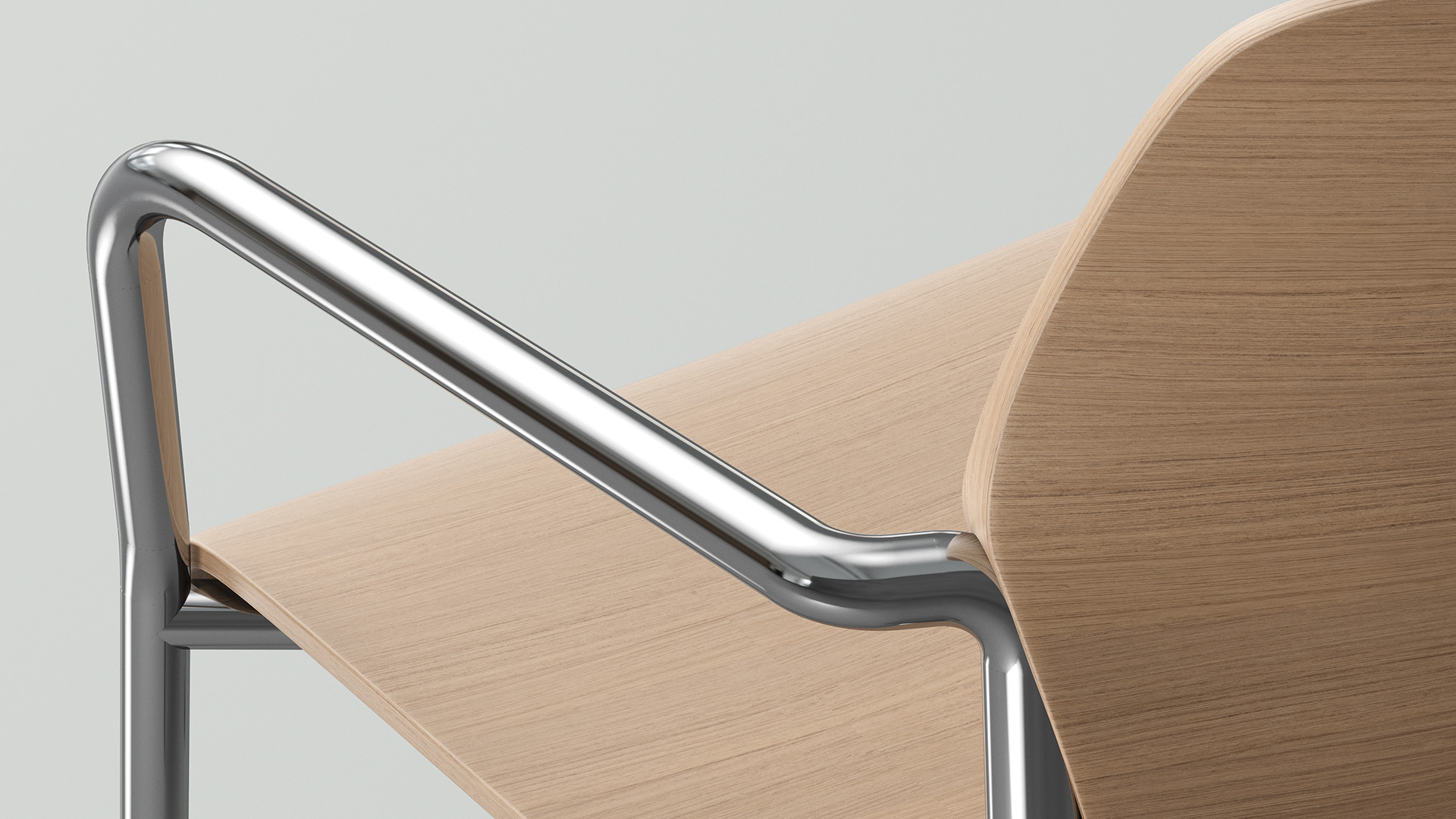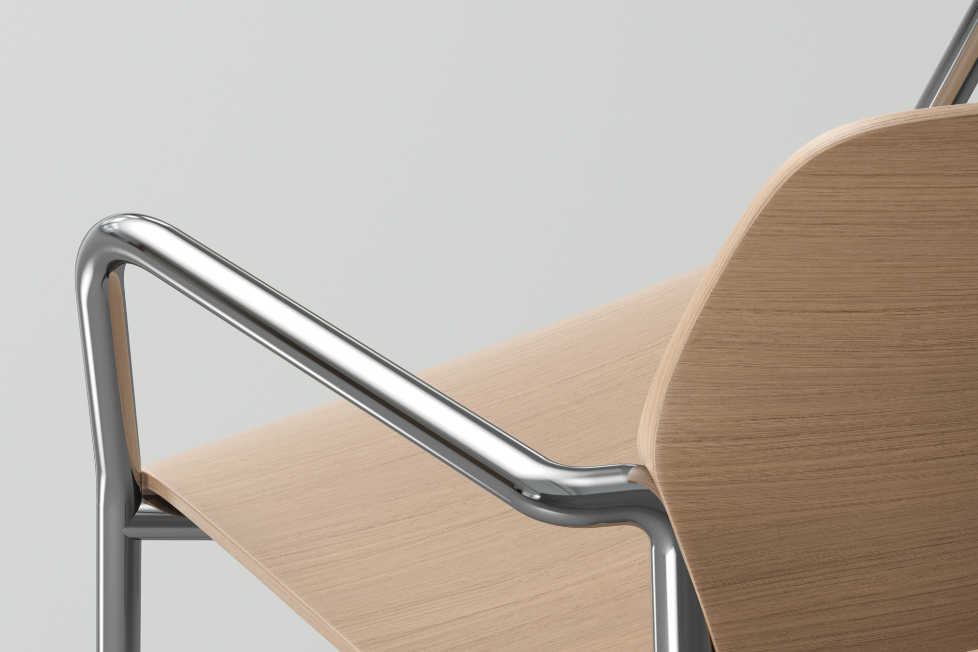 - The quintessential steel tube chair with invisible seamless back connection of seat and back in wood