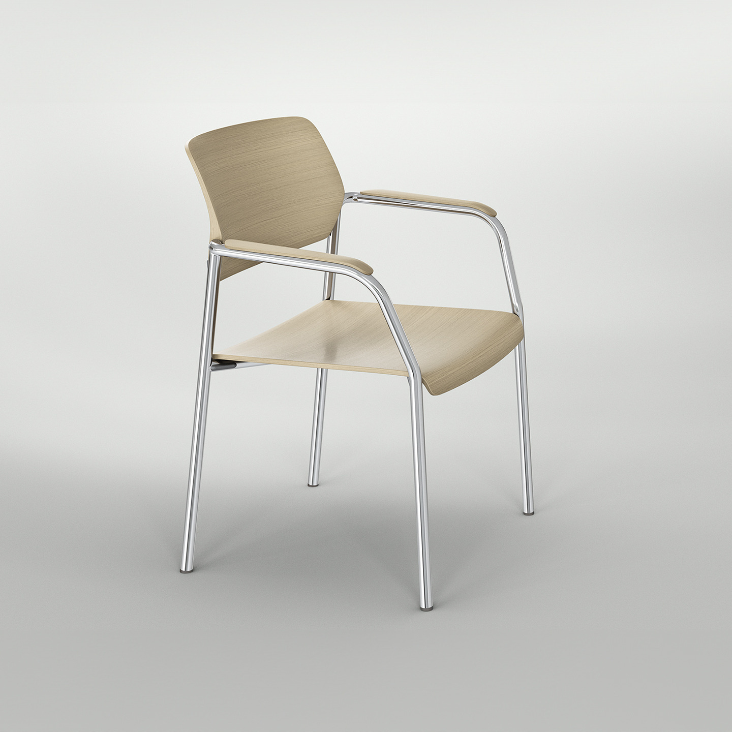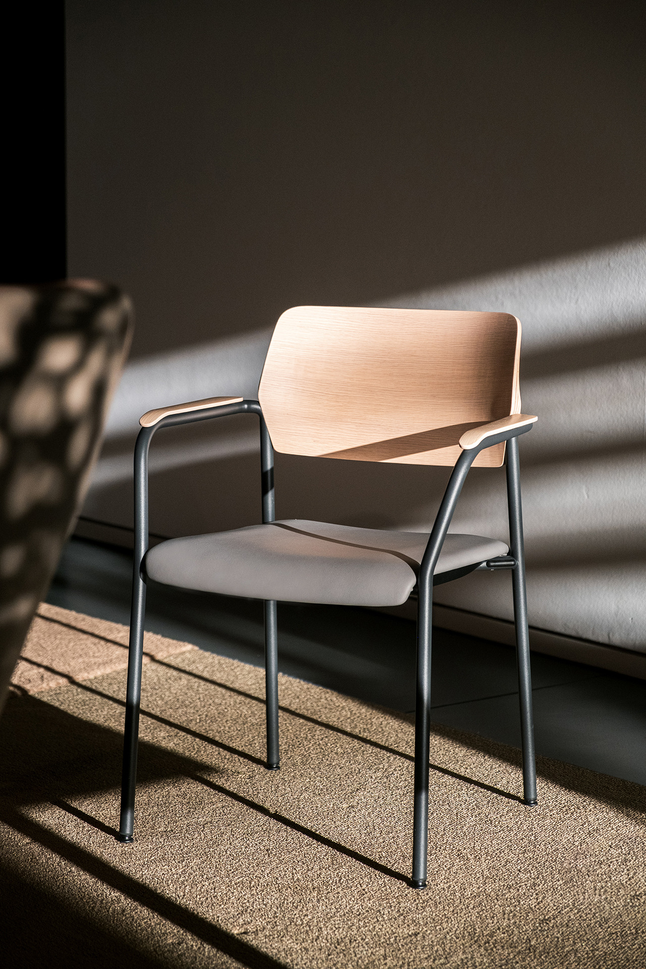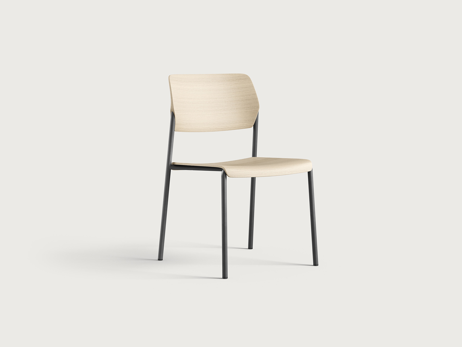 - The quintessential steel tube chair with invisible seamless back connection of seat and back in wood