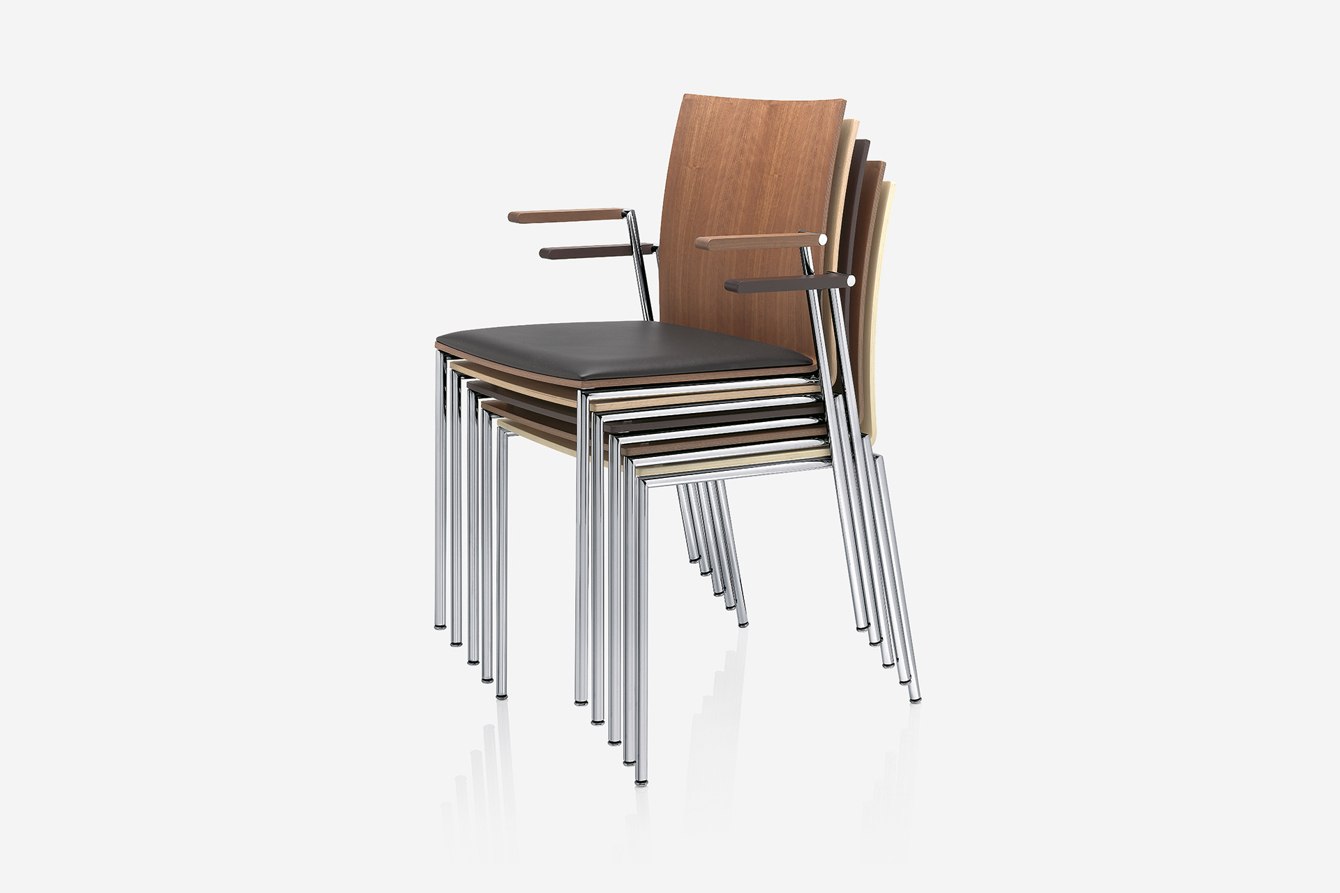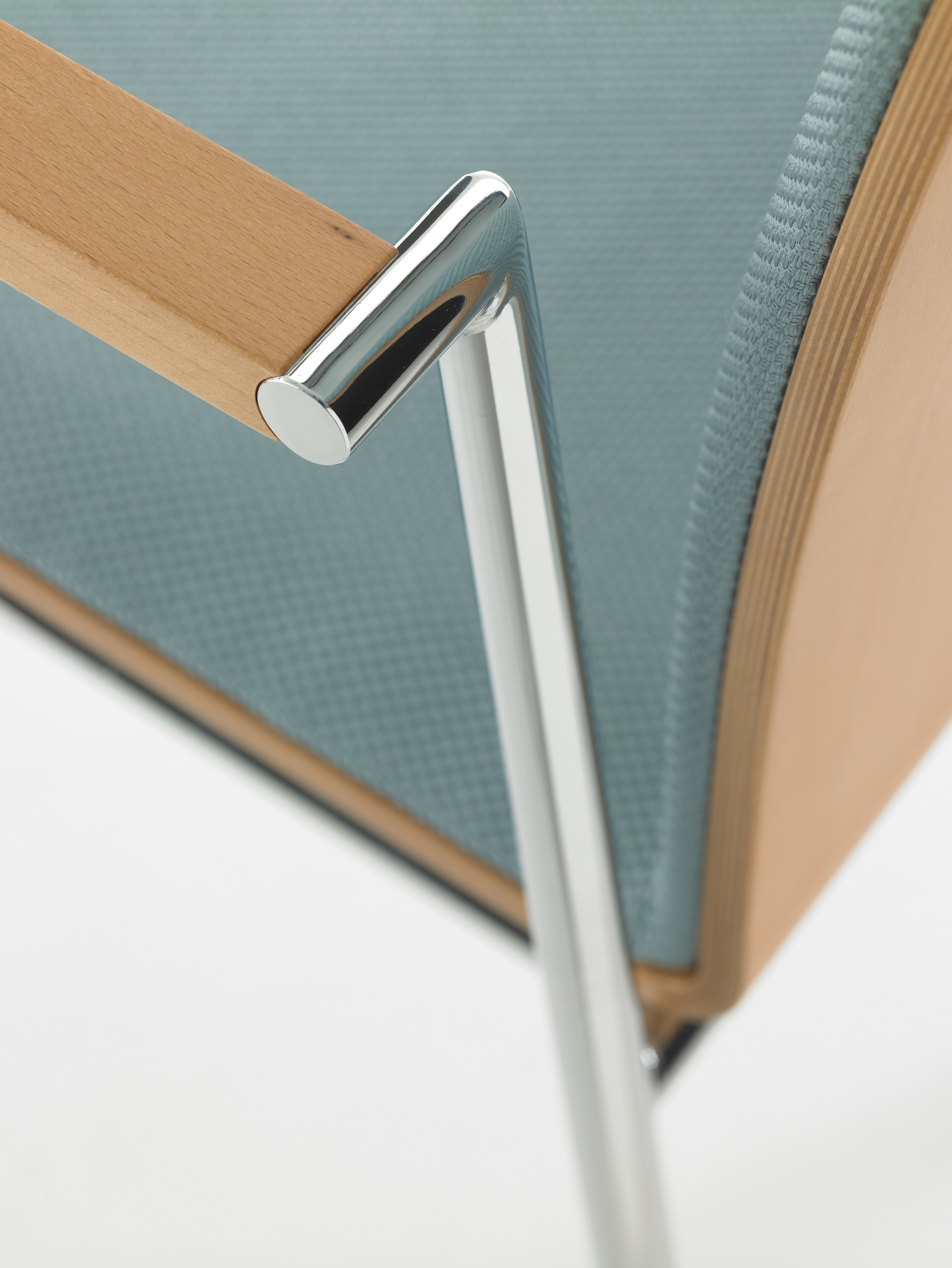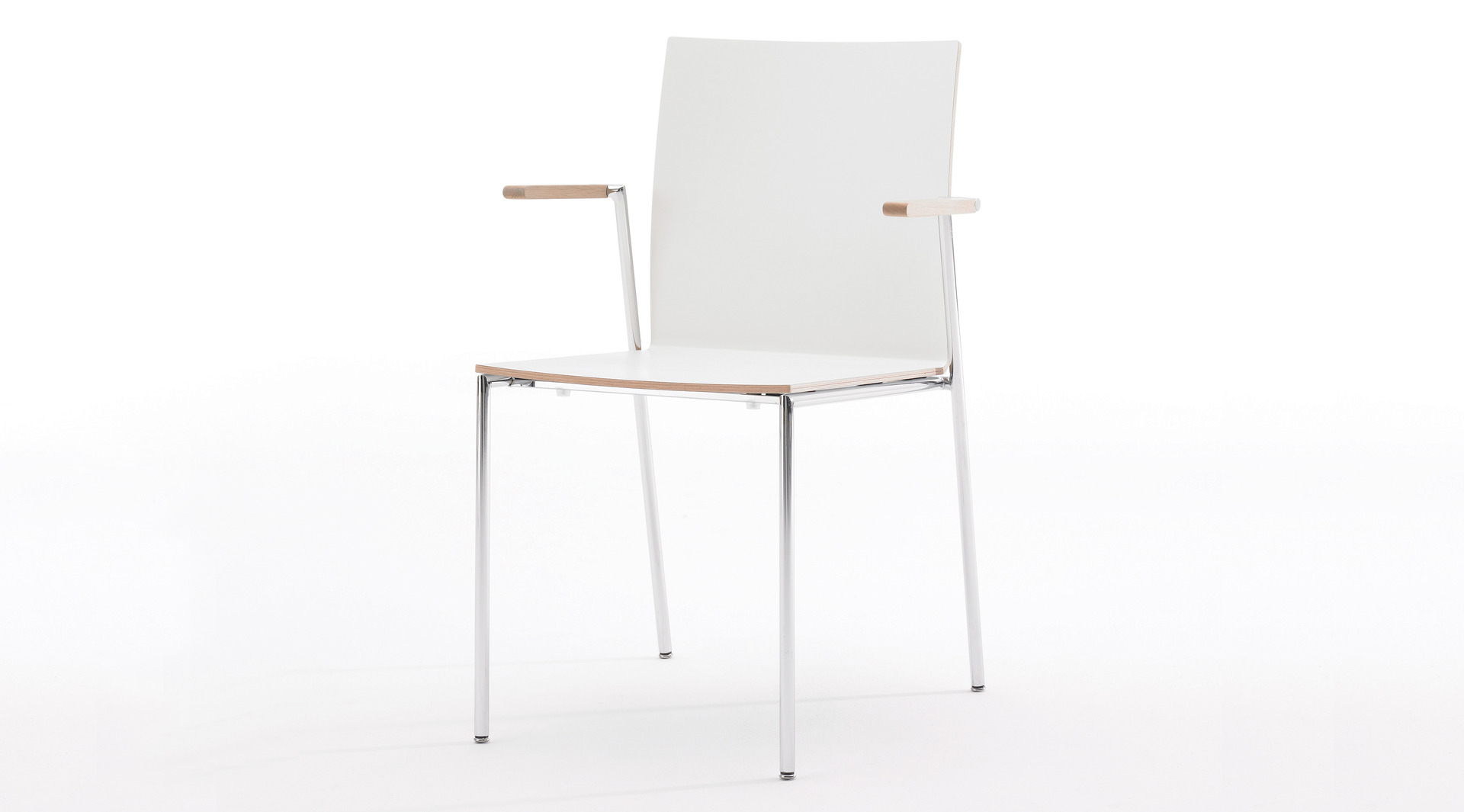 Its typical design features: the unusually small radius of the seat shell and its straight lines. Its design blends into any functional architecture and its wooden surfaces add ambience and warmth to a room. Patented: a specially developed, innovative technology is used to mould the wood veneers to such an extreme degree.