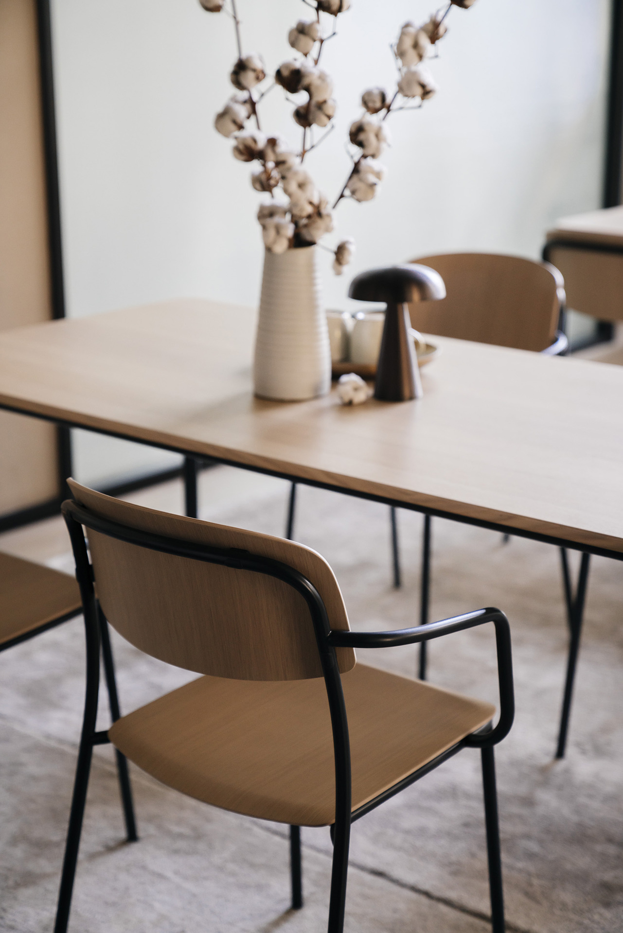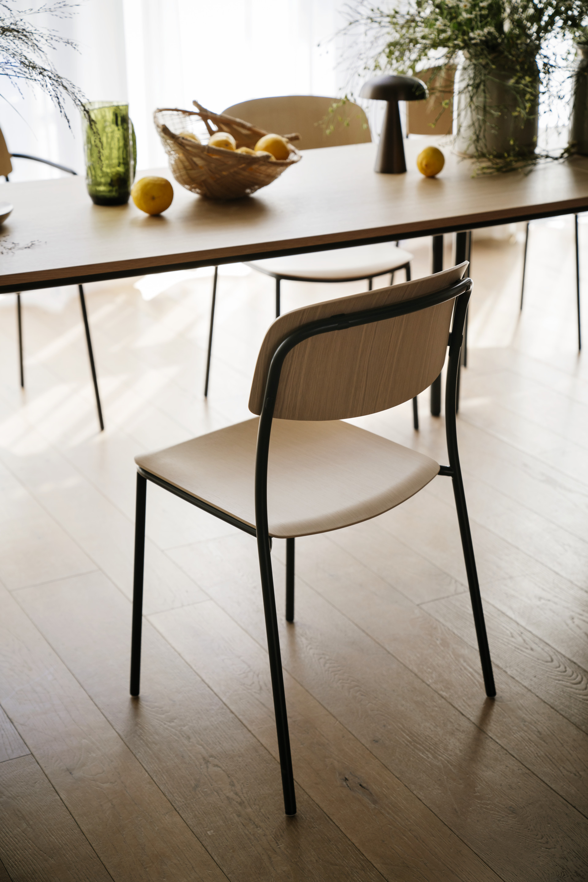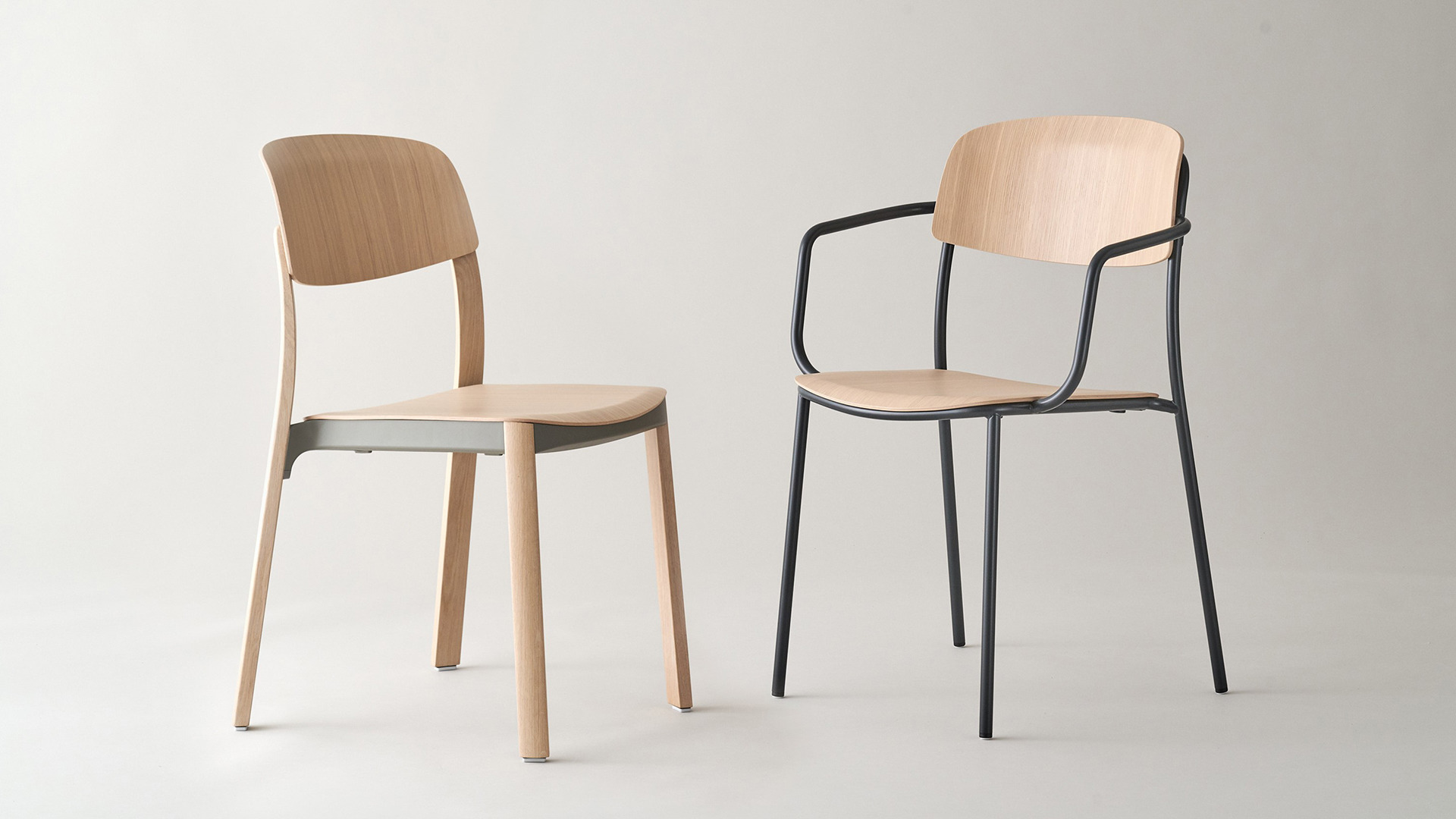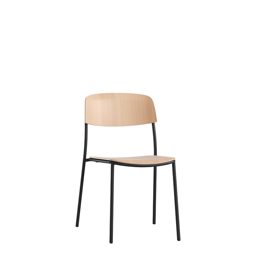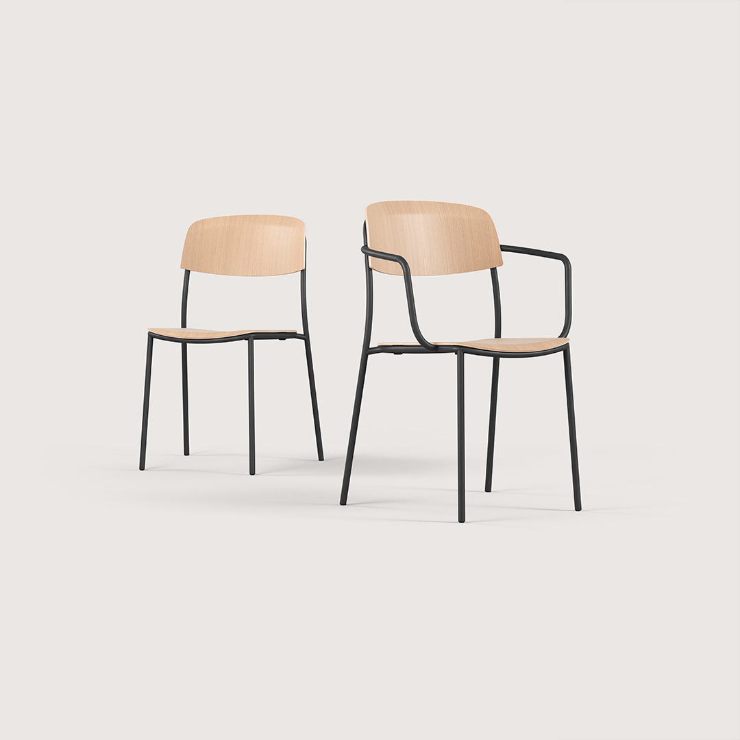 s = steel + the finest elegance. A formula that simply works: nate s reinterprets the wooden models in its contract furniture range. Instead of solid wood and recycled plastic, the supporting structure is made from sturdy round steel tube with a robust and durable powder coating. It retains the all-important, ultra-thin wooden surface, the organic and ergonomic contours, and its ability to blend in with any architecture.
