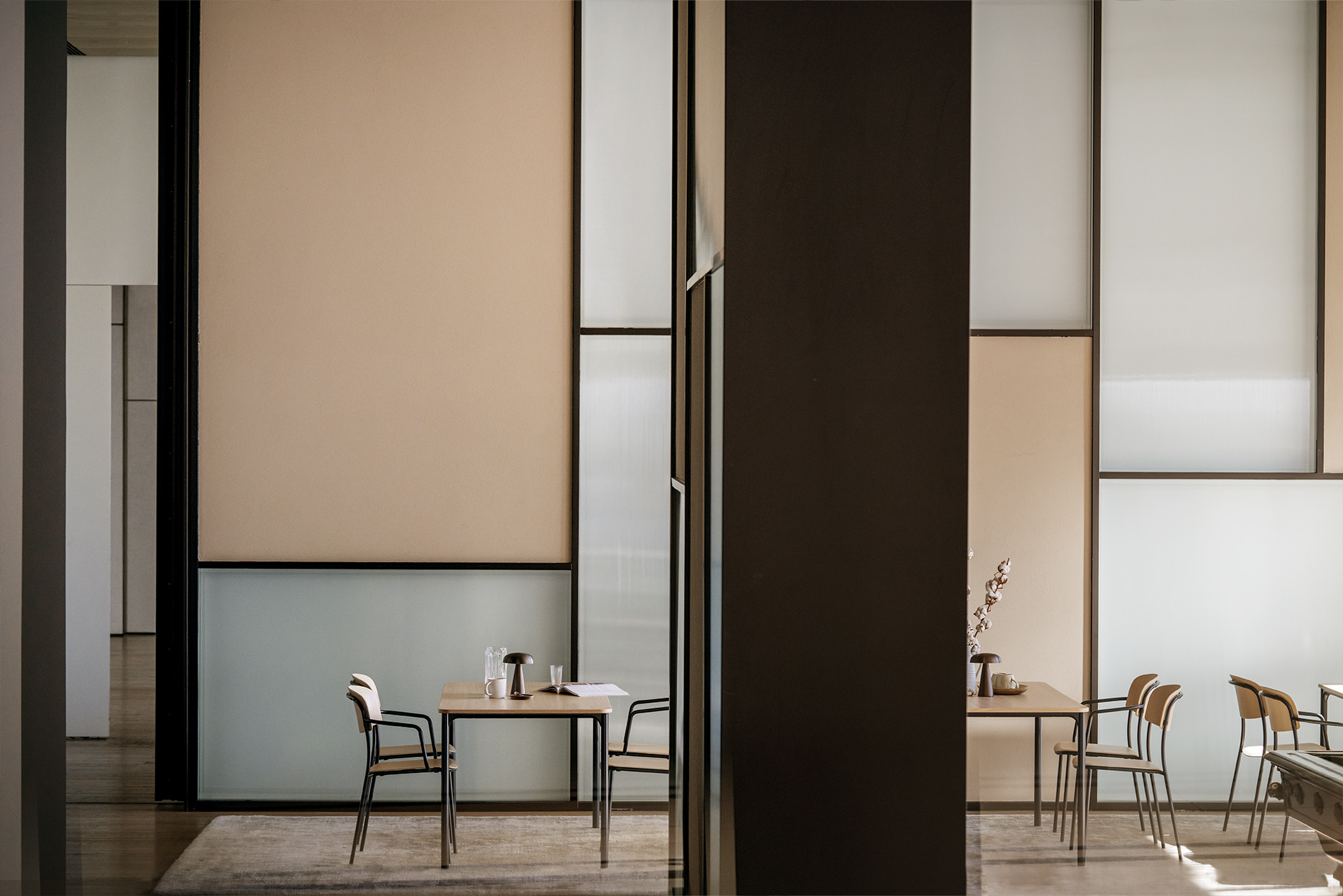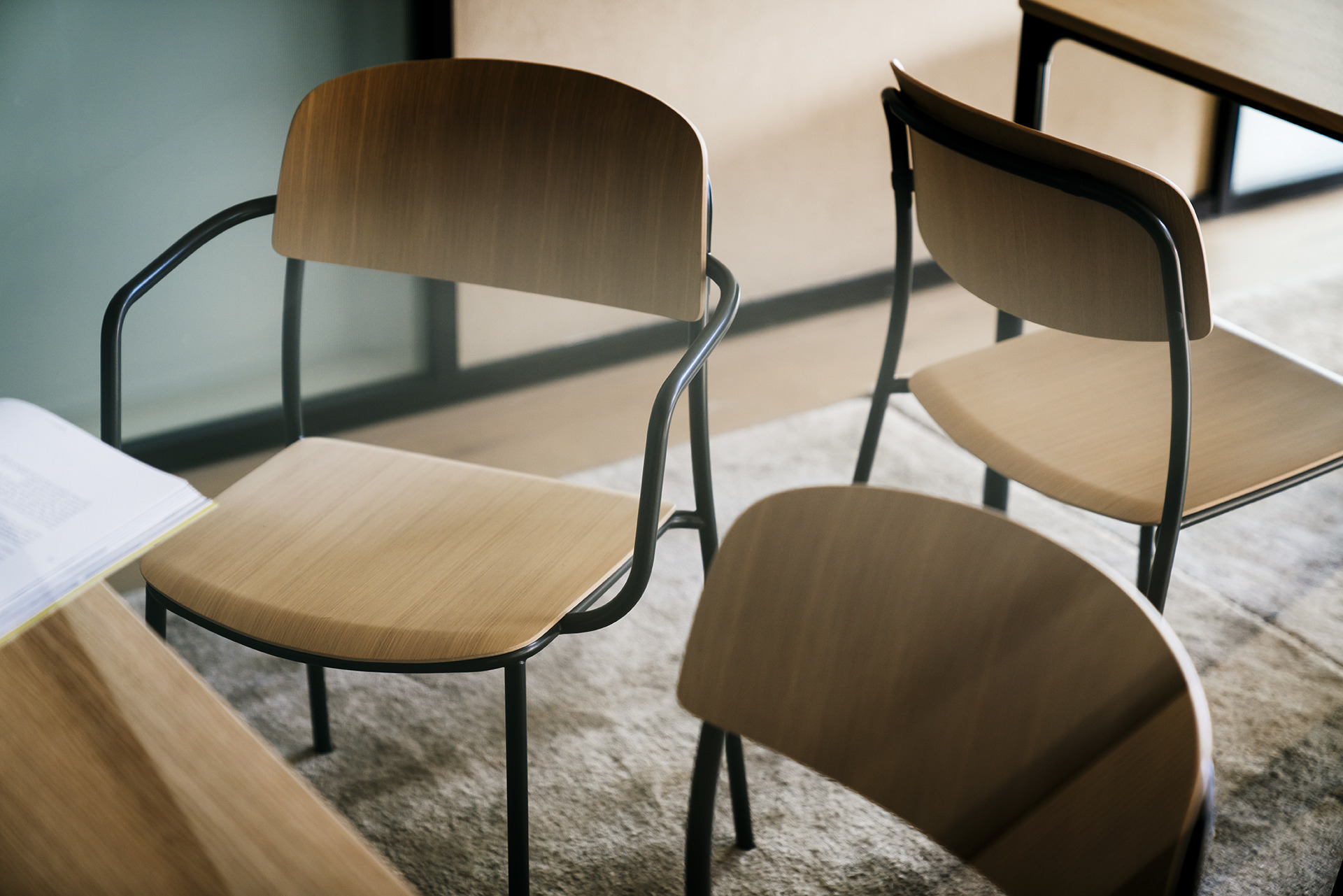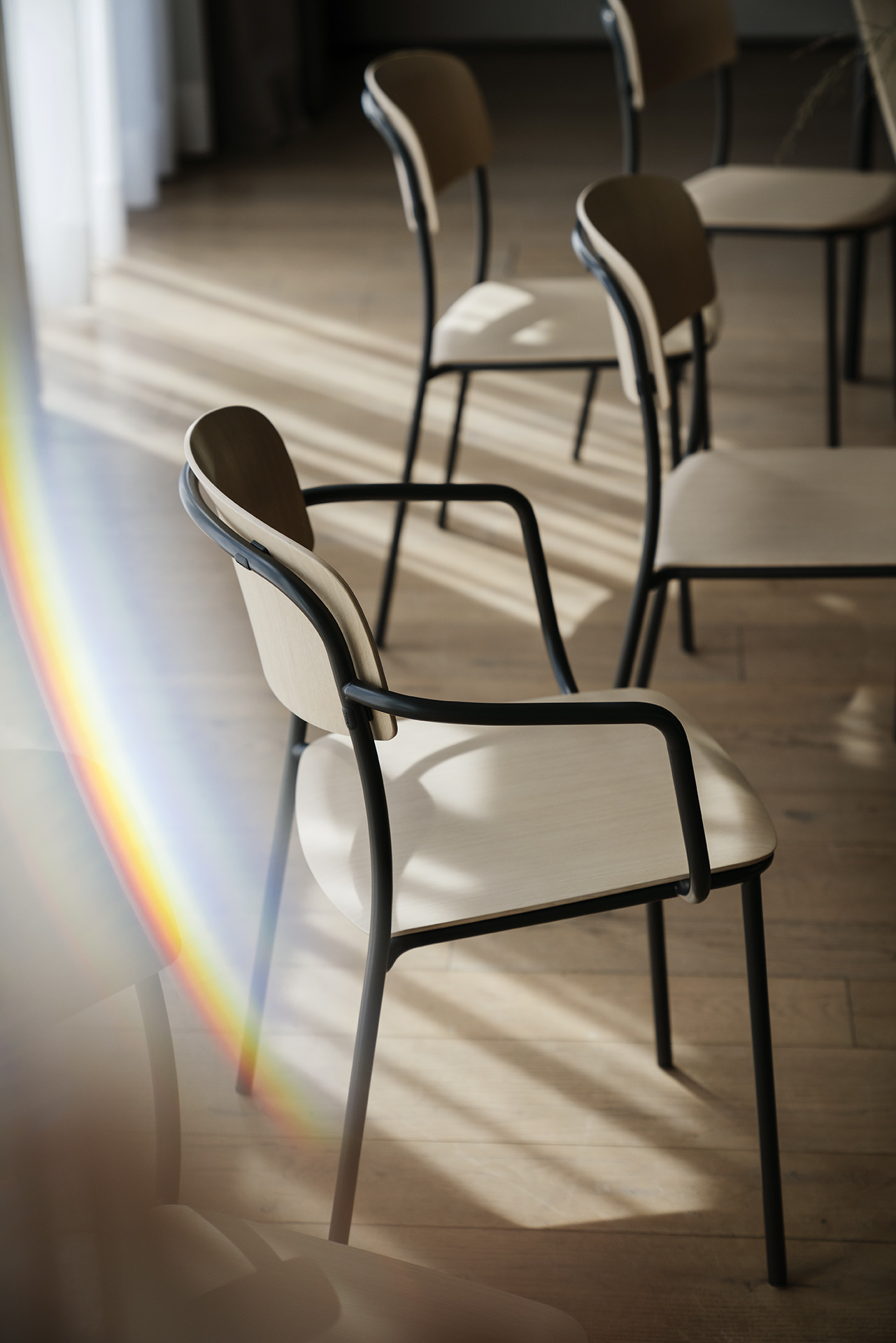 nate s, Nate s, Brunner, Brunner furniture, Atelier Steffen Kehrle, seating, chair, stackable, stacking chair, wooden chair, waiting, cafeteria, restaurant, precious metal, sustainable resources, eco-friendly powder coating, nature, technology