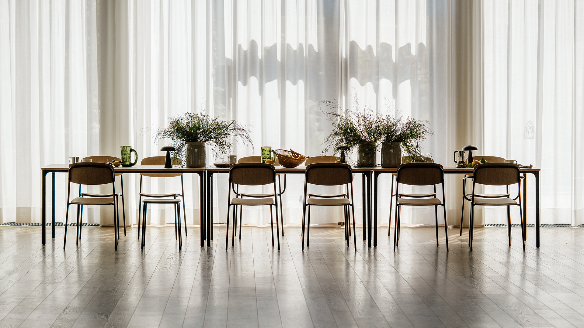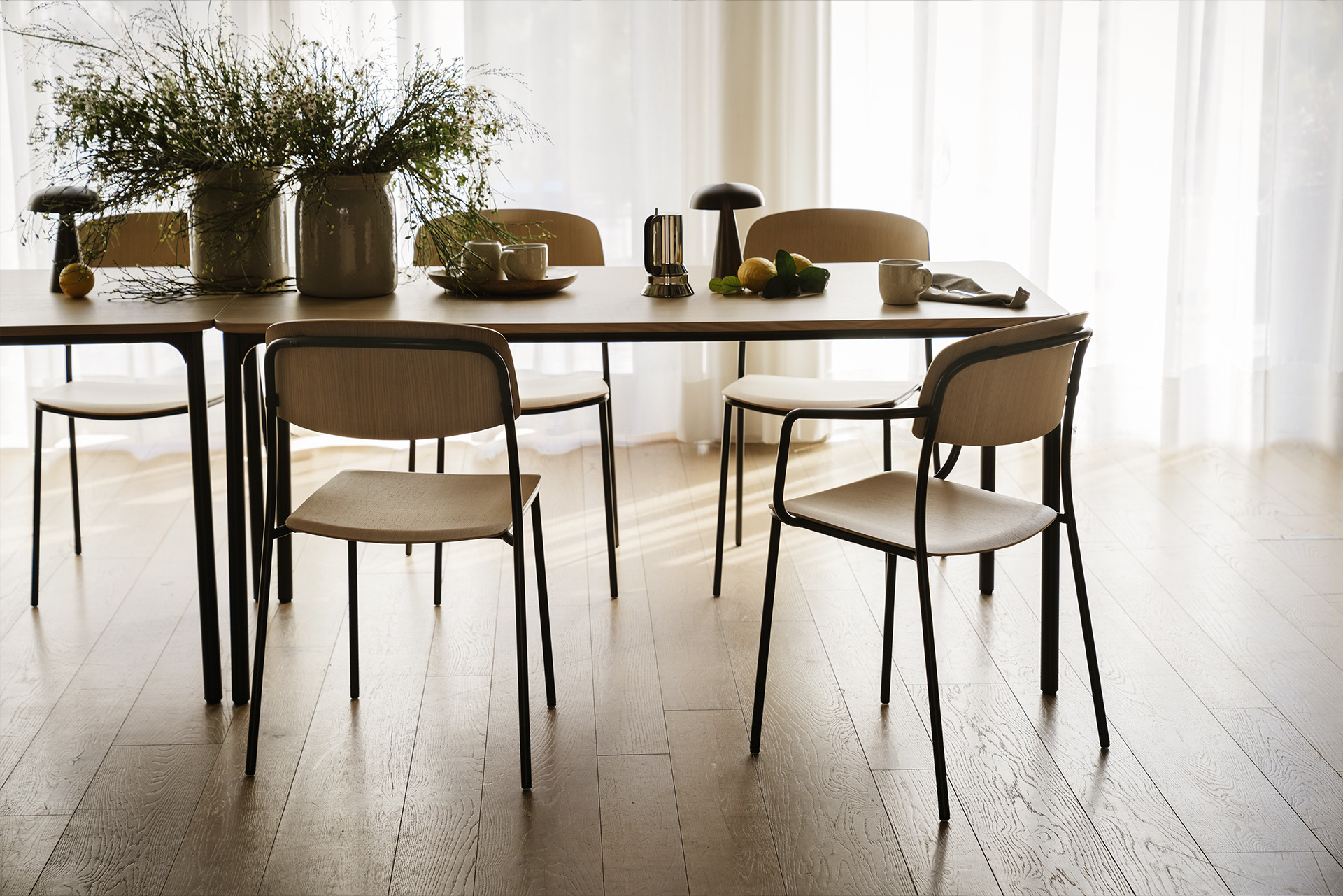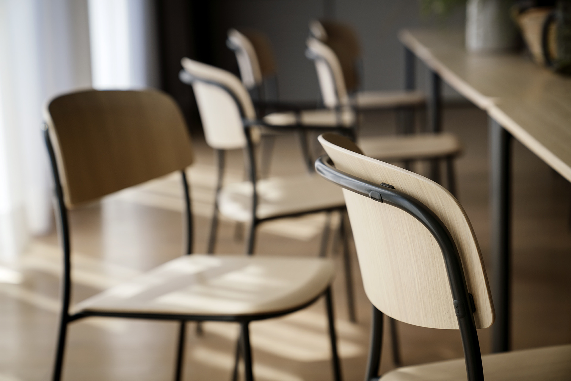 For nate, it all started with a light, stackable, hygienic and fully recyclable wooden chair 2.0. There was a great deal more potential to uncover in its pioneering combination of materials consisting of ultra-thin shaped wood, sturdy solid wood and a frame made from 100% recycled plastic. Stools, benches and tables then followed. A comprehensive range of products was born.