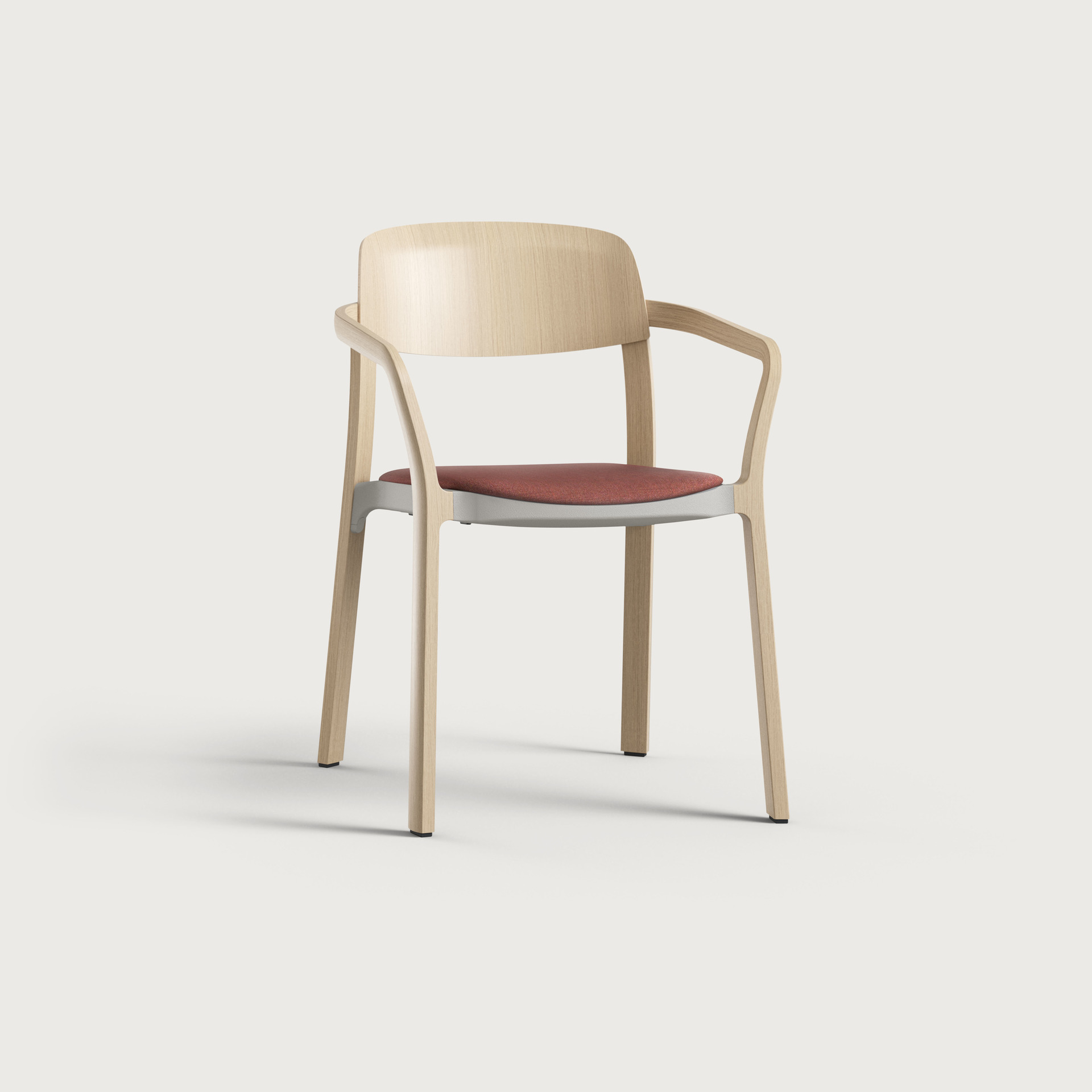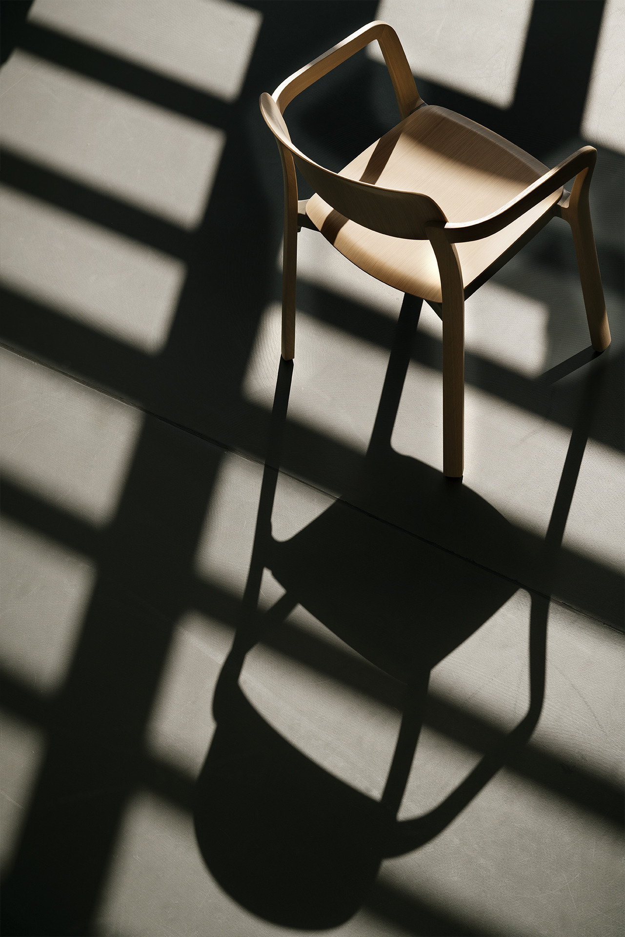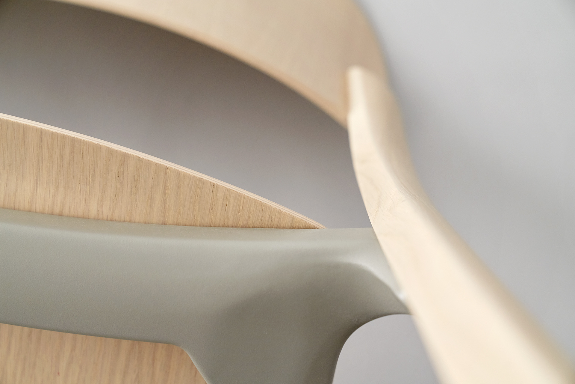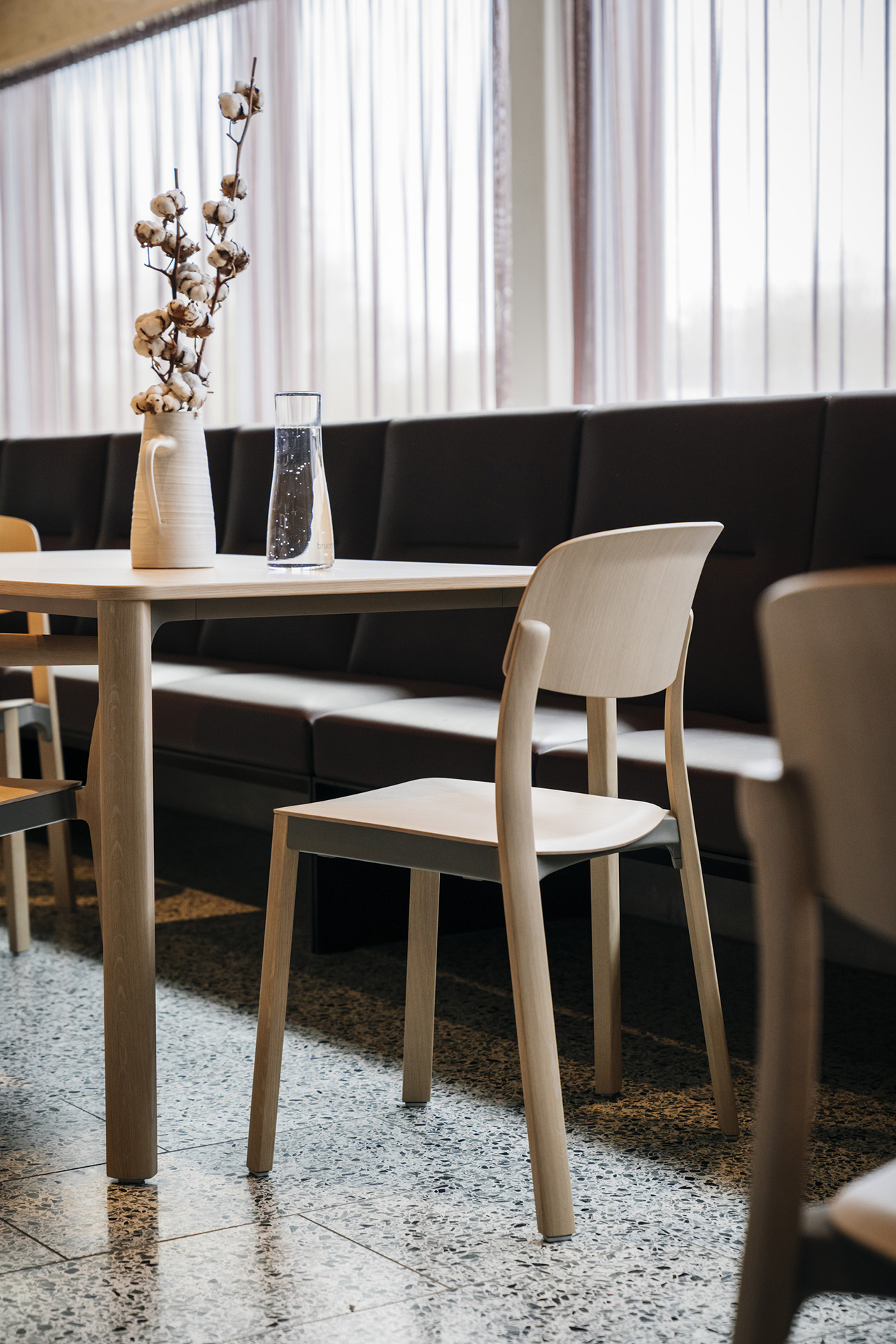 nate, Nate, Brunner, Brunner furniture, Atelier Steffen Kehrle, seating, chair, stackable, stacking chair, waiting, cafeteria, restaurant, wooden furniture, sustainability, plywood technology, recycled plastic, sustainable resources, nature, technology