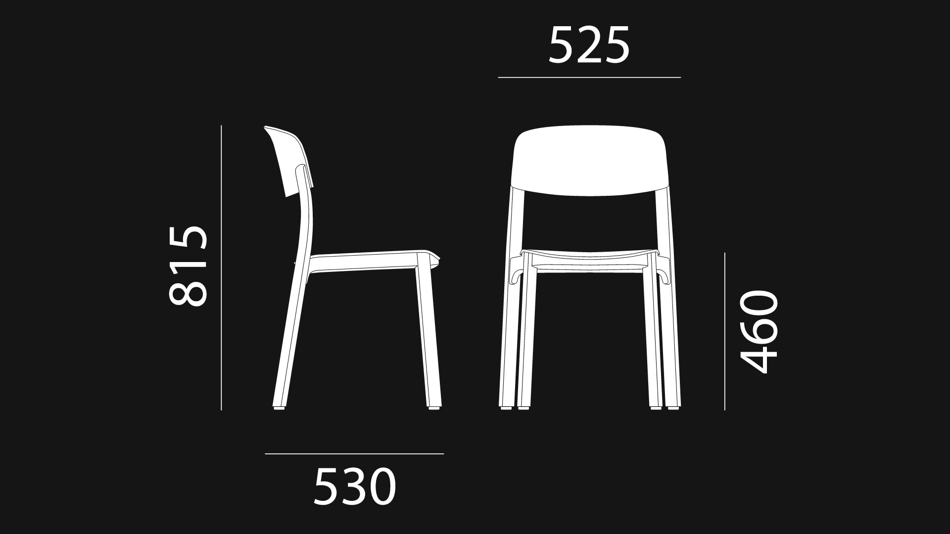 Seat and back made of beech plywood / Frame in plastic / Solid beech wood frame