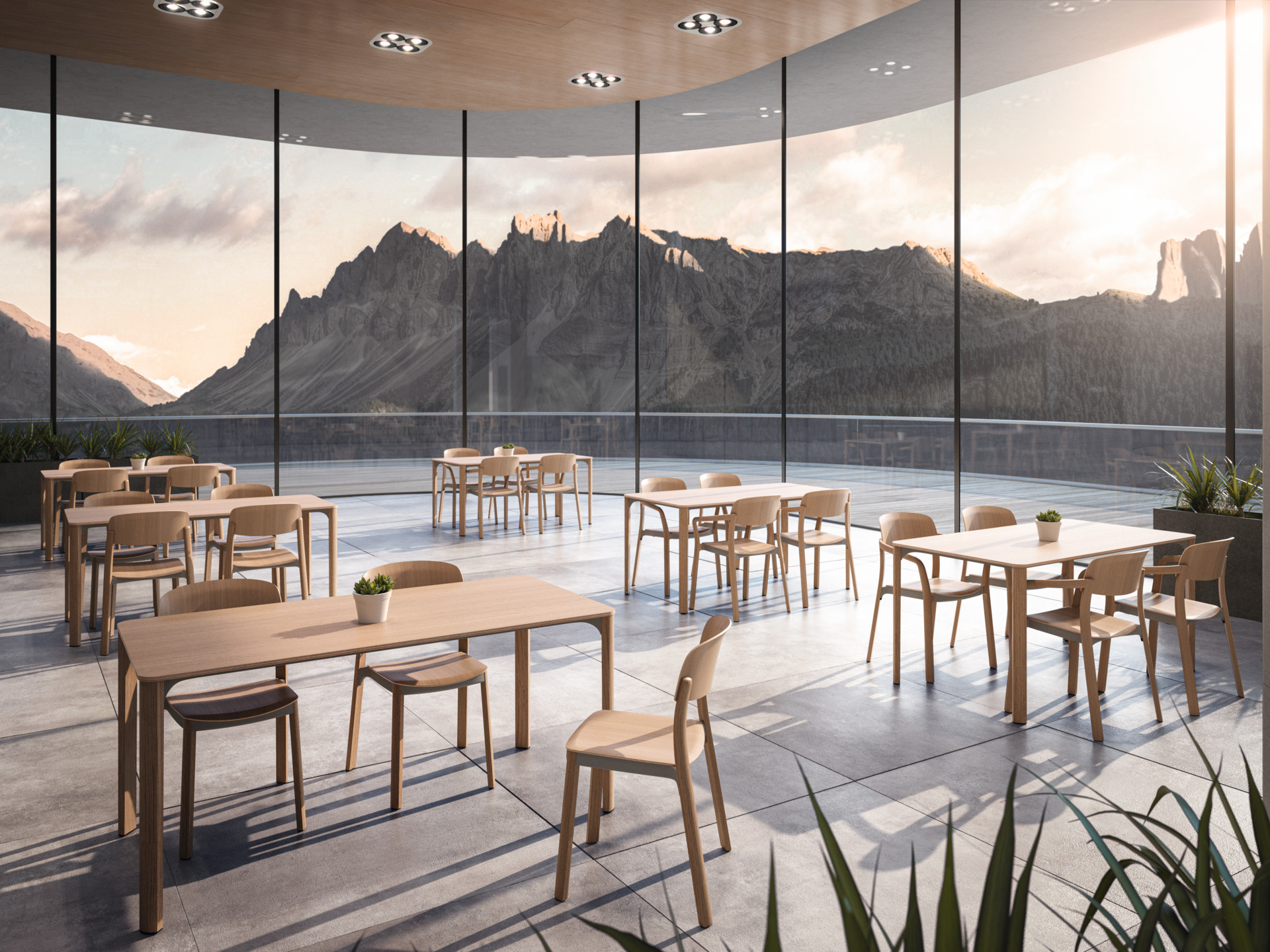 For nate, it all started with a light, stackable, hygienic and fully recyclable wooden chair 2.0. There was a great deal more potential to uncover in its pioneering combination of materials consisting of ultra-thin shaped wood, sturdy solid wood and a frame made from 100% recycled plastic. Stools, benches and tables then followed. A comprehensive range of products was born.
