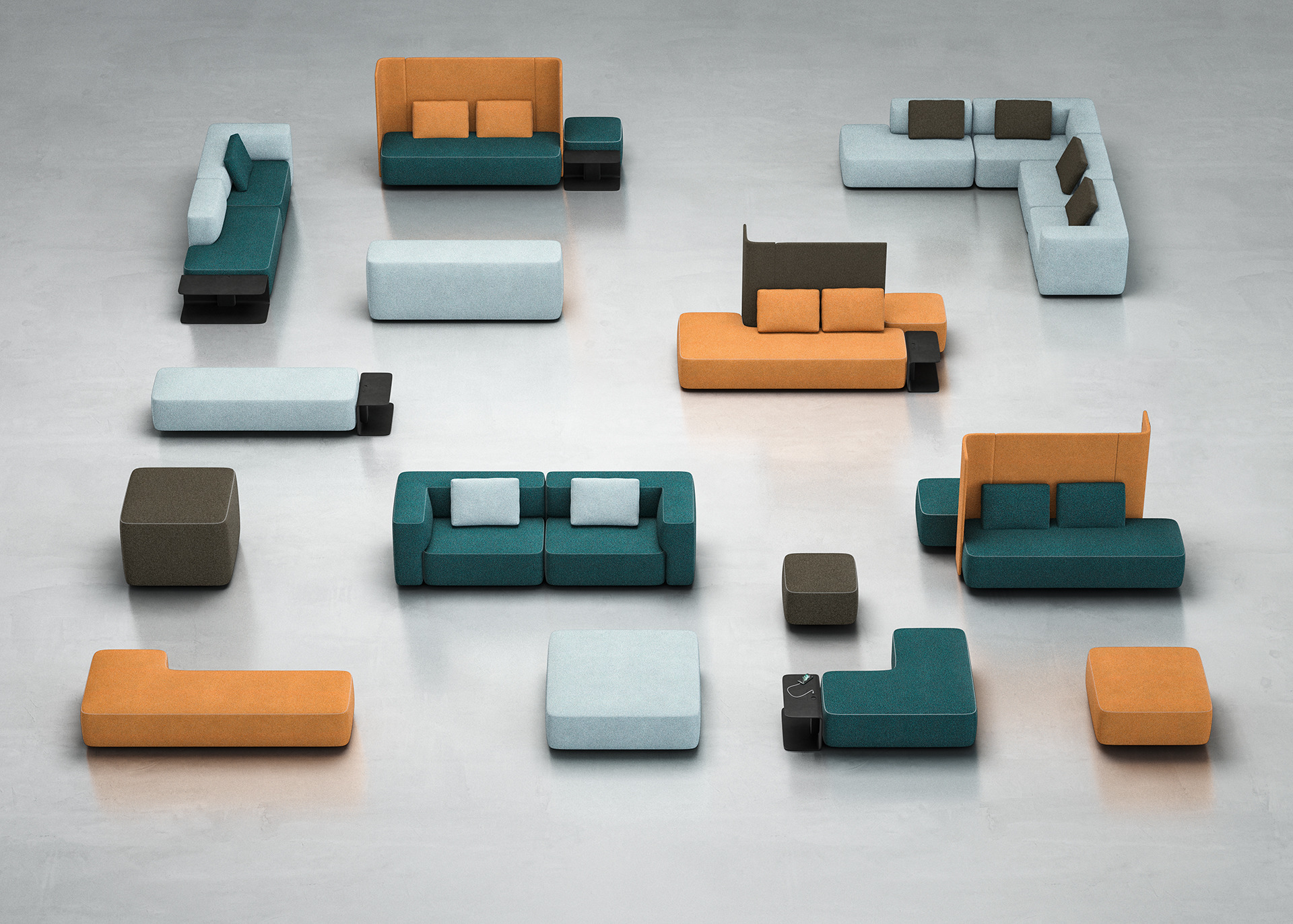 pads, Brunner, Brunner furniture, jehs+laub, seating, module, modular, color combinations, electrification