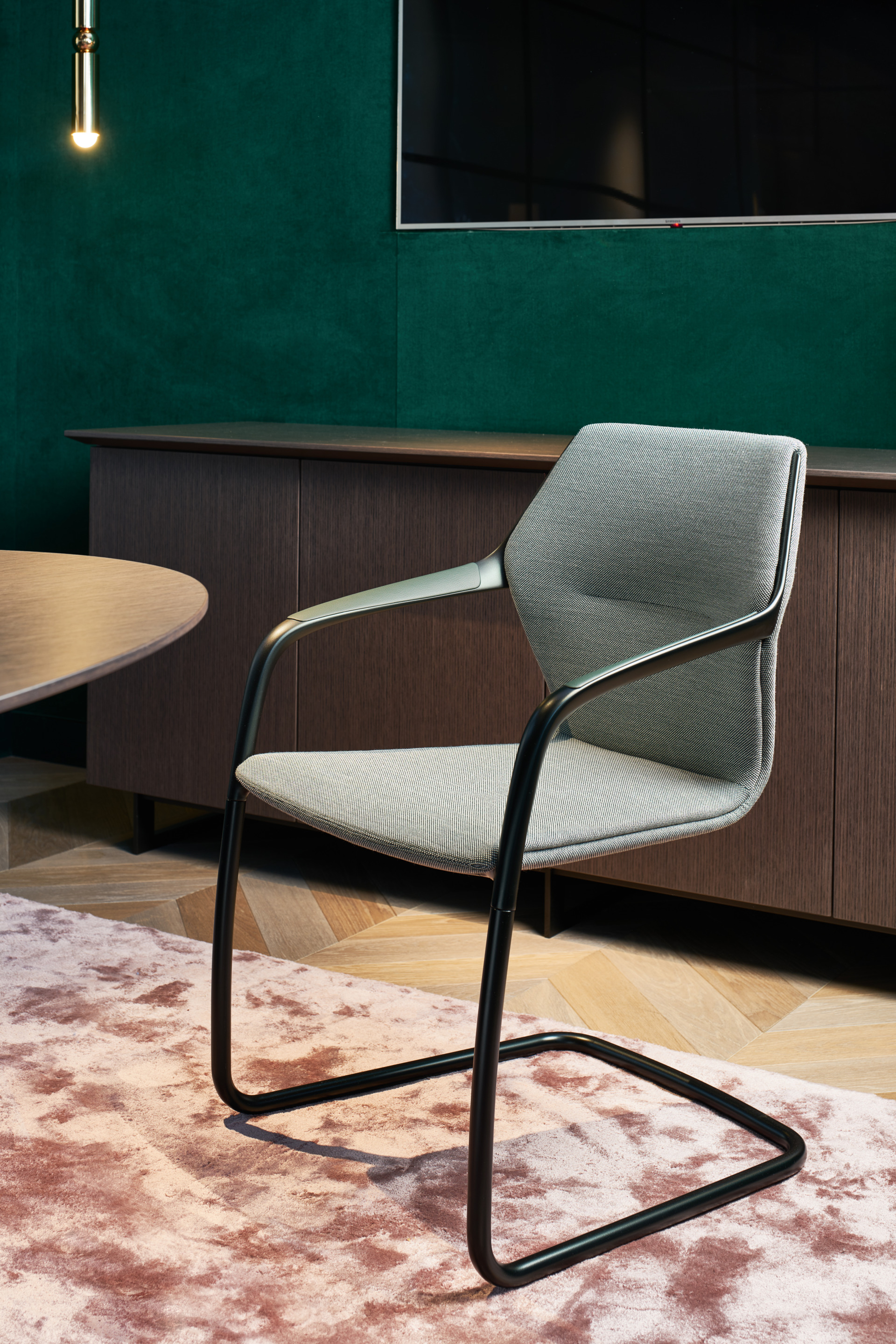 Slim, dynamic, and timelessly elegant: ray as a cantilever chair combines distinctive design with exceptional comfort. The ergonomically shaped seat shell adapts comfortably to the body and, in combination with the springy frame, provides a particularly pleasant seating experience. Depending on the backrest height, ray offers different upholstery options – from fully upholstered shells to strategically positioned padding. Seamless transitions between the frame, seat shell, and delicate armrests define its elegant appearance. A wide range of fabric and leather coverings, as well as various frame finishes and coating colors, allow for diverse design possibilities – all part of a versatile series that also includes swivel conference chairs.