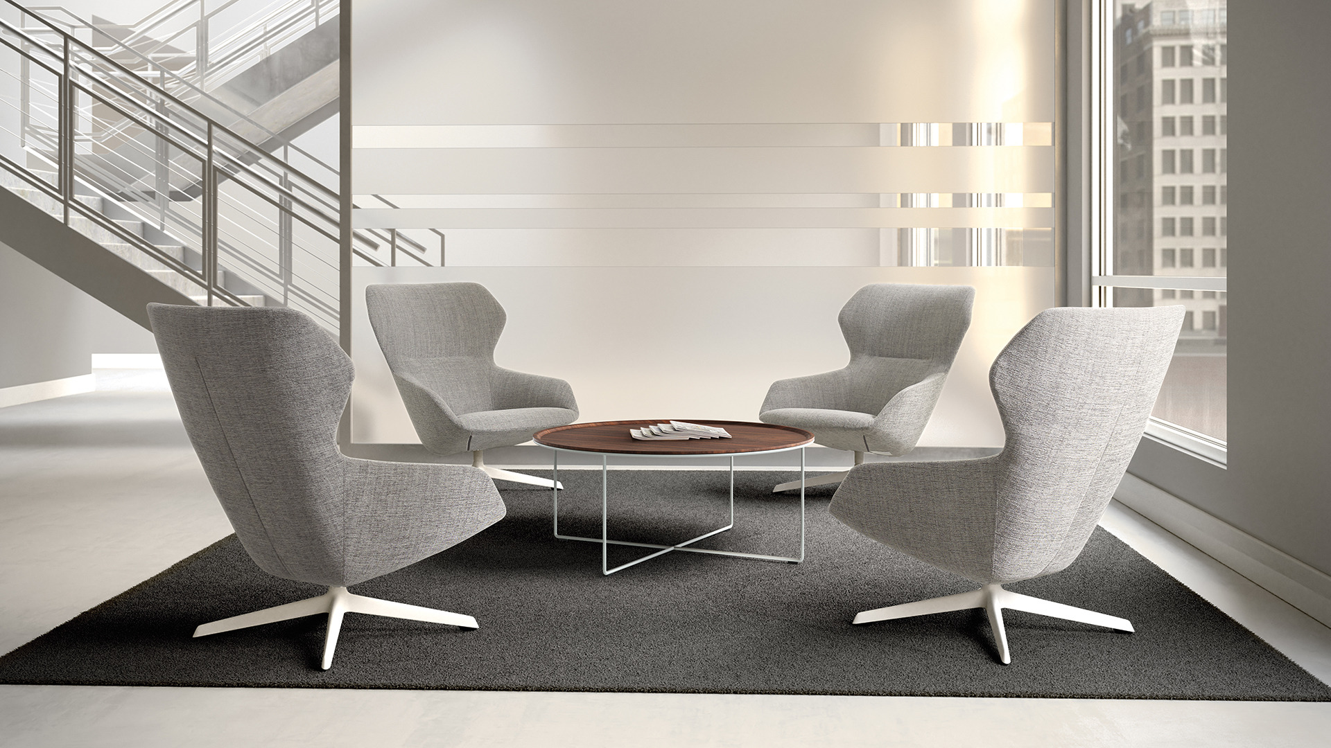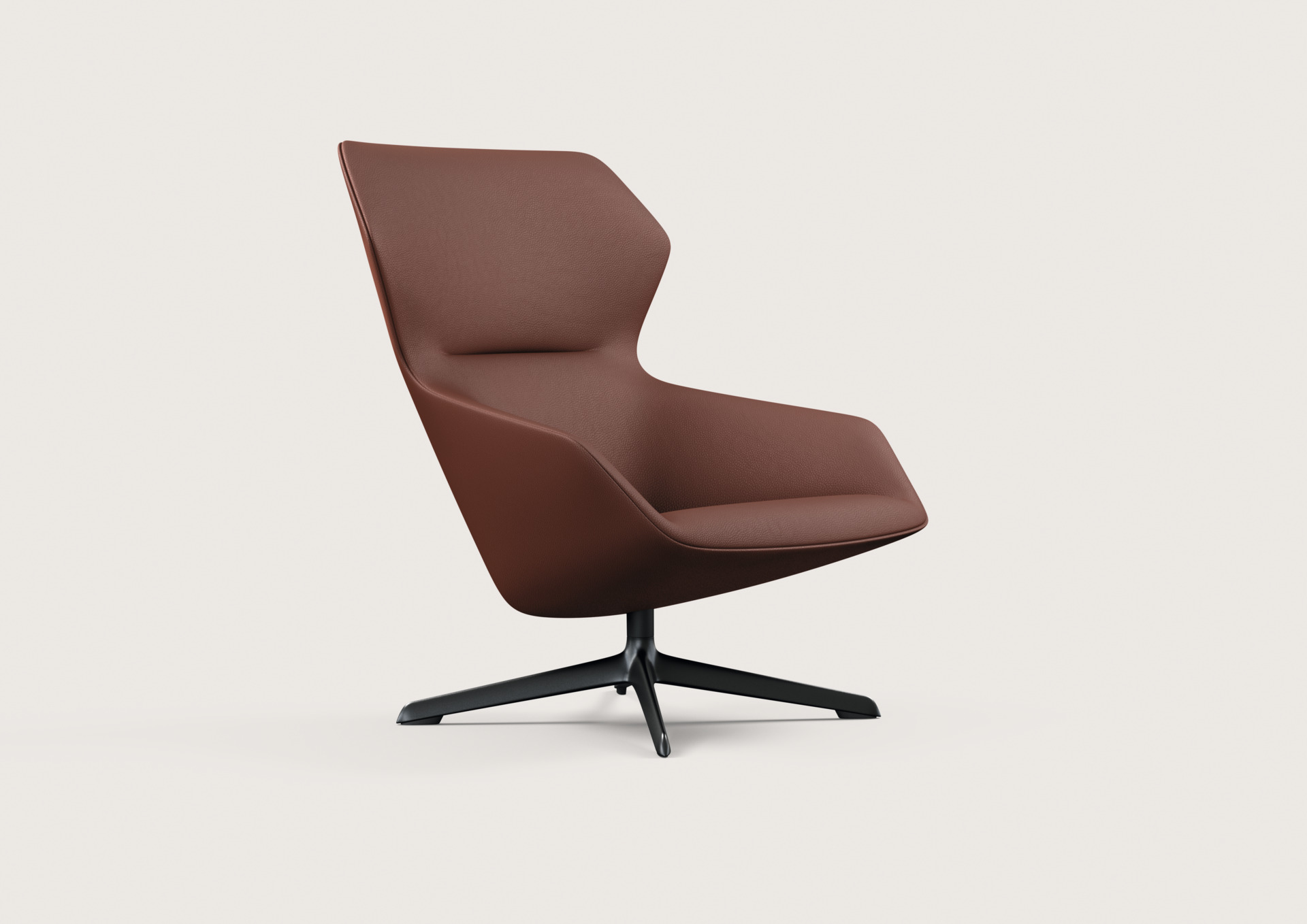 ray, ray lounge, ray collection, Brunner, Brunner furniture, jehs+laub, seating, lounge armchair, lounge furniture, lounge, waiting zone, single office, neck pillow, ottoman, rest area, lumbar support, material diversity, standing column, revolving