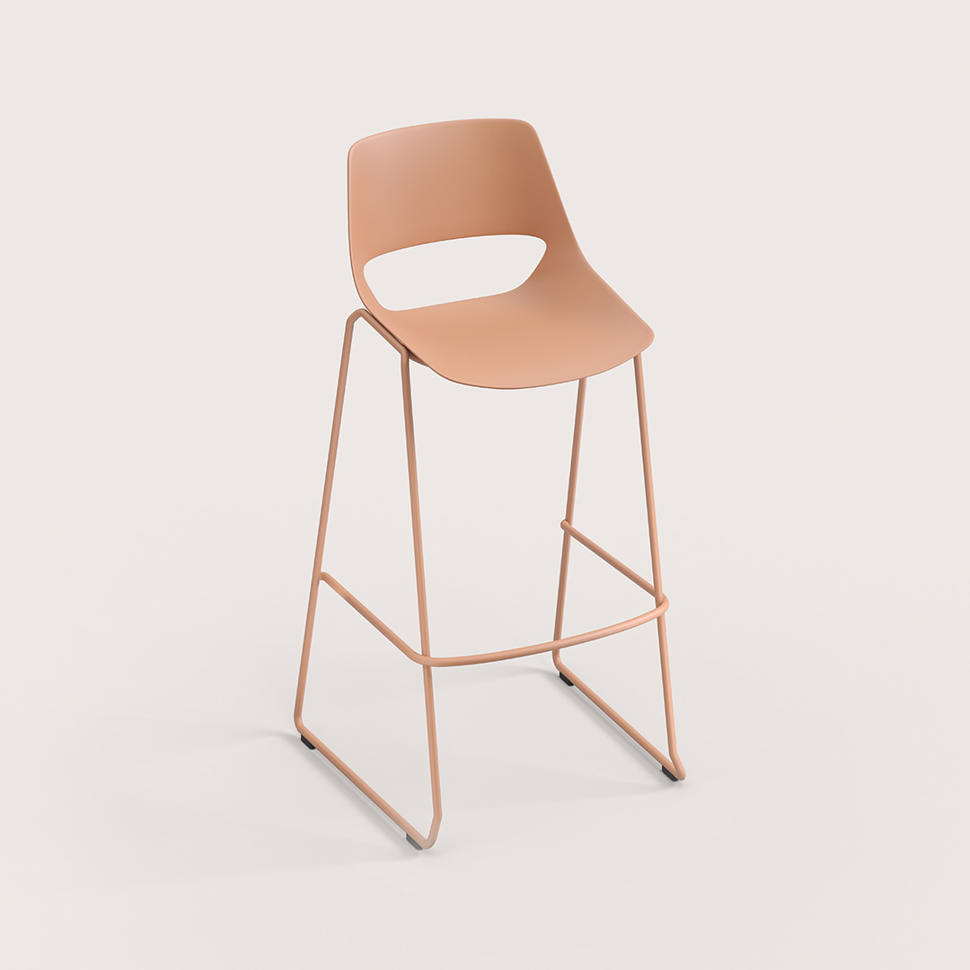scoop bar takes seating to the next level – ideal for catering, central areas and agile office spaces. The elegant bar stool from the smart scoop chair family encourages conversation and enjoyment at standing tables and counters. At the same time, the lightweight model is robust and stable: the slender four-legged and sled-base frames are made from sturdy round-section steel tube. They can be combined with seat shells made of high-quality polypropylene or sustainable recycled plastic that boast superior hygiene properties. The characteristic back cut-out makes handling easier and gives the scoop bar a slender appearance – even in the upholstered version – in eight exclusive colours from the new Brunner colour range.