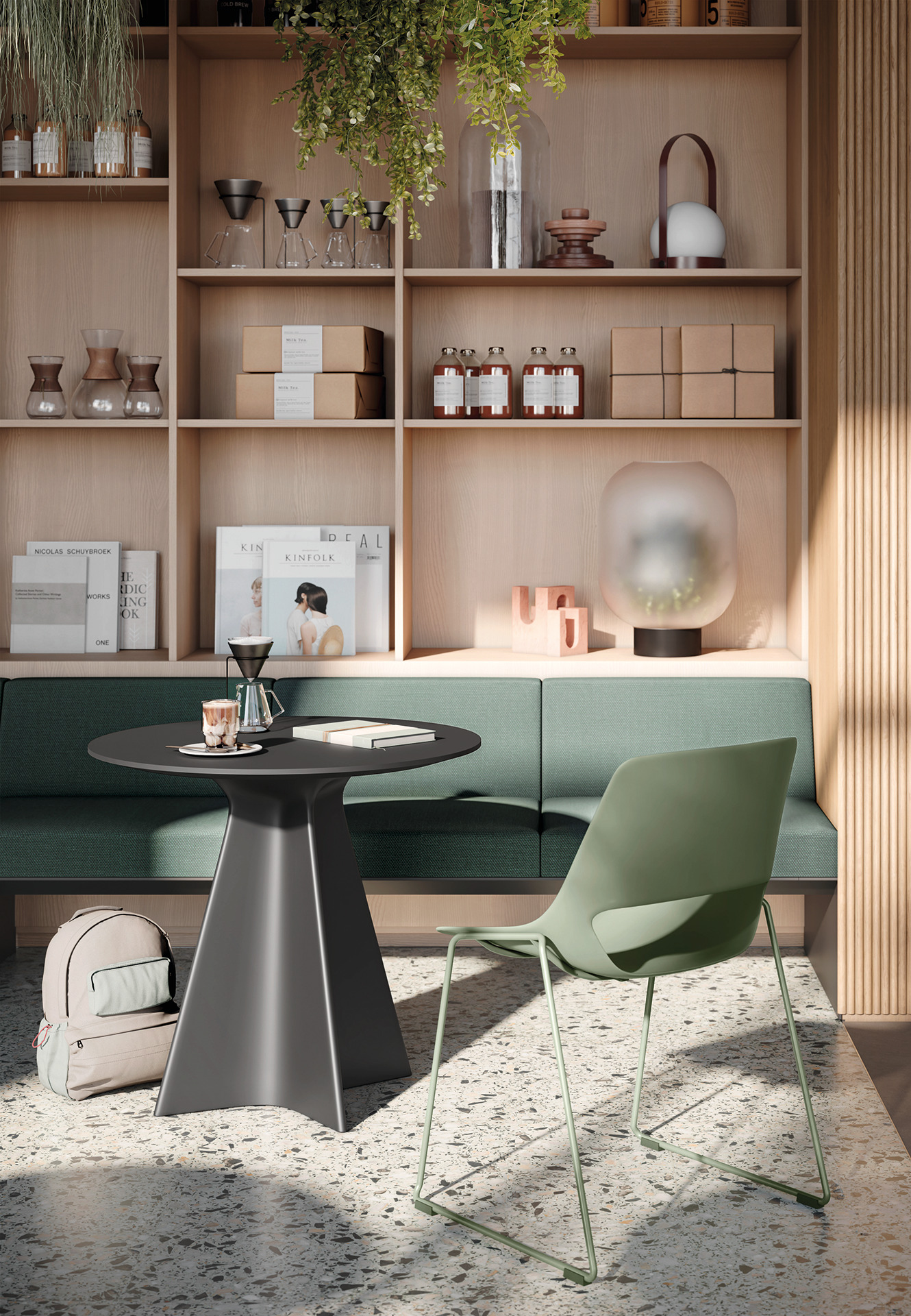 scoop is the chair for anyone who values design options – and loves comfort. It rises to the demands placed on conference and seminar rooms, restaurants and cafeterias, clinics and home/offices thanks to its large selection of colours and materials that also include premium recycled plastic, optional armrests and various upholstery and frame variants. The half-open back design gives it a slender appearance and makes handling easy. It can be quickly put in place or stored thanks to the space-saving stackable frame. It has minimal maintenance needs and boasts superior hygiene properties. Stylish, comfortable, well-designed – this all-rounder looks good everywhere.