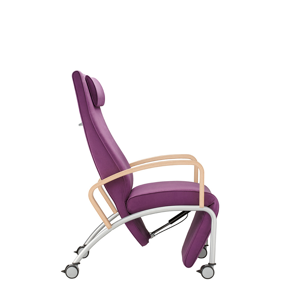 - Curved armrests provide a safe grip, thus facilitating standing up and sitting down.