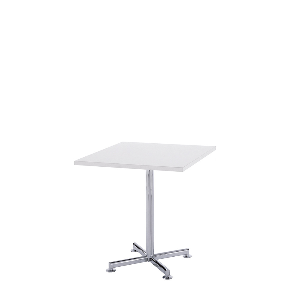 torino is a pleasing solution not only in business settings, but also in the cantine, with its increased demands. In this environment, the column table comes into use: An extremely easy-going feel but with the expected stability. A classic cross-shaped foot ensures optimal leg room and the table top is available in a variety of designs. Choice of HPL, beech veneer or oak veneer.