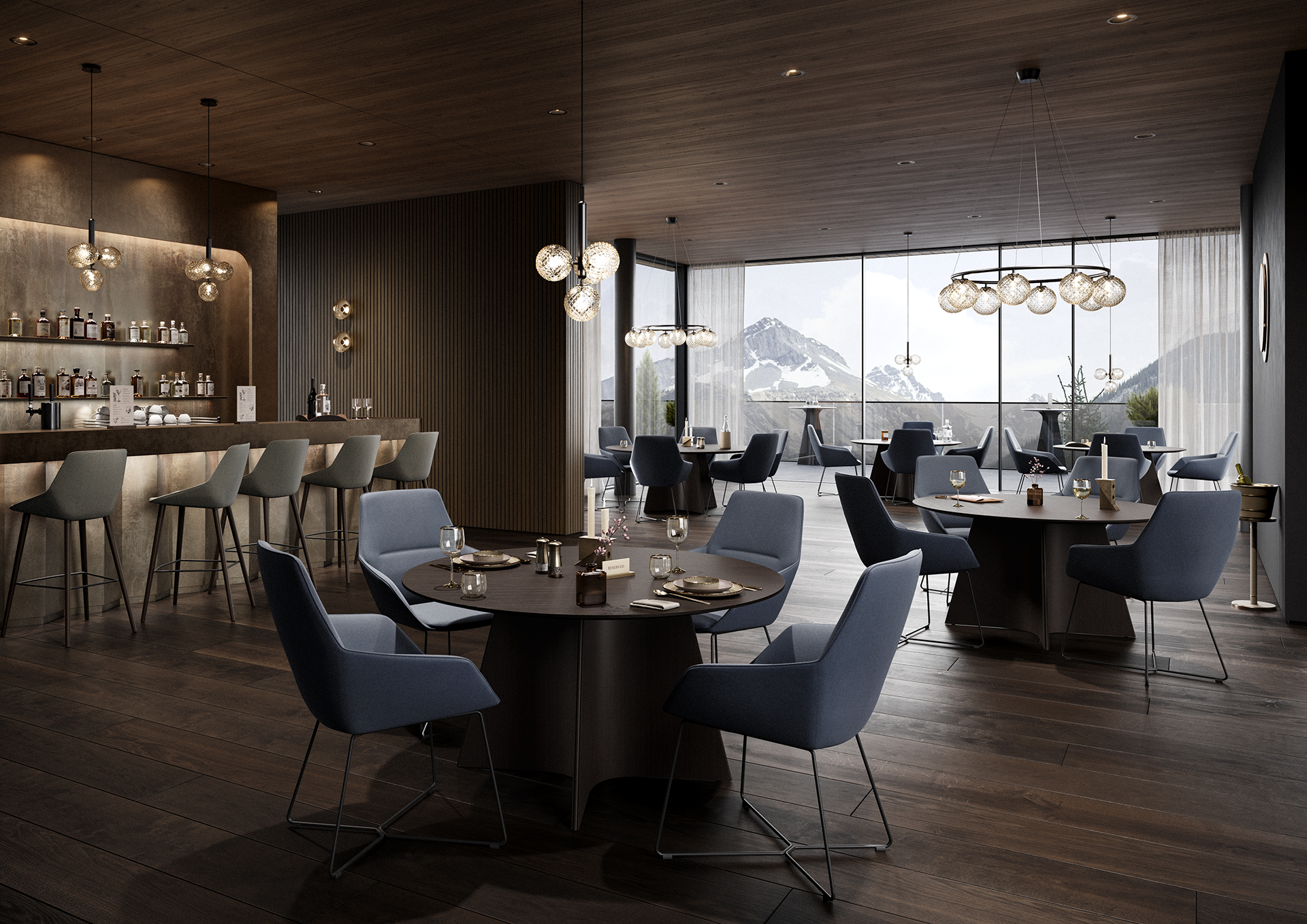 The wave table range sets course for professional, sophisticated work environments and spots for stylish hospitality, where its design – with an outstanding appearance and functionality – is creating waves of enthusiasm. The wavy table leg coverings add attractive accents in wood or metal, stained or powder-coated, with luxurious extras – and always with a fresh twist. They can be removed without tools for flexible replacement as and when required, and for easy access to the cable guide rail in the frame. A steel frame combined with a sophisticated support structure ensures reliable stability and allows for table tops in a wide range of shapes, colours, materials, impressive dimensions and with elegant details. This makes wave the master of meeting individual requests for the most demanding requirements.