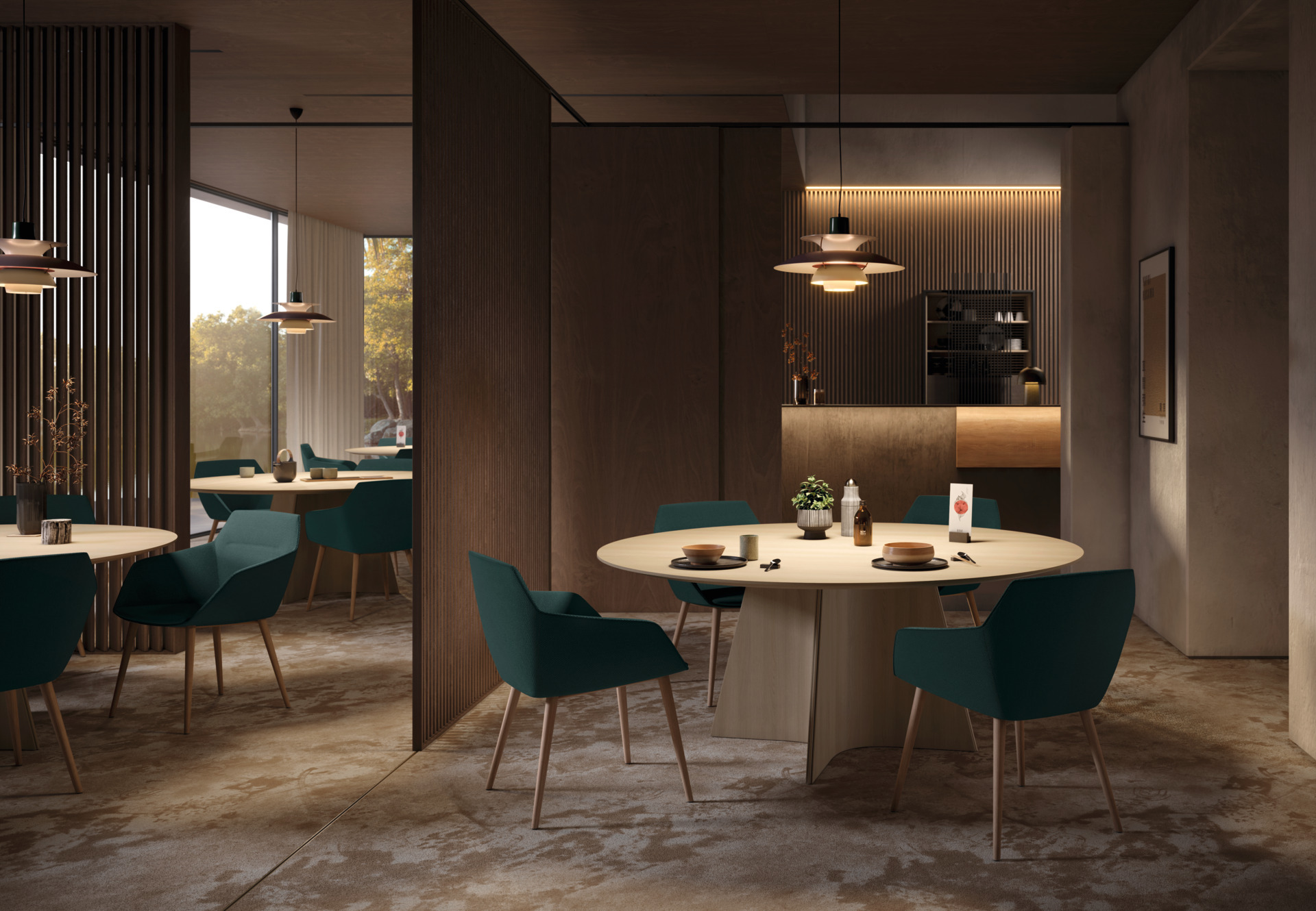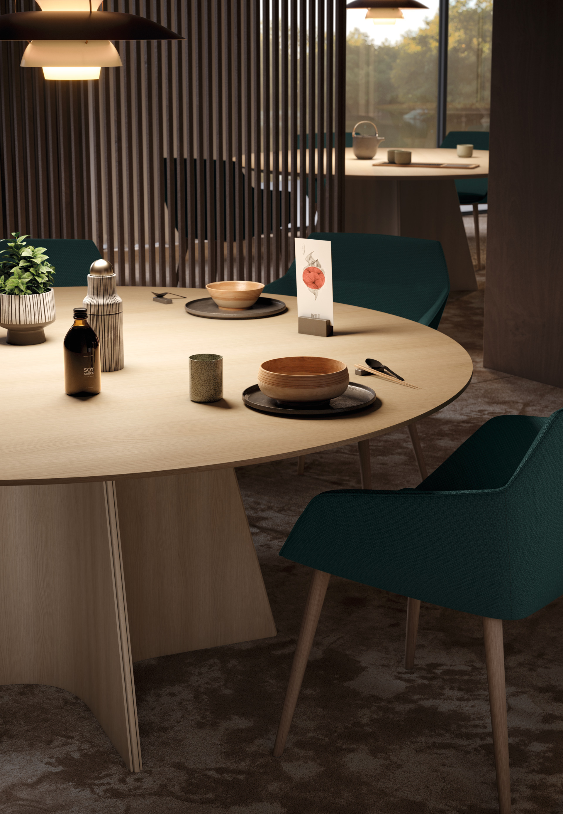 wave, jehs+laub, conference table, restaurant furniture, cafeteria, round table, modern work table, managment office, Orgatec News, Design News, design news