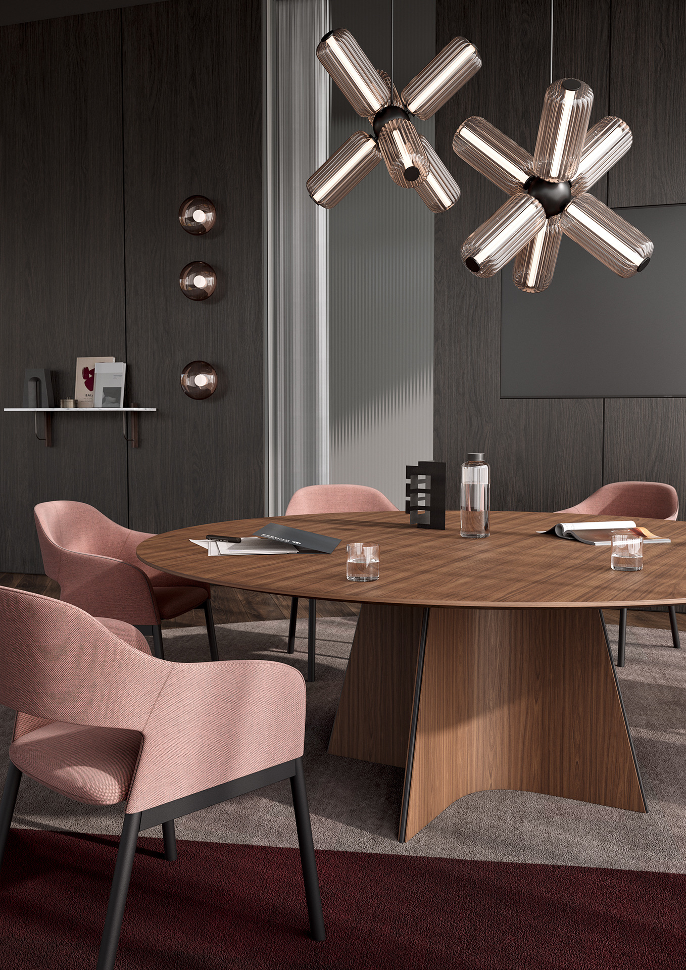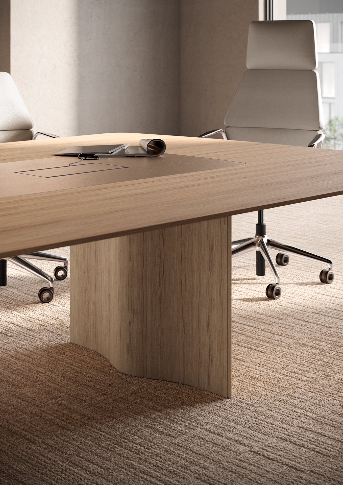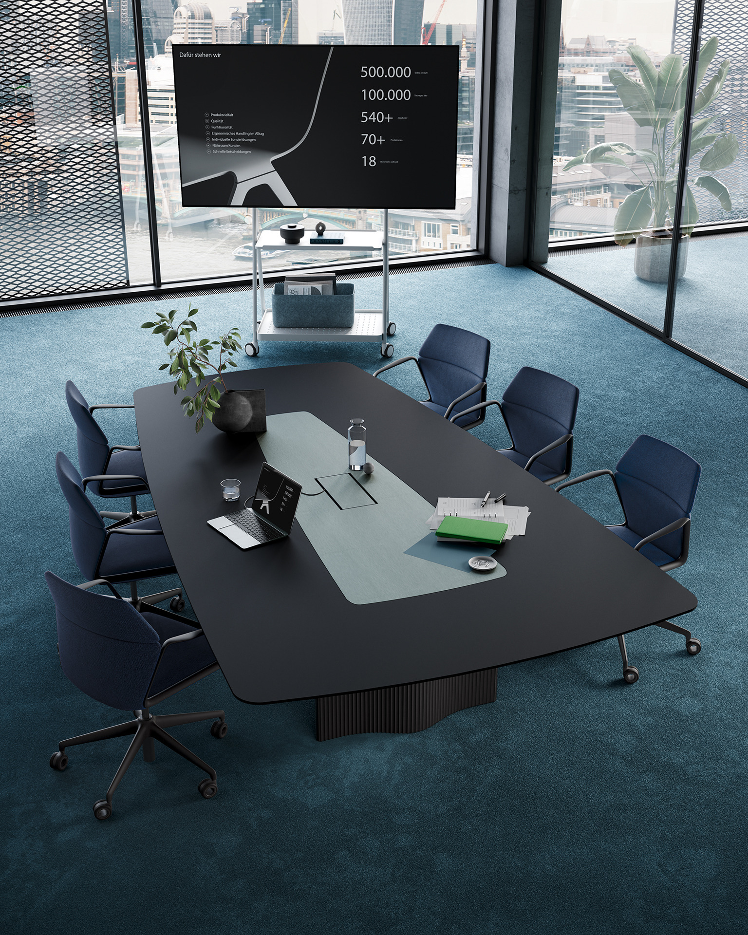 Whether in a modern conference room, prestigious office or exclusive hospitality environment, wave makes a clear statement about design, quality and personality in any setting. Shape, format, functions, extras, structure, material and colour combinations – everything can be customised to suit your requirements.