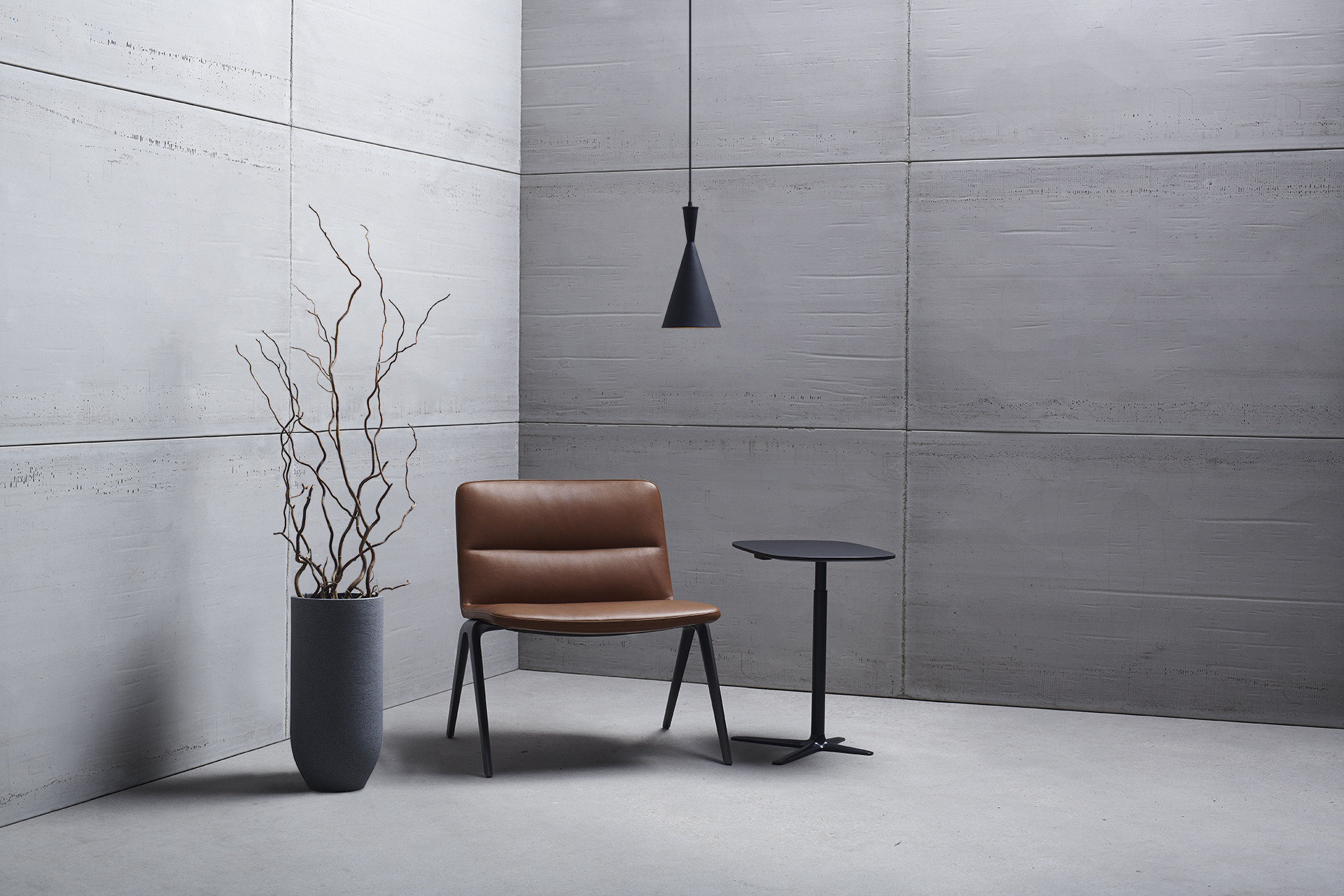- Extension de notre A-Collection avec un fauteuil lounge seul pour une utilisation dans un espace lounge ou une salle d’attente