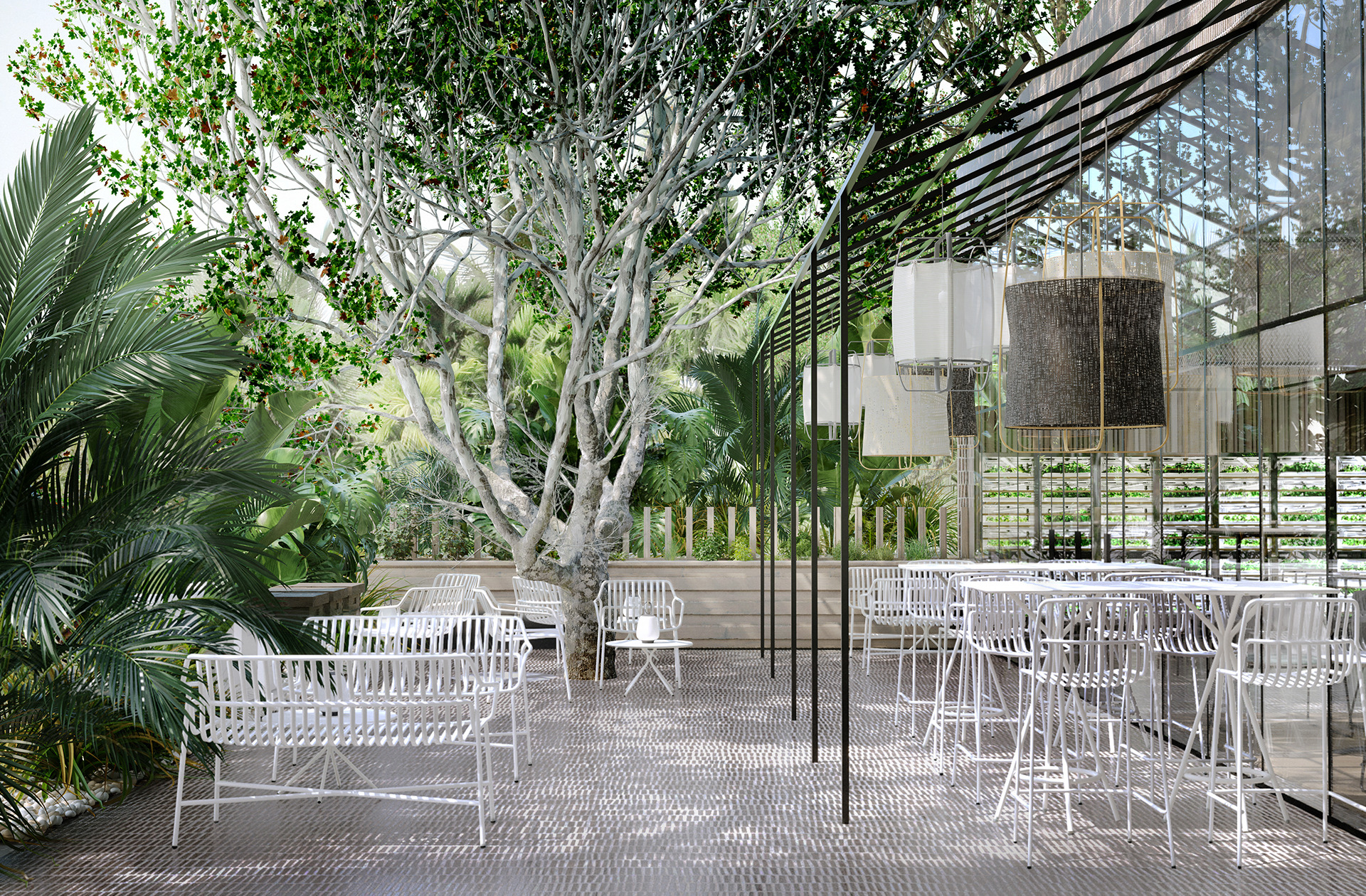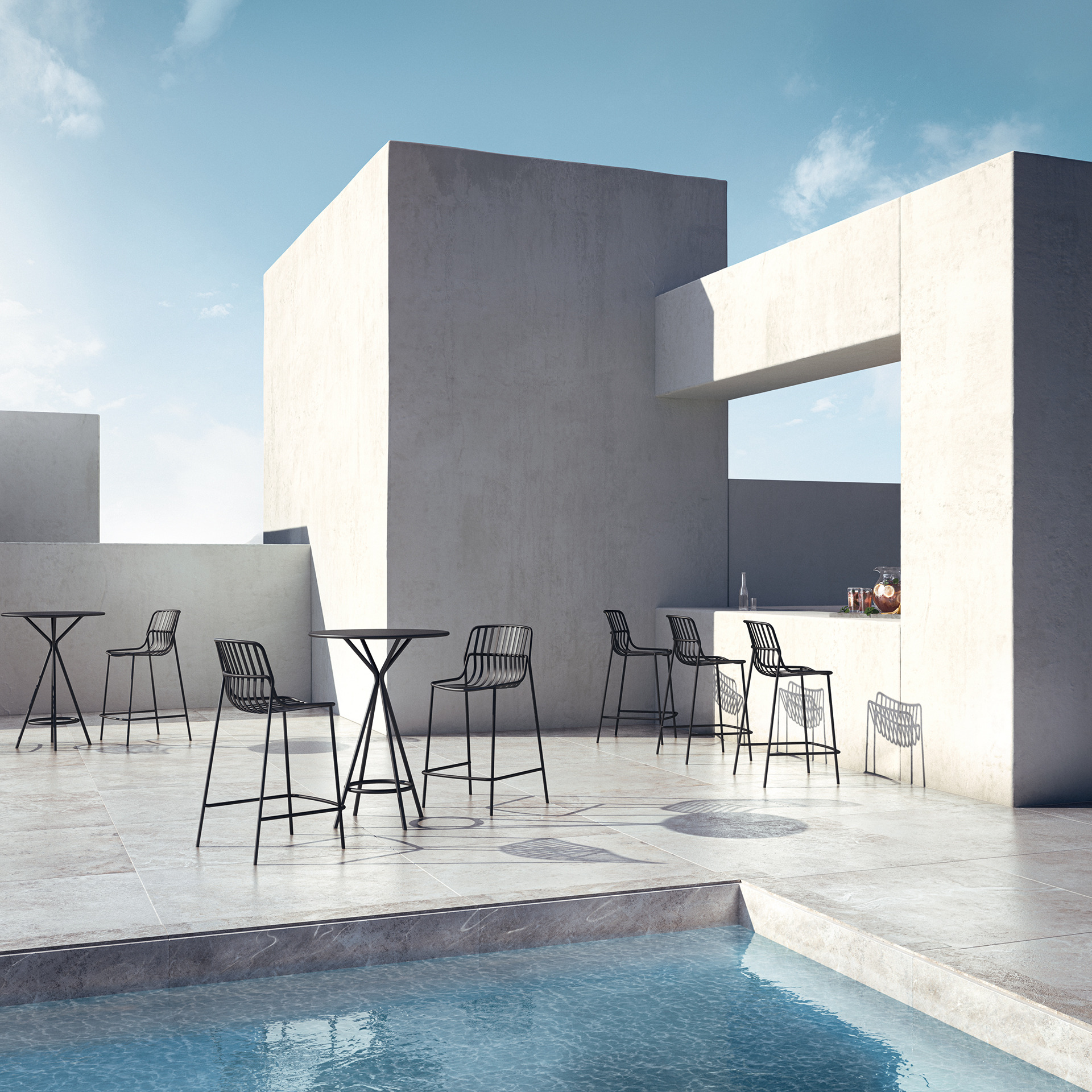 - Série outdoor polyvalente avec des tables pour les restaurants, les espaces lounge et les bars