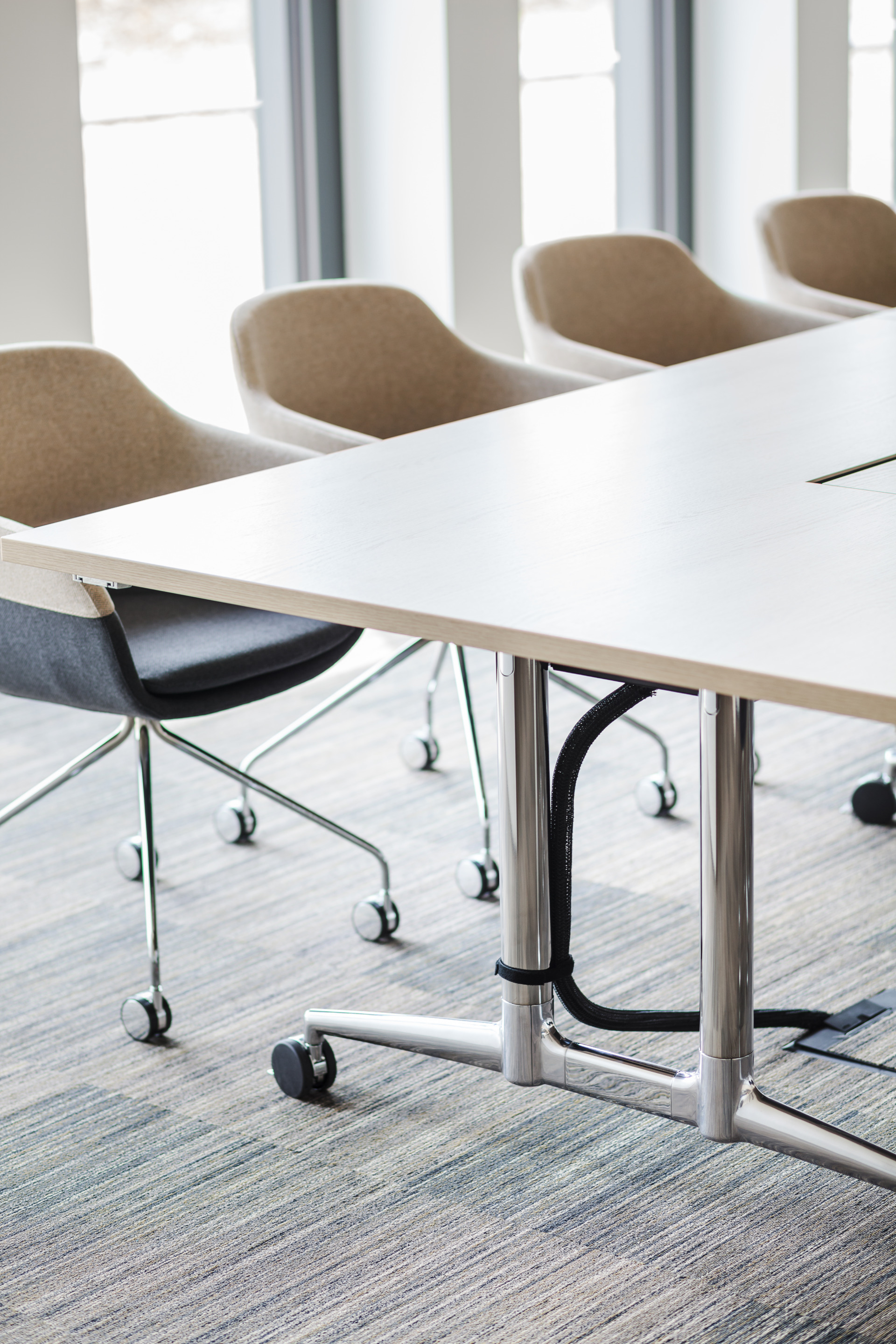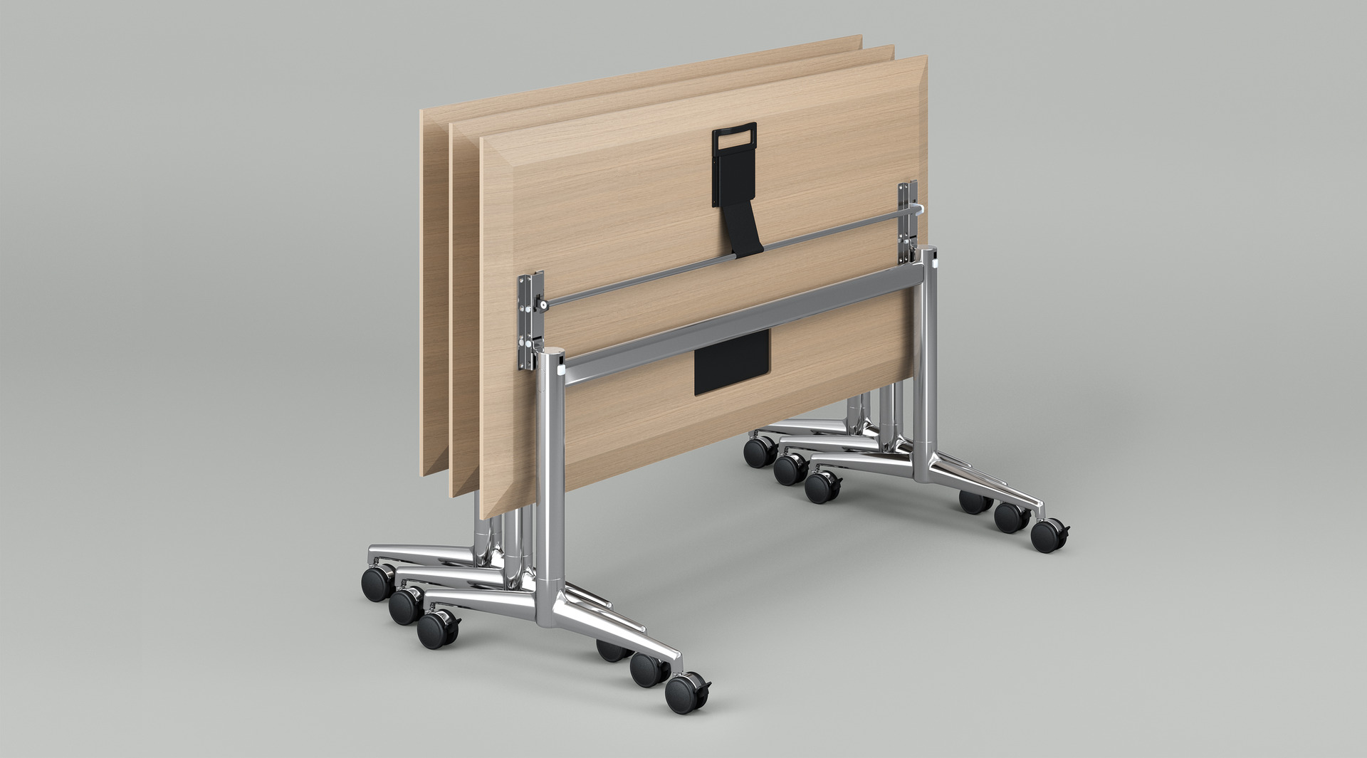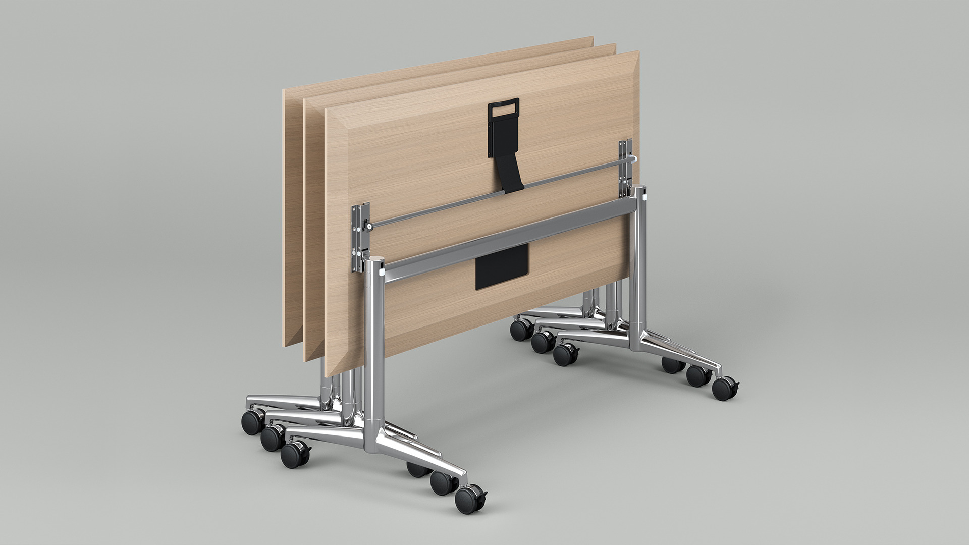 Une table aussi spontanée que les conférences qu’elle permet. Elle roule, se rabat et économise aussi bien des efforts que de la place. Une artiste de transformation que l’on aime avoir de côté – mais qui doit rester discrète : une fois démontée, fina fold se démonte en occupant très peu de place grâce à son embout de pied plat. Une autre bonne nouvelle : le design de fina fold complète parfaitement les séries fina conference et fina flex.