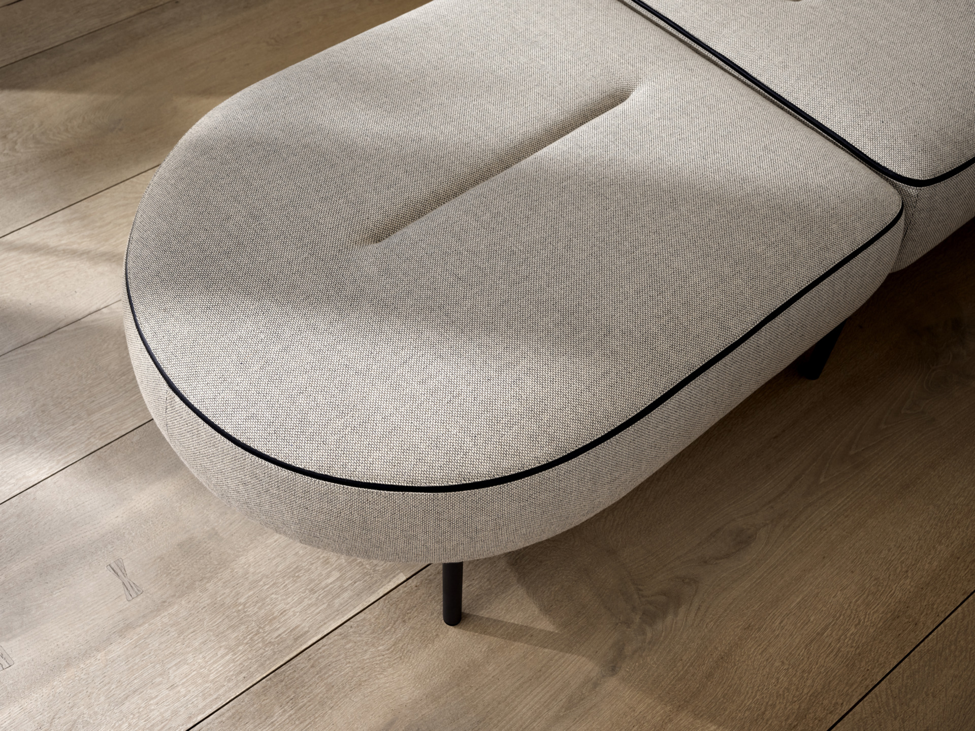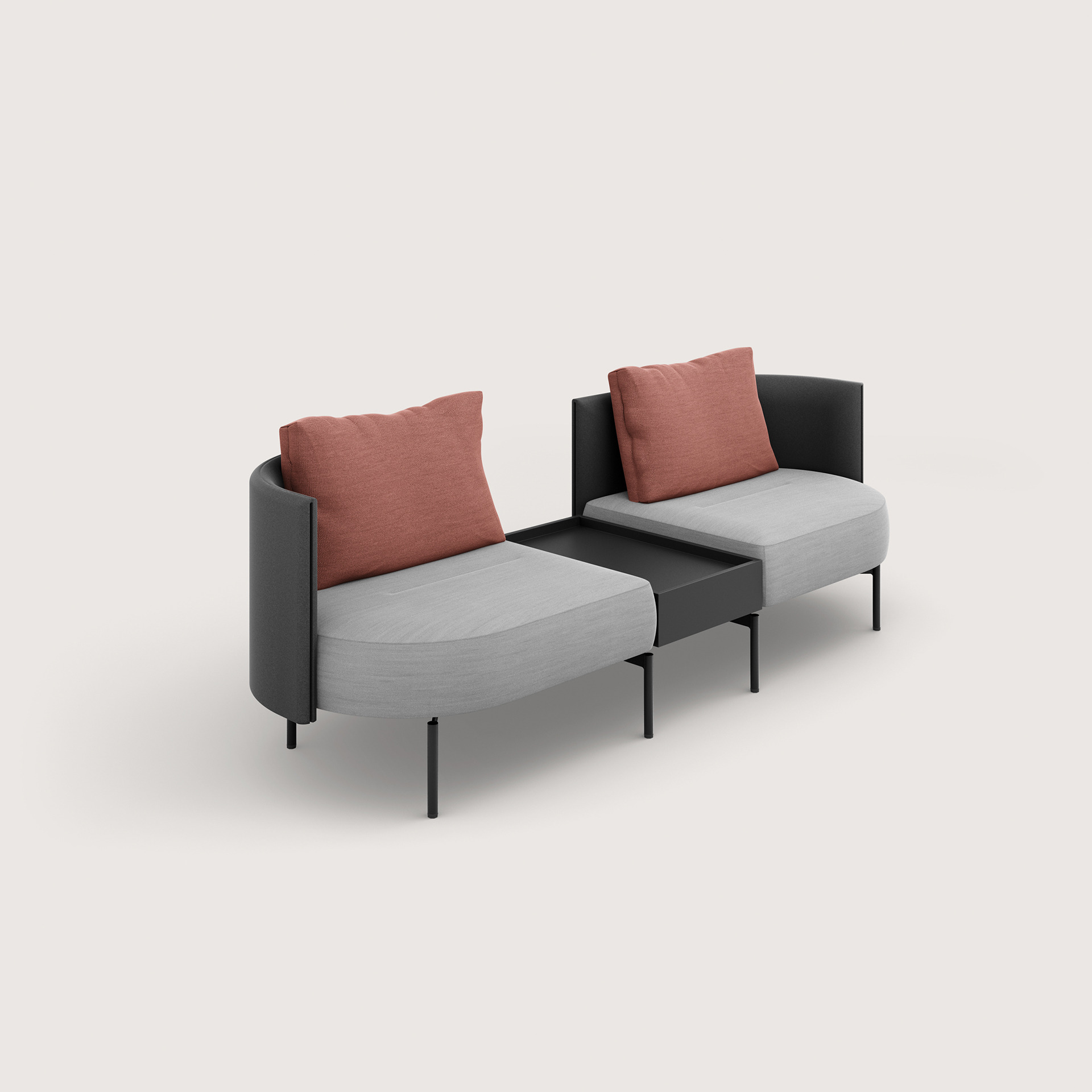 Pourquoi devriez-vous à nouveau vous lever ? Bonne question ! Plusieurs raisons s’y opposent... par exemple, ce garnissage agréablement doux et haut de gamme de la banquette aux multiples configurations, avec la bonne hauteur d’assise s’adaptant à l’environnement : basse pour le lounge ou à hauteur de travail pour l’espace professionnel convivial. Et puis, il y a aussi ces coussins doux devant les panneaux de protection au dos dans la variante basse et la plus haute variante protectrice. Sans oublier les agréables arrondis des coins ! Le système lounge polyvalent oval est également ouvert à d’autres géométries attrayantes, dont la forme rectangulaire. Justement ! Pourquoi devriez-vous vous limiter, si ce jeu de construction vous offre autant de possibilités, également sur le plan esthétique. Des contrastes colorés, deux variantes de piètement, selon le modèle également avec des roulettes et puis tous ces extras tels que les cloisons, les tables et les options d’électrification vous permettent d’aménager l’espace selon vos goûts. Essayez !