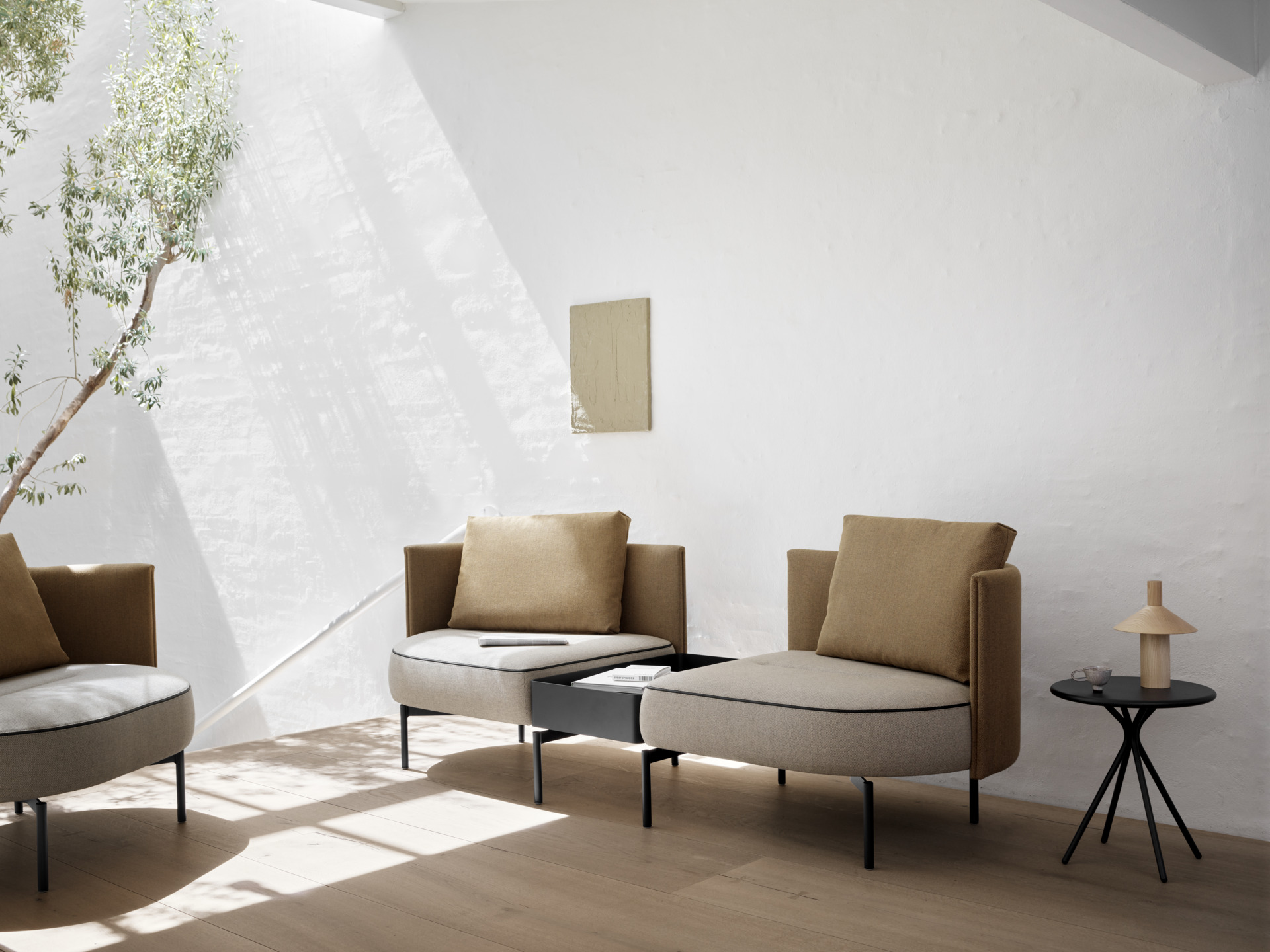La série de meubles rembourrés confortables opropose des options d’assise idéales partout où les personnes se rencontrent. Elle crée des lieux pour le NOUS. Traduit l'exigence de convivialité dans la zone d'affaires et fait les valeurs vivre.