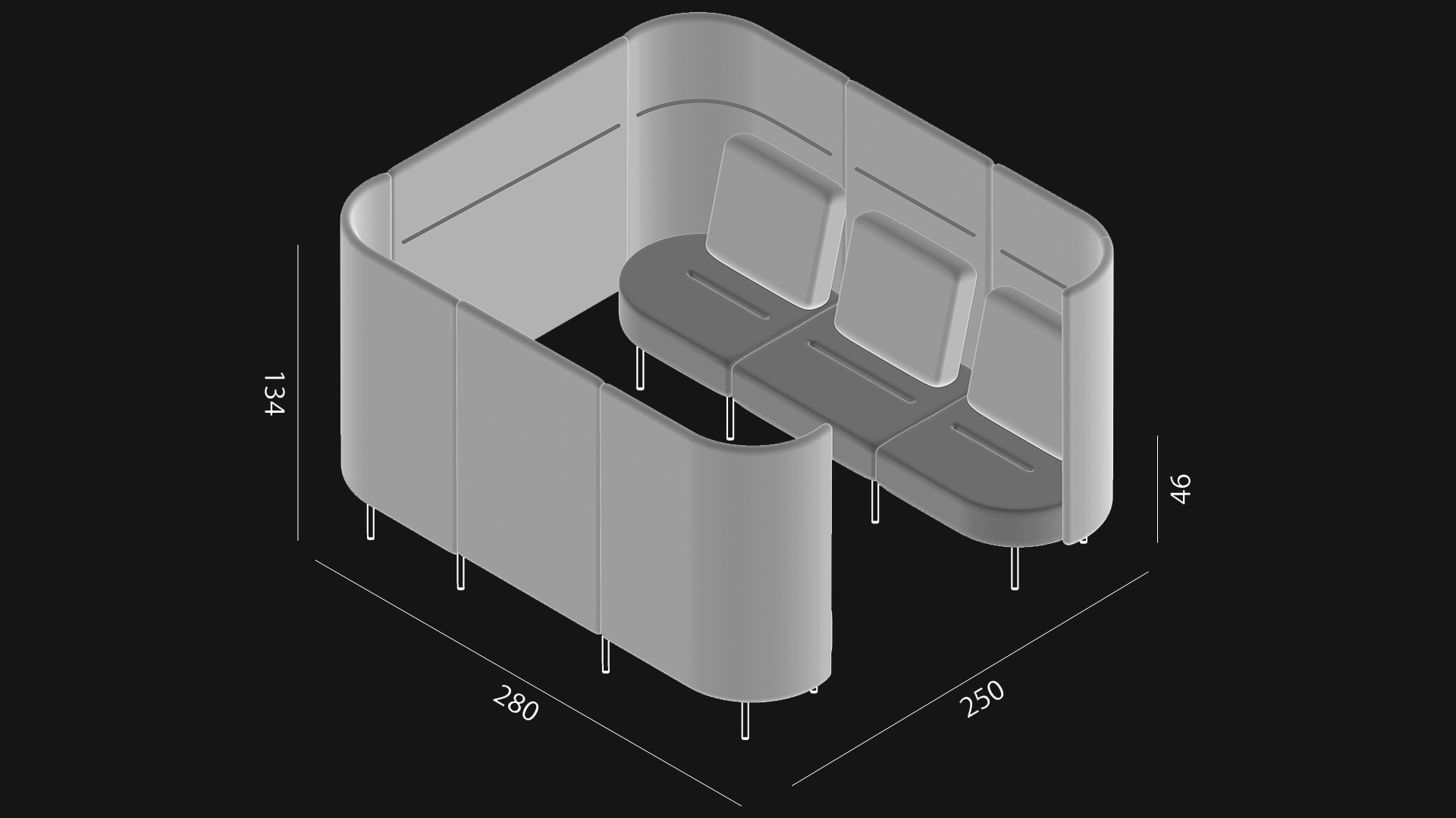 - Des fauteuils une place, une cabine de réunion et des tables viennent compléter la série