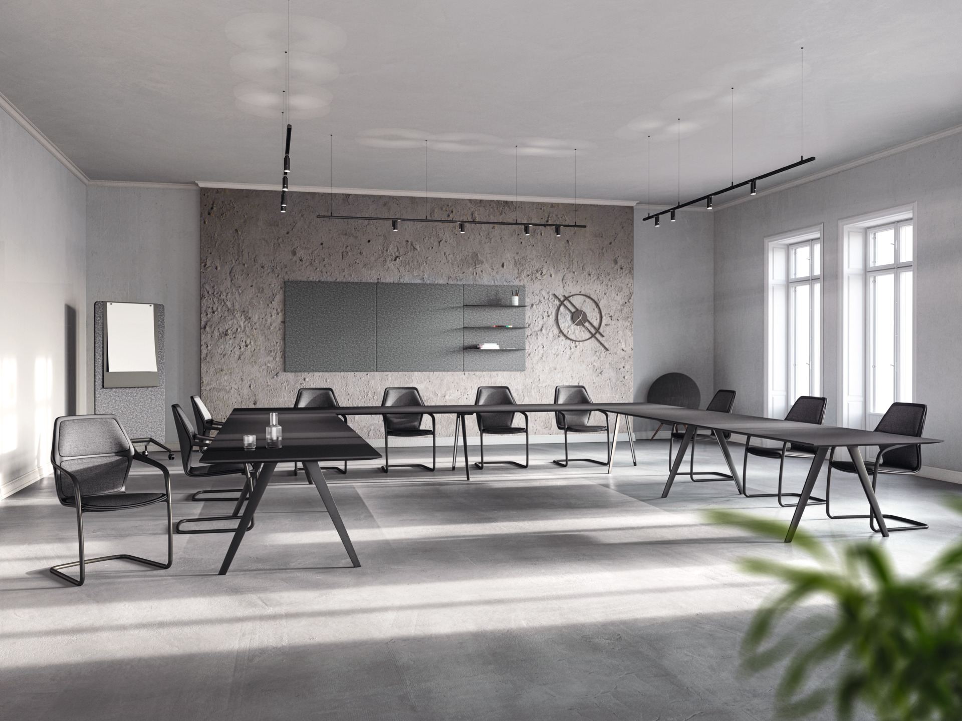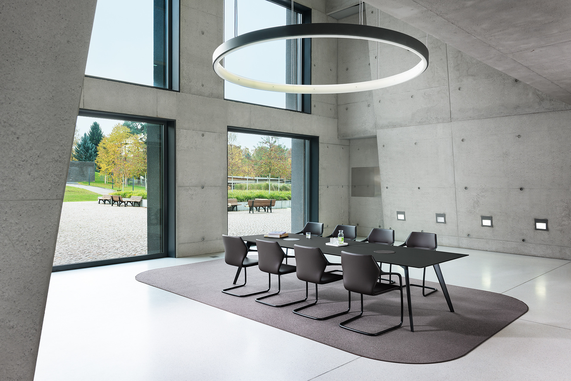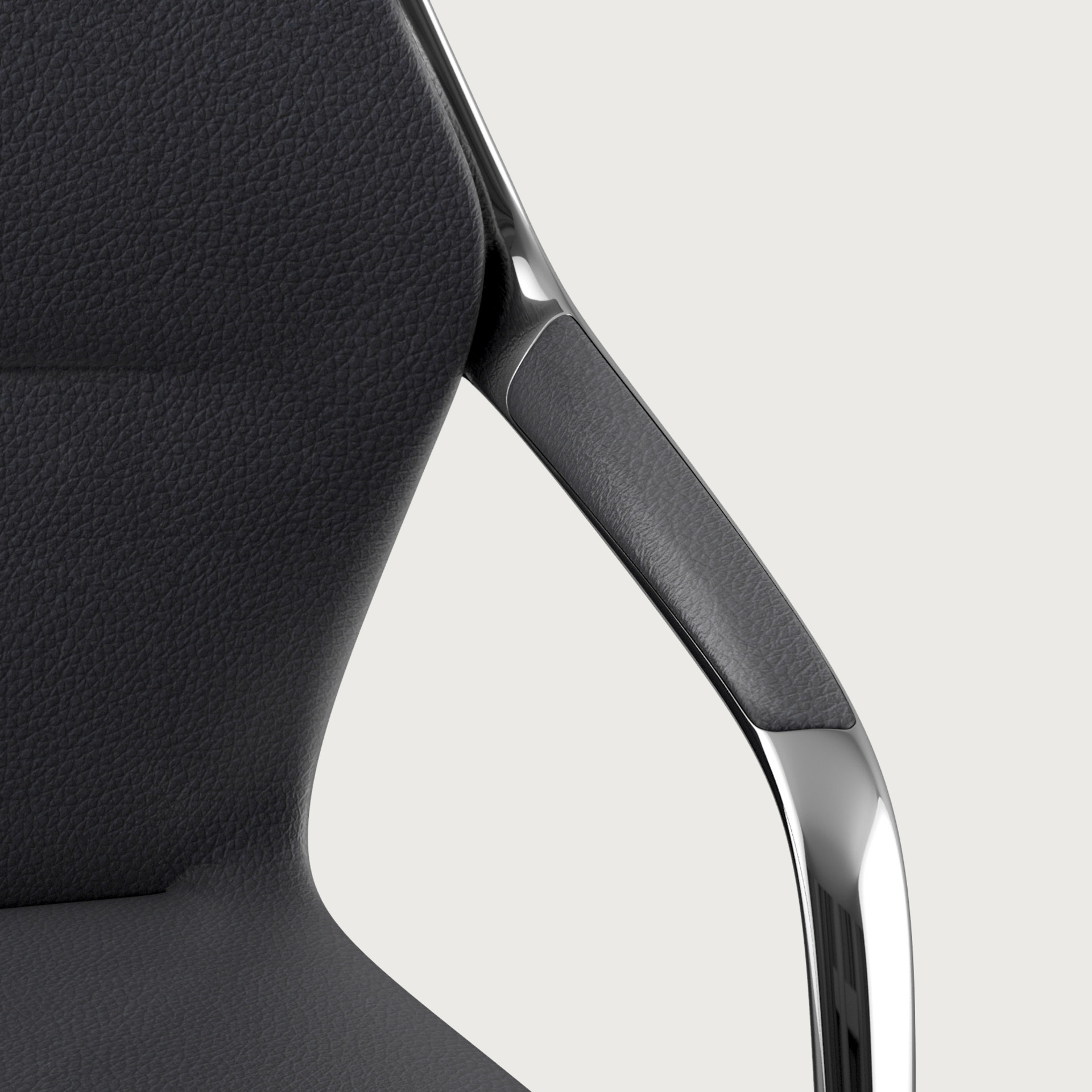 La promesse de l’élégance et de l’individualité : le siège piètement luge aux lignes gracieuses se décline au gré des envies selon un vaste choix de coloris pour les revêtements en tissu ou en cuir, avec un piètement stratifié, poli, brillant ou chromé noir. Mais le plus grand atout de ces chaises de conférence empilables et intemporelles est leur excellent confort d’assise. Celui-ci découle de la combinaison du piètement luge avec une assise et un dossier ergonomiques : le dossier bas avec une construction à lamelles souples dans la coque d’assise synthétique, le dossier mi-hauteur avec des coussinets parfaitement positionnés. Cette conception libre et intelligente trouve ainsi sa place dans toutes les situations.