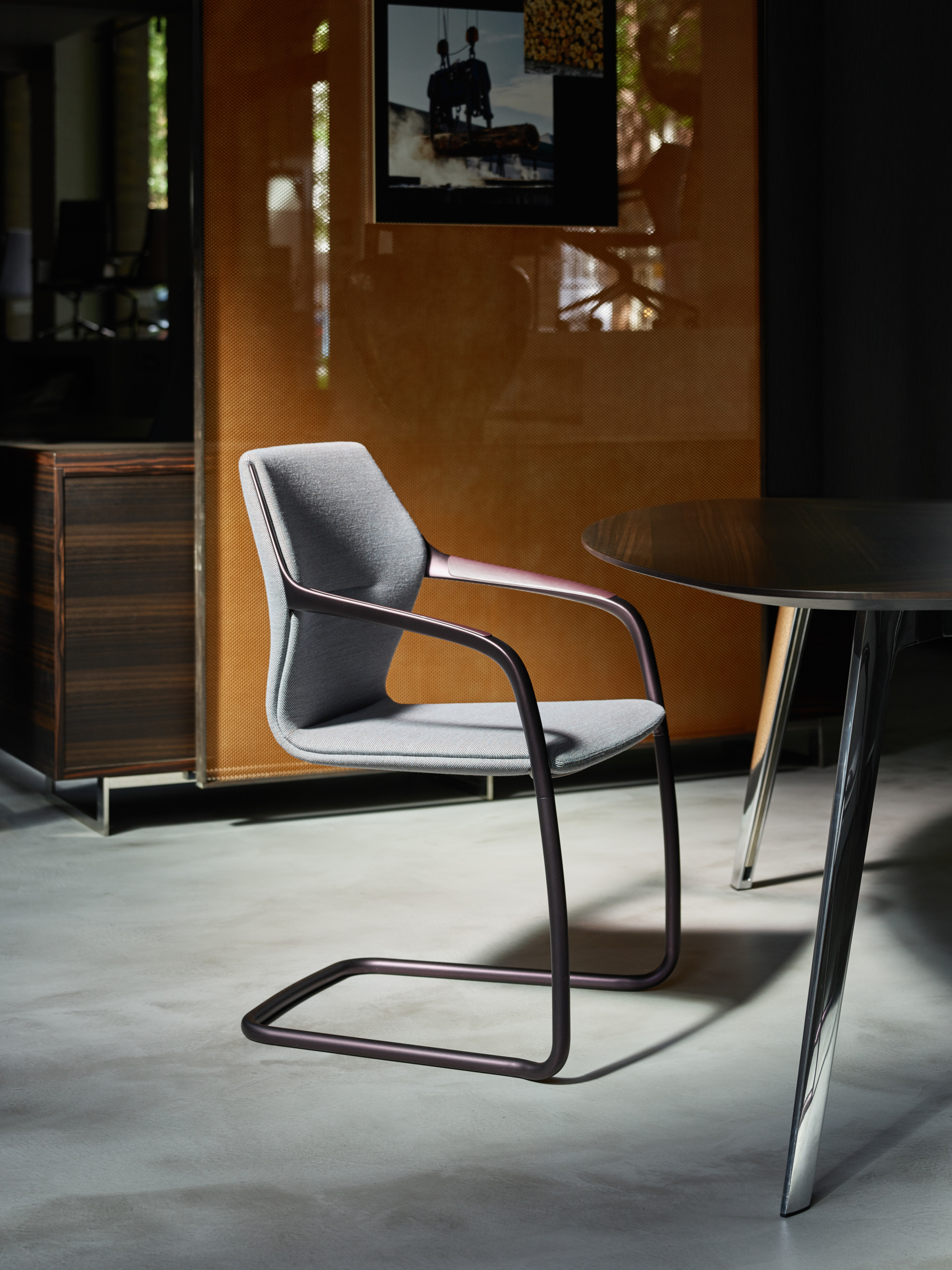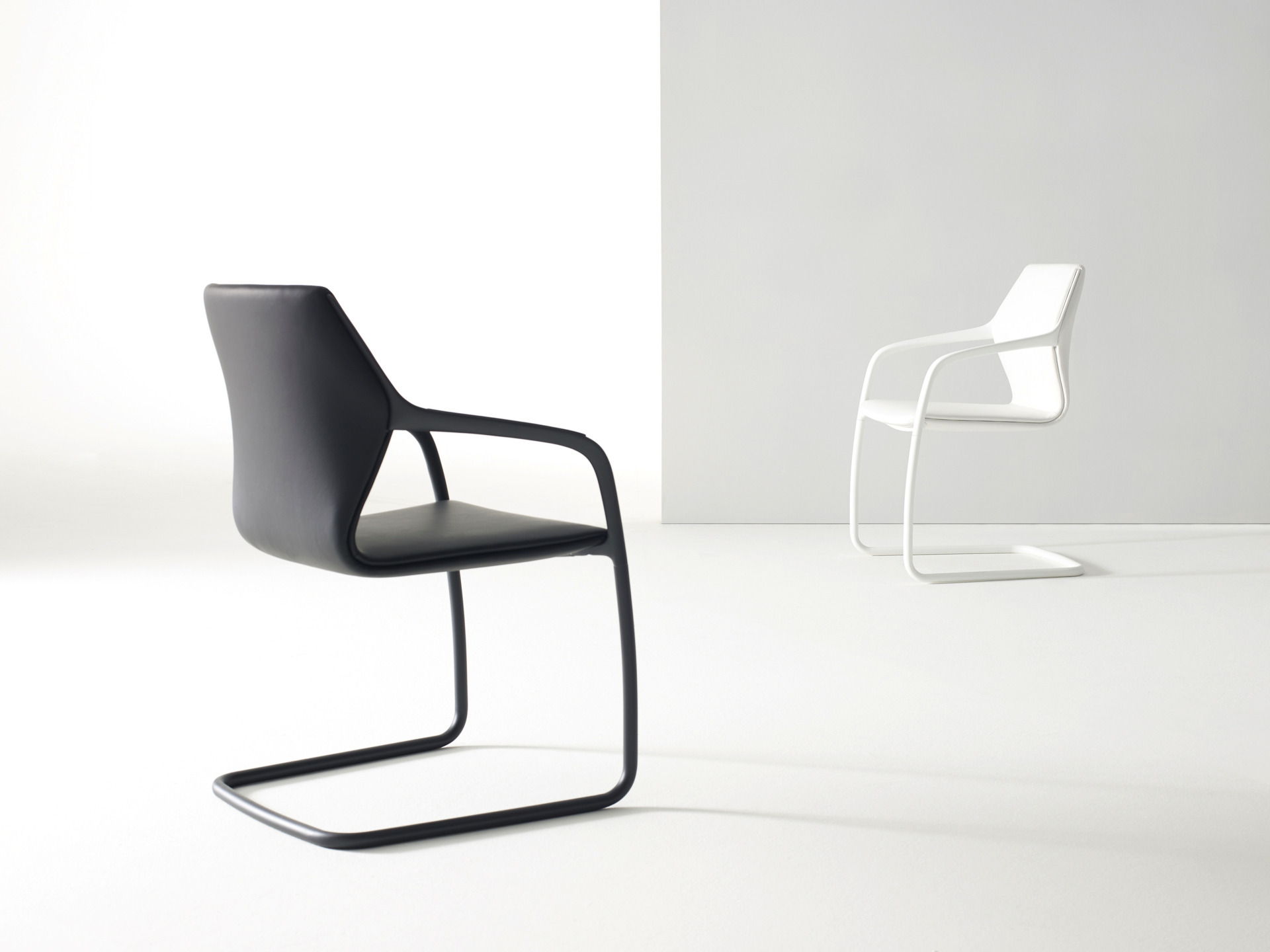- Transitions sans rupture entre le piètement, la coque d'assise et les accoudoirs filigranes