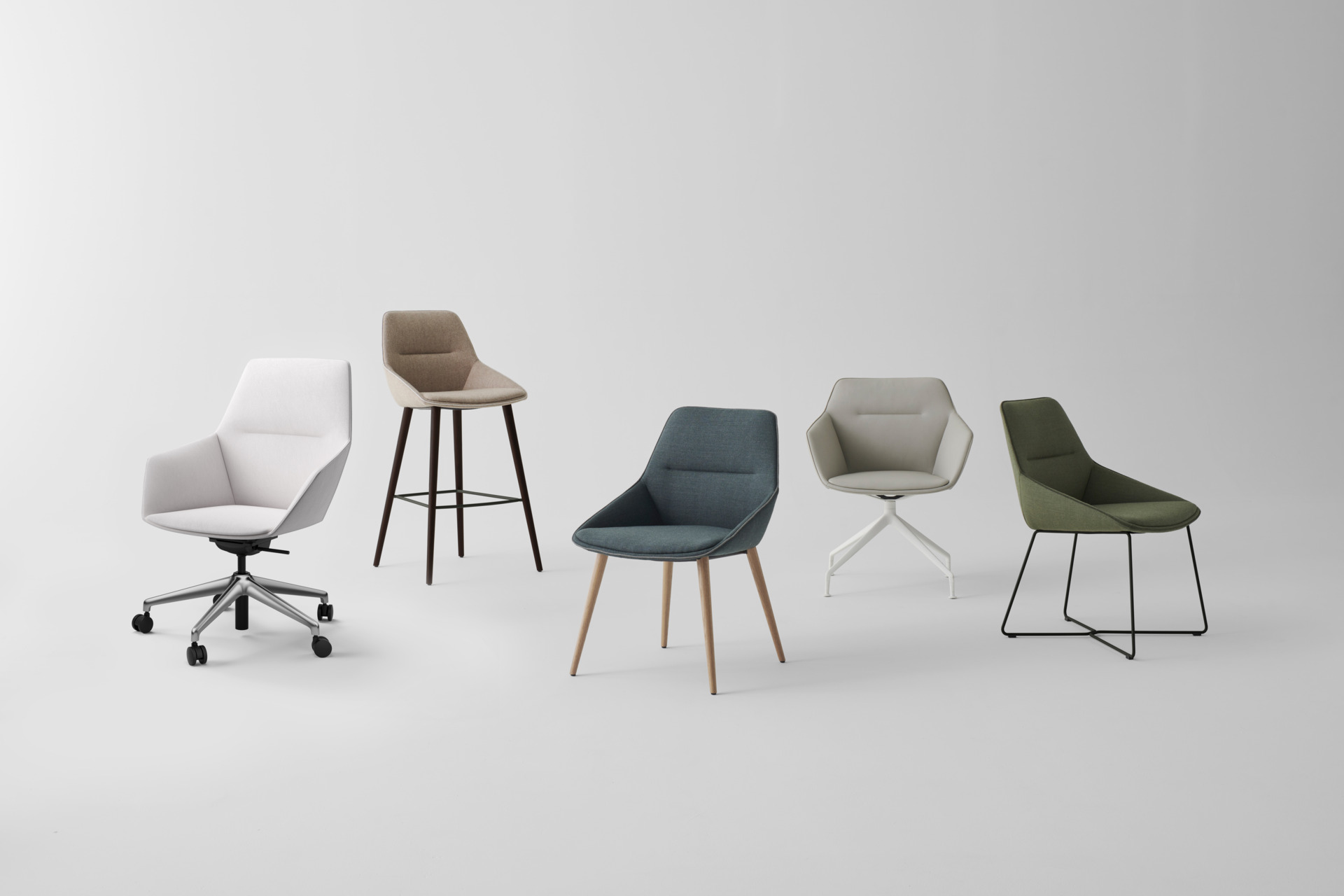 - La coque d'assise peut être combinée avec quatre types de piètements différents