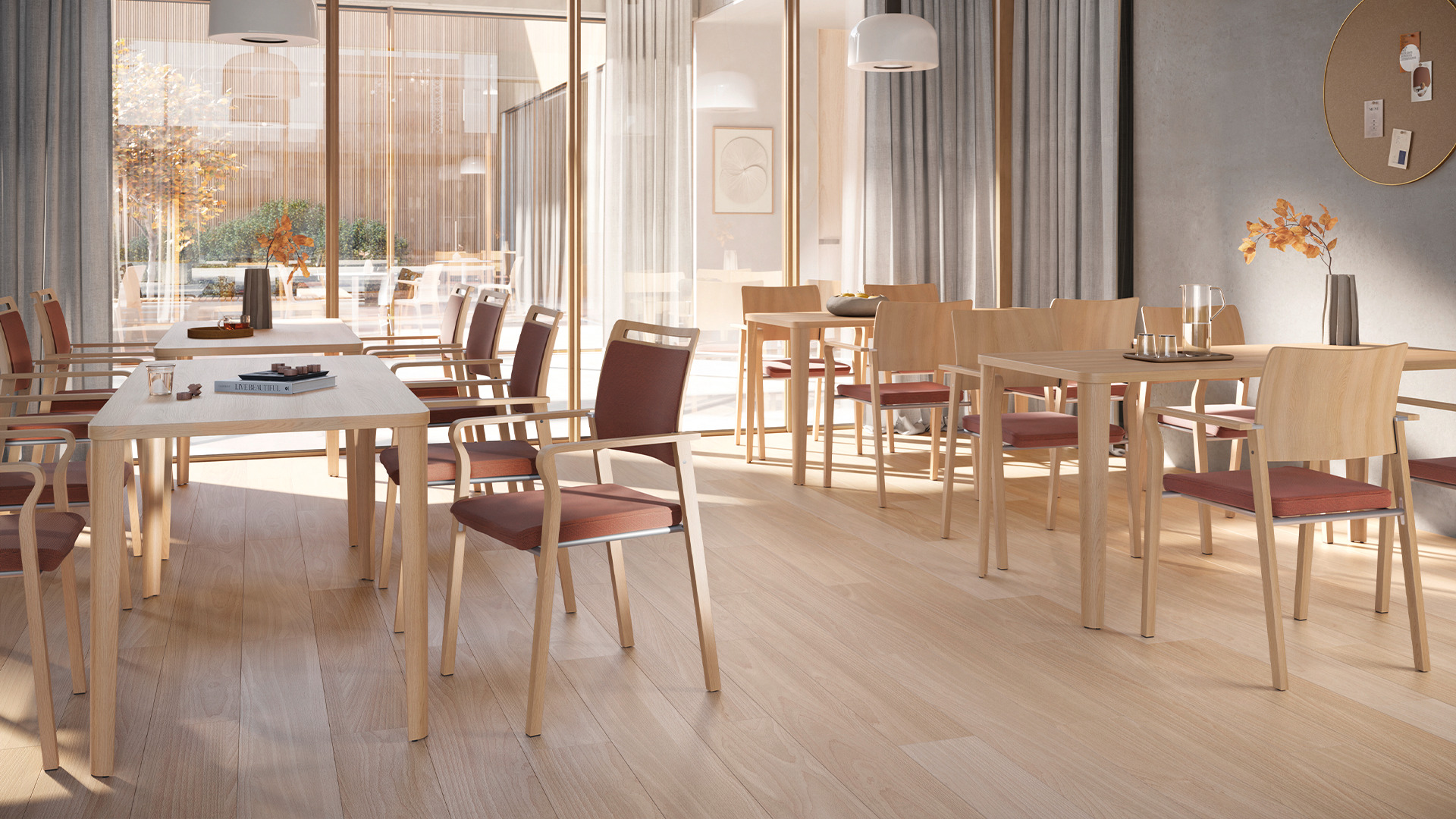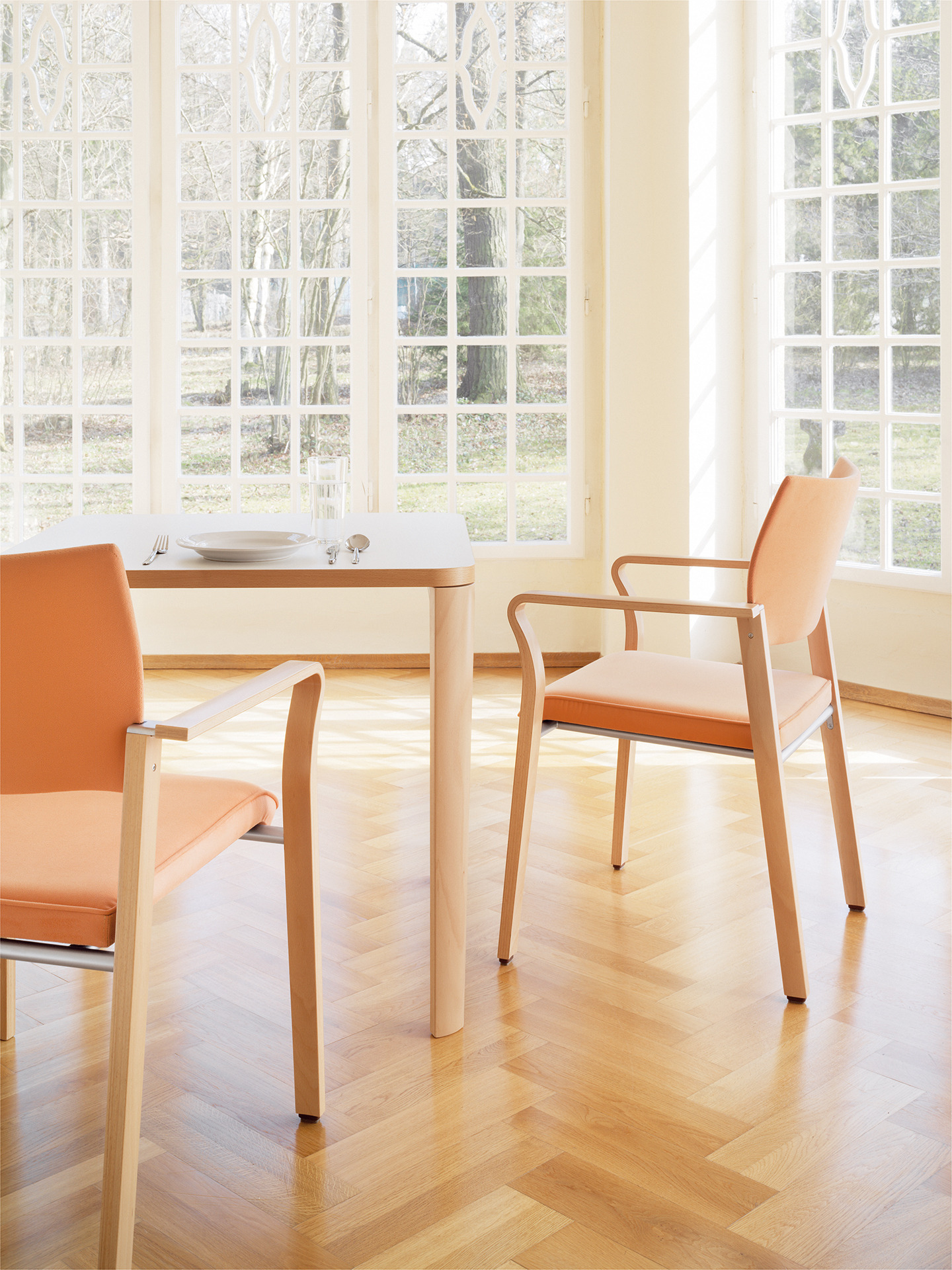 Qui a dit que le mobilier des institutions sociales devait être ennuyeux? taceo est moderne et ne fait cependant aucun compromis sur un confort classique. Grâce à la combinaison différenciée entre la technologie du lamellé collé en 3D et de solutions d'assise ergonomique, taceo répond au mieux aux critères de forme et de fonction. Particulièrement dans la version avec résille.