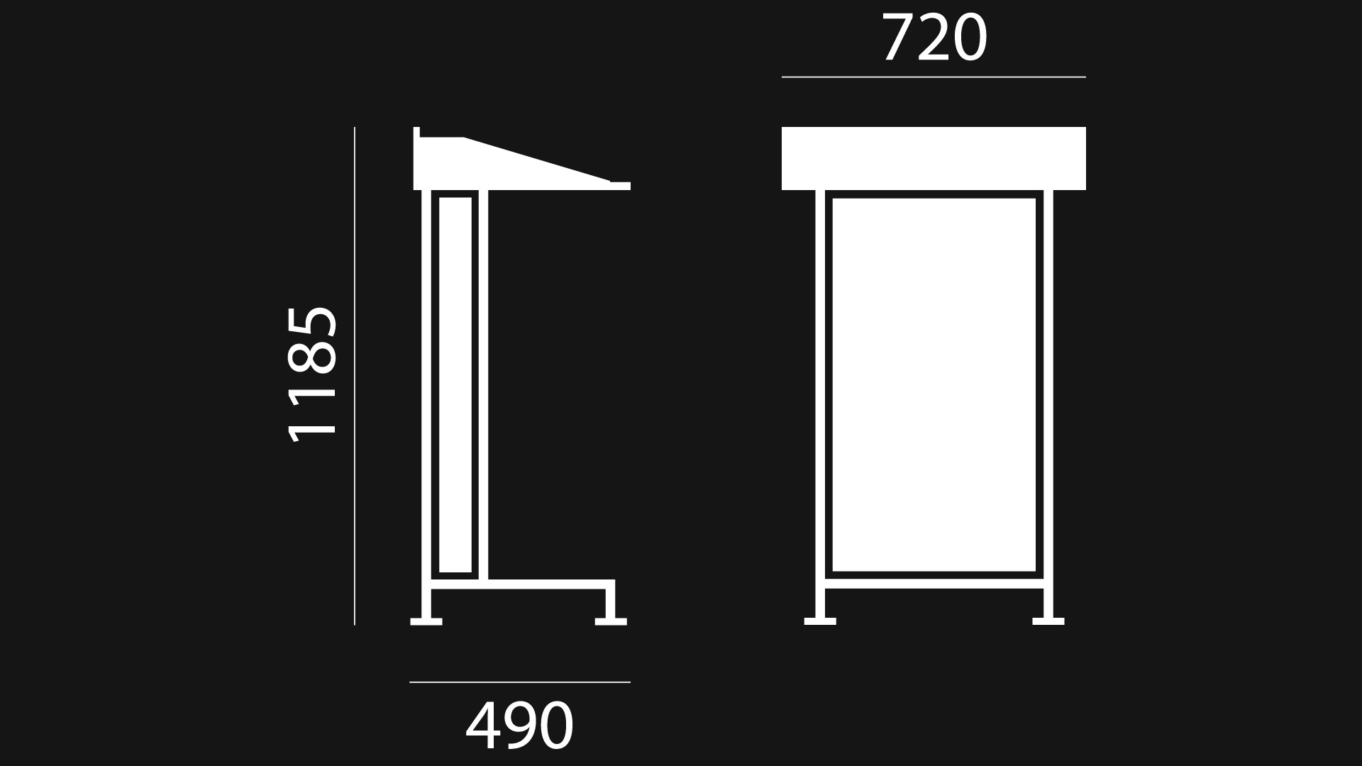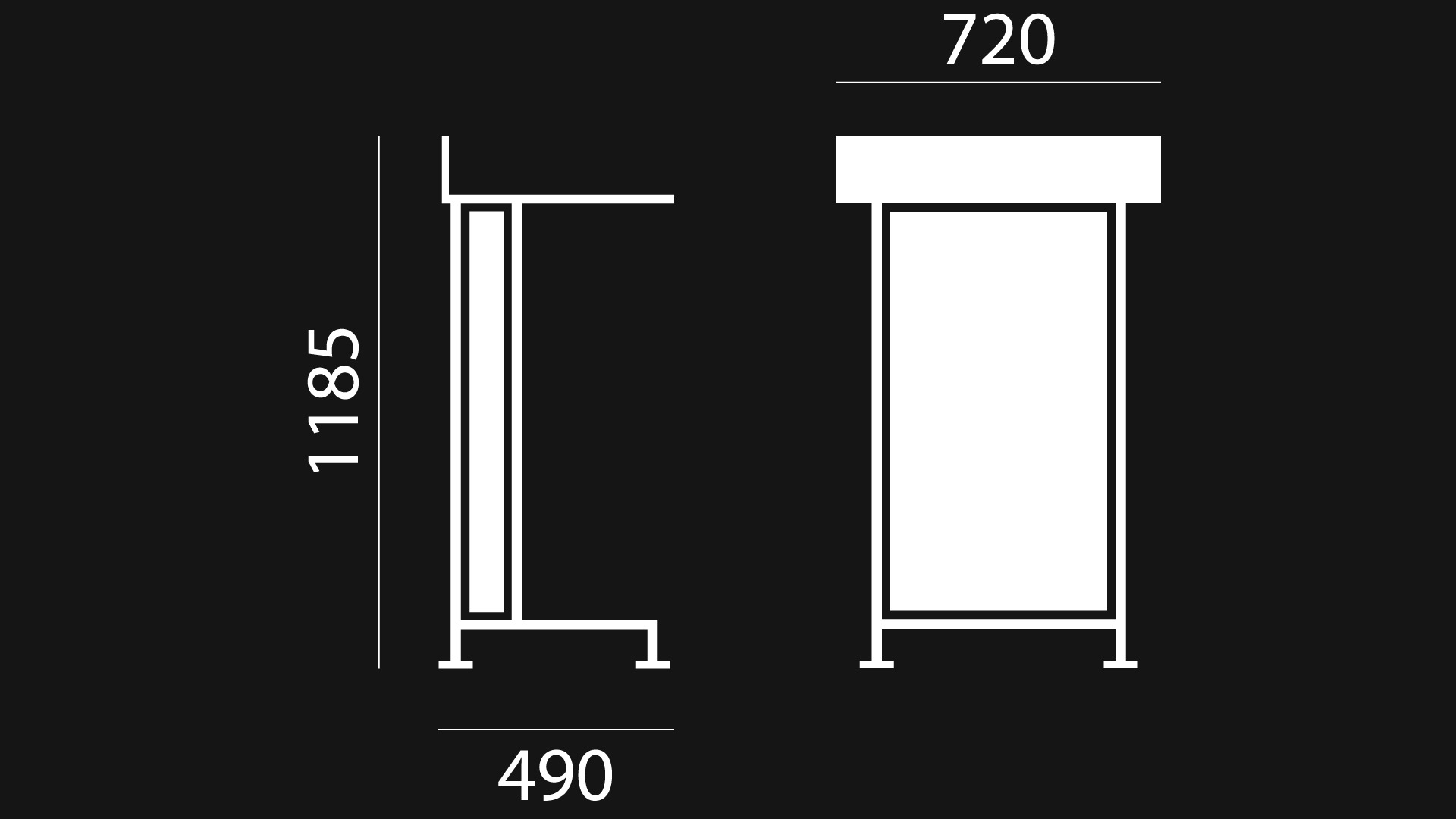piétement en tube acier cylindrique / 2 tablettes, côtes fermés ou ouverts