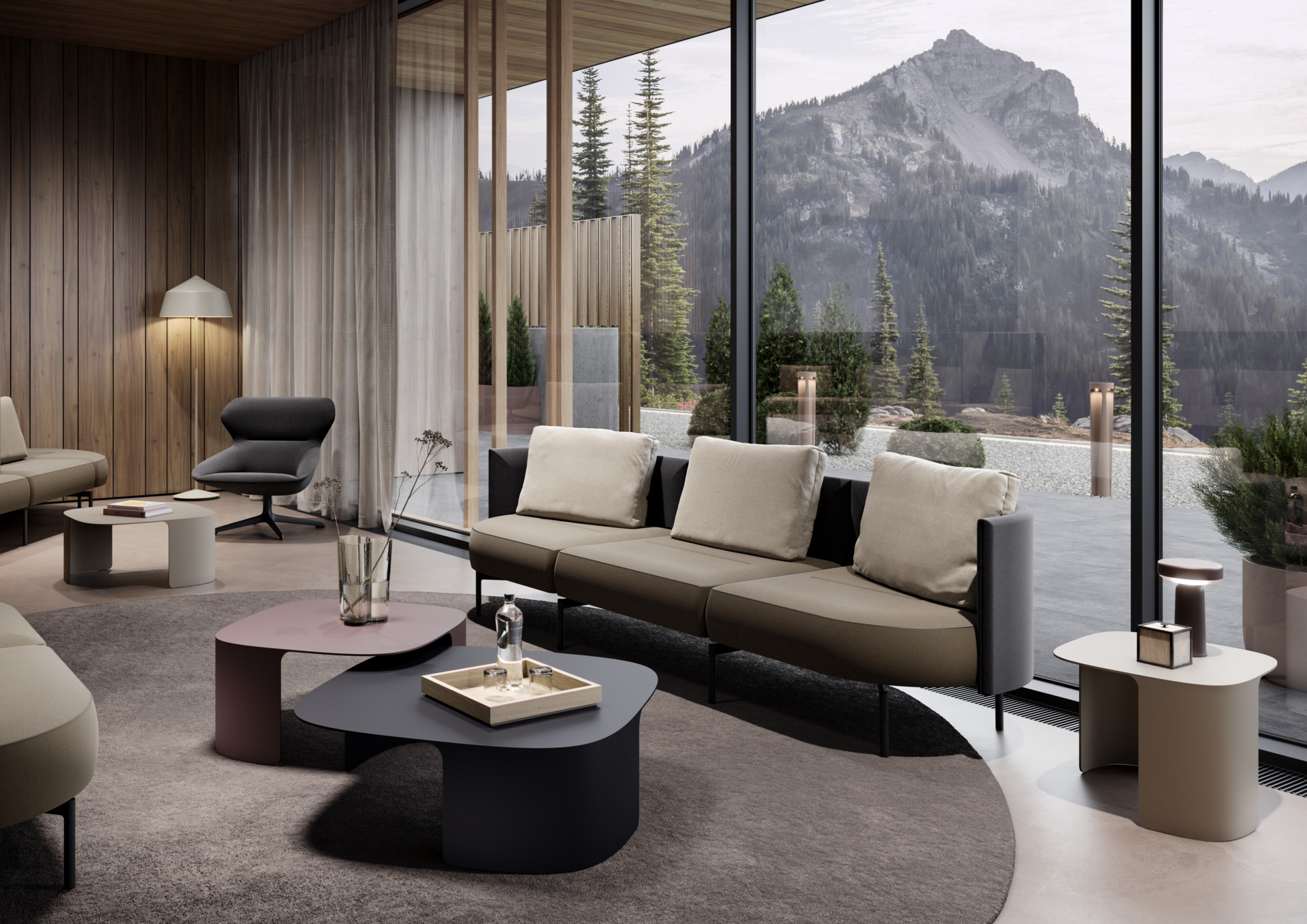- Ausdrucksstarke, leichte Tischserie für den Lounge- und Wartebereich
