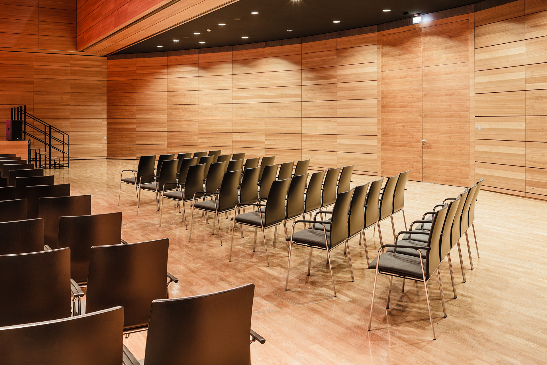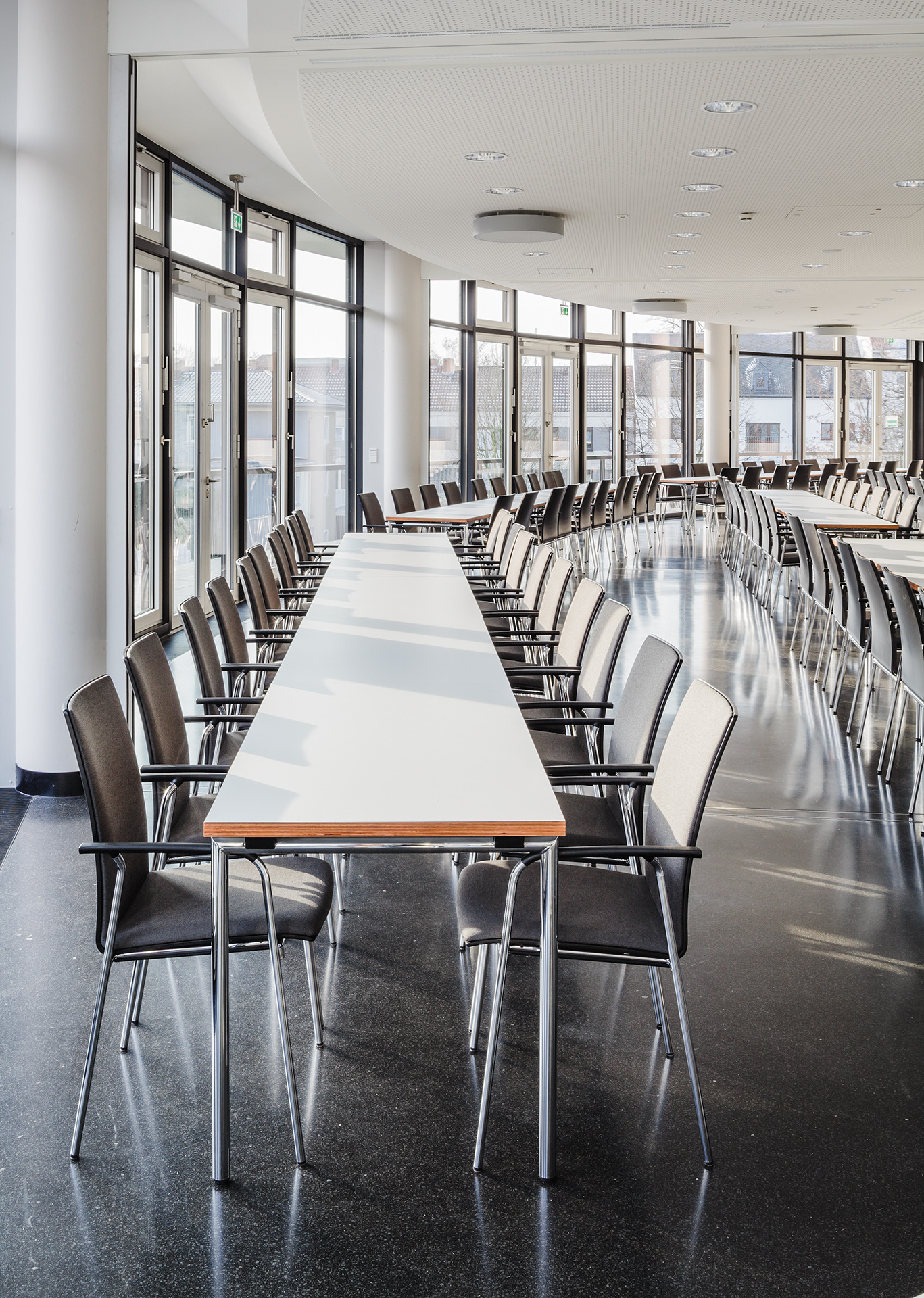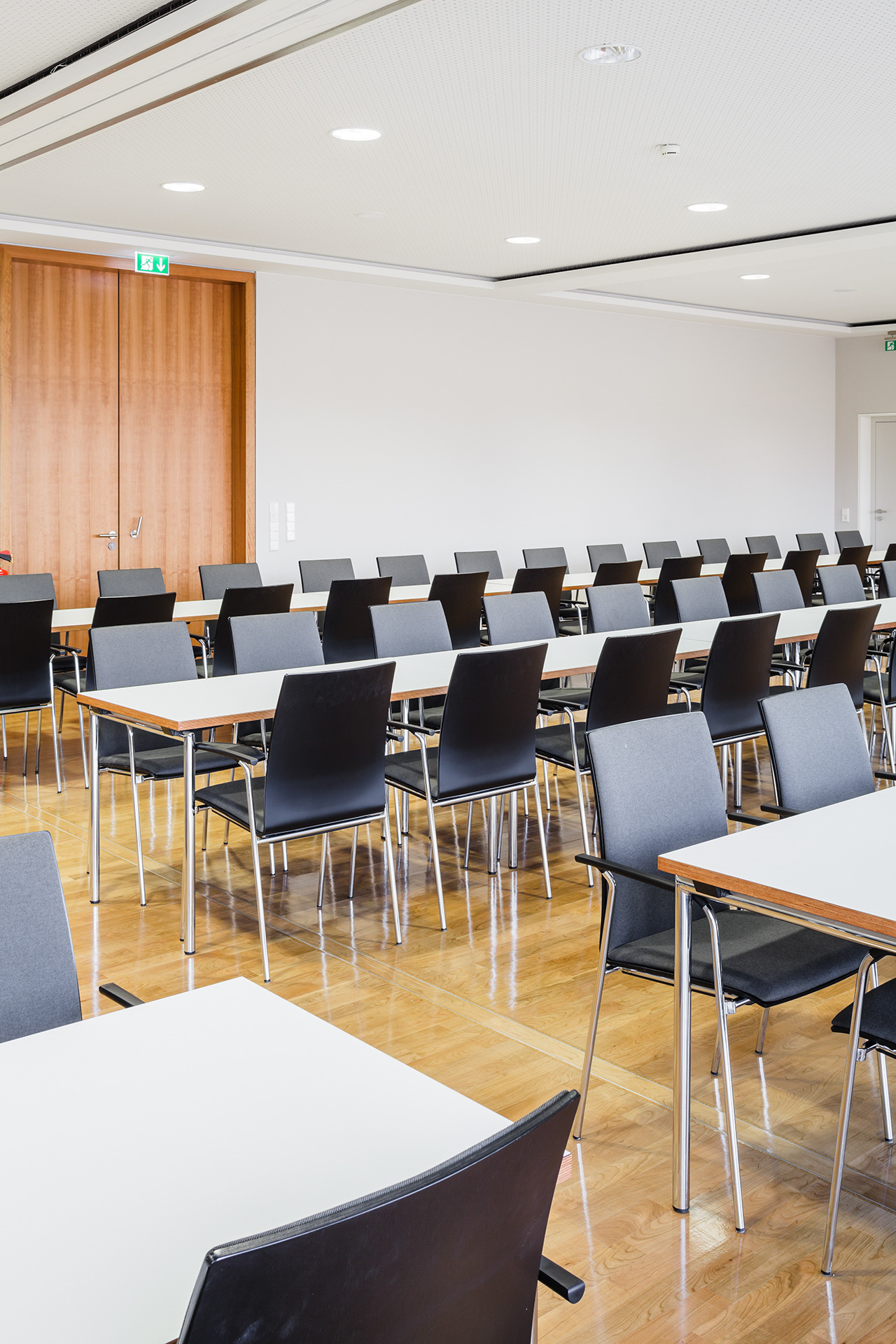 Neue Ideen für große Räume: Stapel-Reihenstühle mit Gestellverkettung.