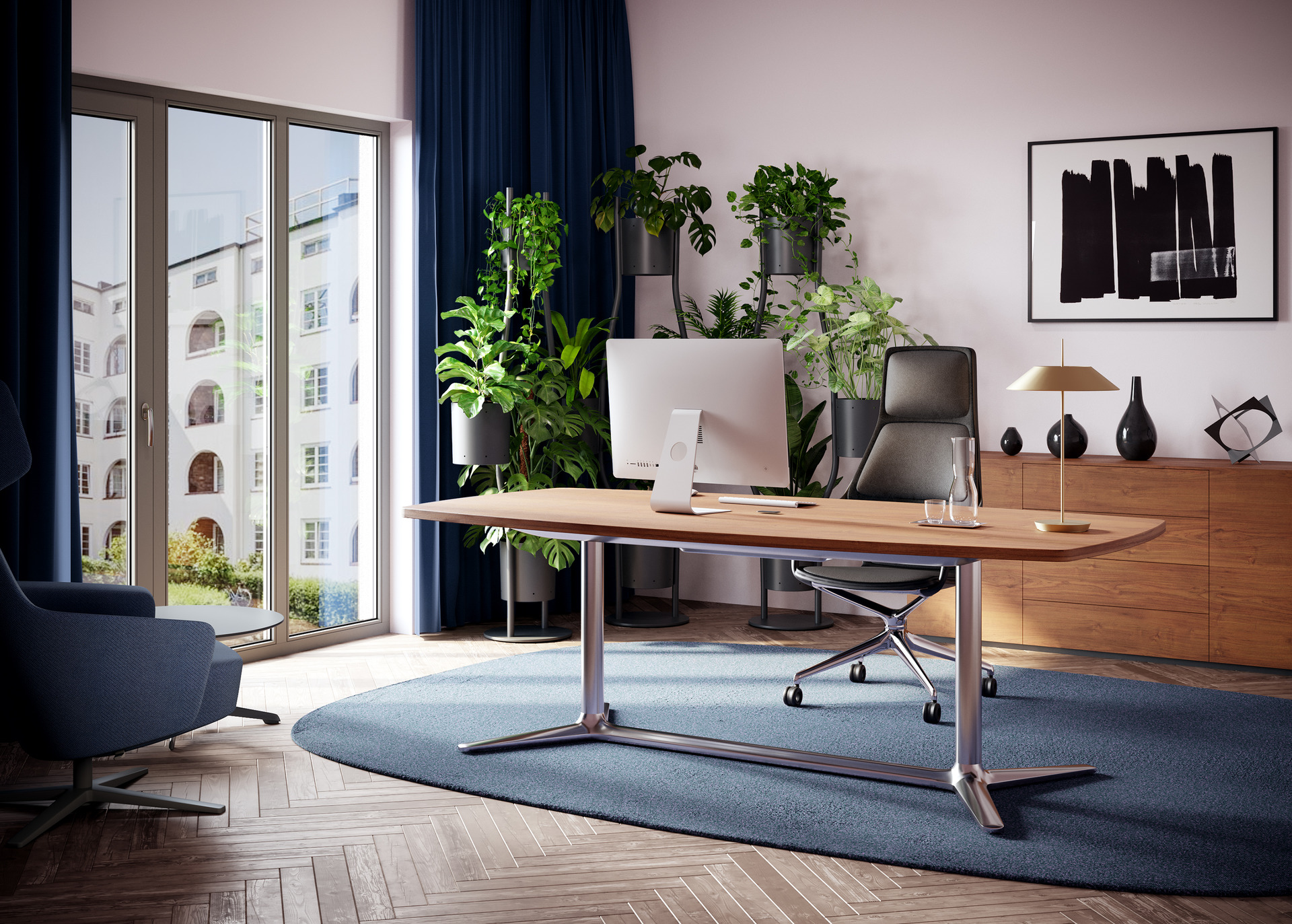 lift, Brunner, Brunner Möbel, jehs+laub, Tisch, Konferenztisch, höhenverstellbar, hydraulisch, Besprechungstisch, Büro, Projektraum, Besprechungszone, Lounge, Nano Tec Brunner, Eichenfurnier