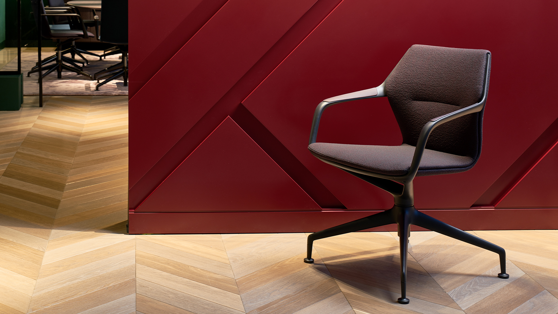 Entworfen und entwickelt für die unterschiedlichsten Einsatzgebiete. Ob mit Rollen und innovativer Bewegungsmechanik als Chefstuhl für den Schreibtisch. Oder mit fixiertem Rollengestell für die Konferenz. Ob als Vierbeiner für Kantine oder Restaurant. Oder mit Holzgestell für den Einzug des Wohnlichen in die Arbeitswelt.