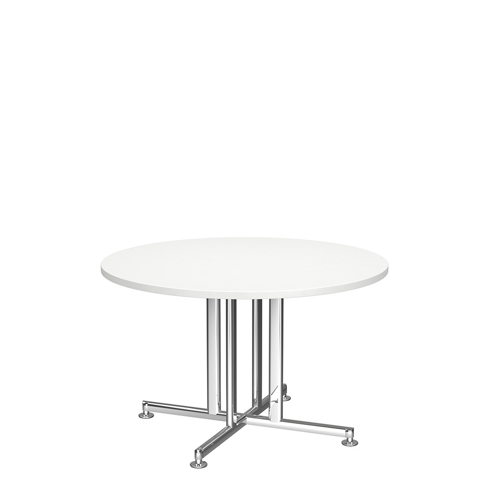 Kreuzfußgestell mit vier Mittelsäulen, Stahlrohr/ Tischplatte HPL oder Furnier