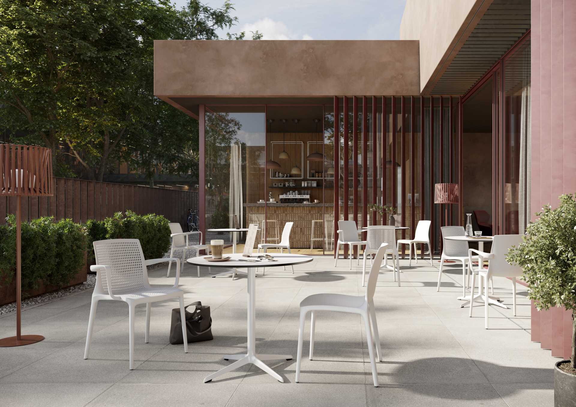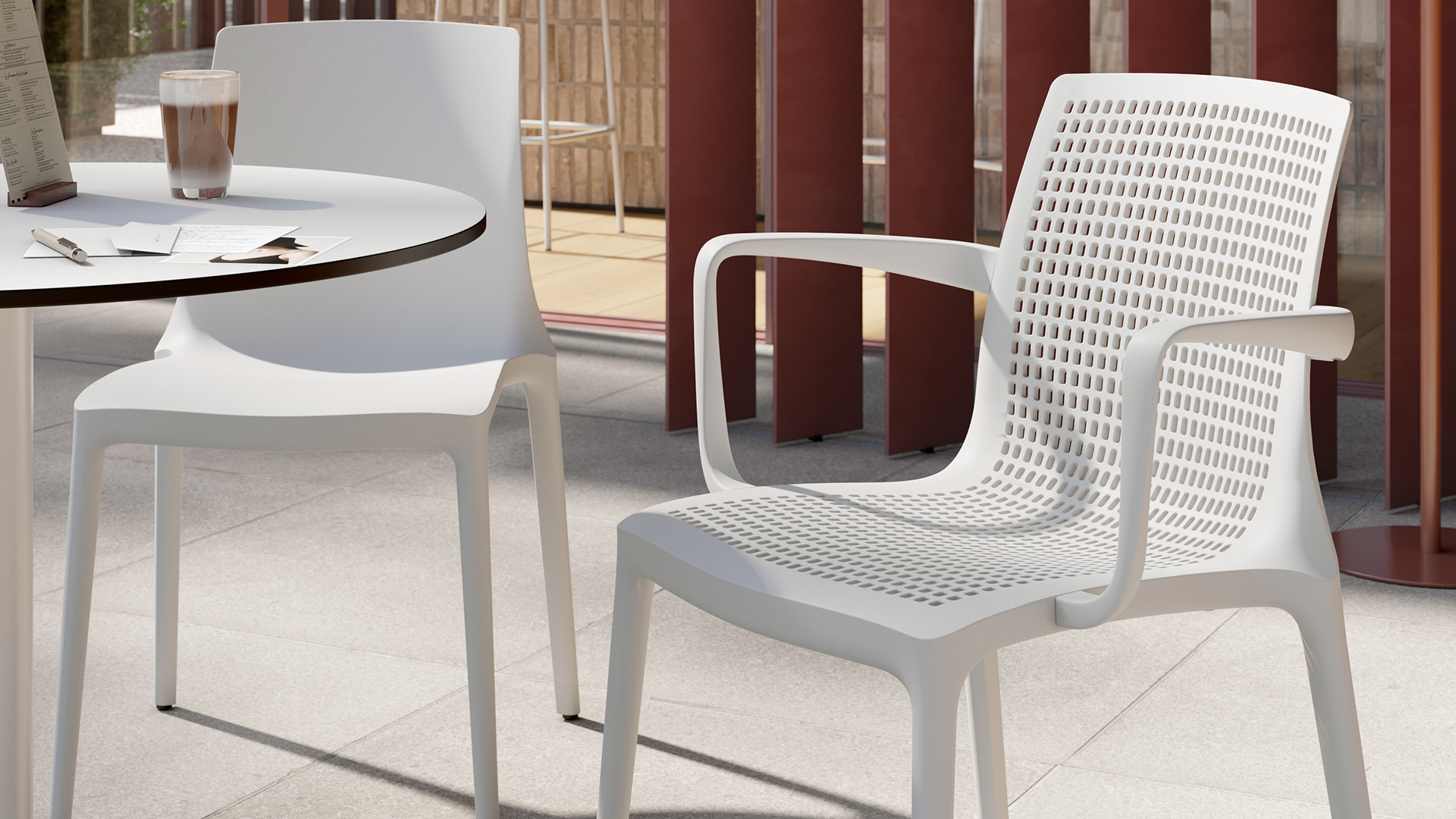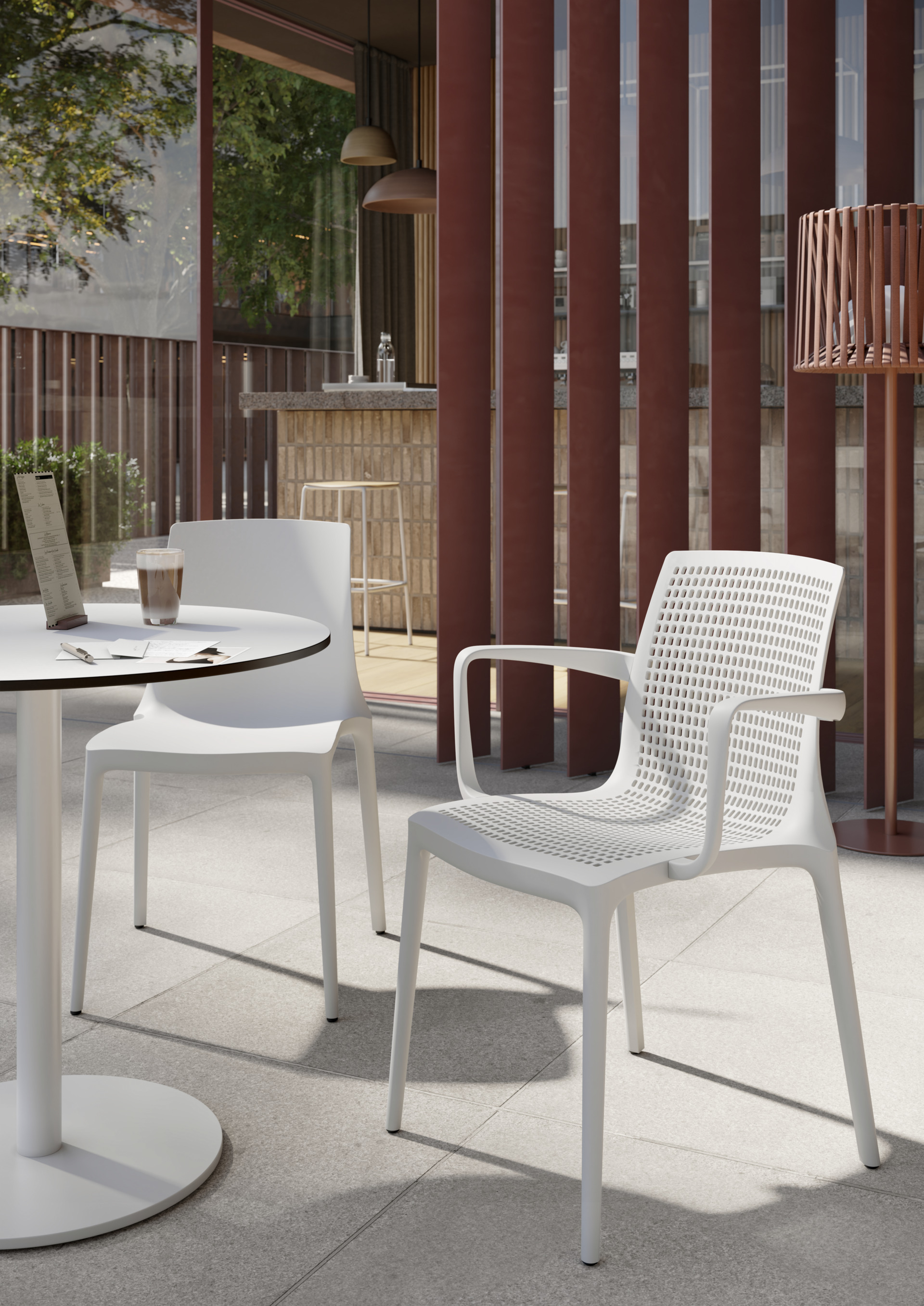twin, Brunner, Brunner Möbel, Archirivolto, Sitzmöbel, Kunststoffstuhl, monobloc, wetterfest, leicht, stabil, stapelbar, Reihenverbindung, Sitzpolsterdoppel