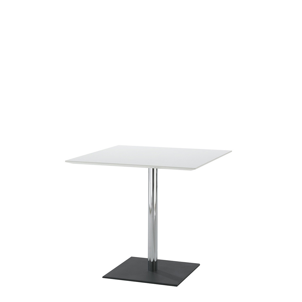 - Quadratischer Mittelsäulentisch mit Säule in verchromten Rundstahlrohr